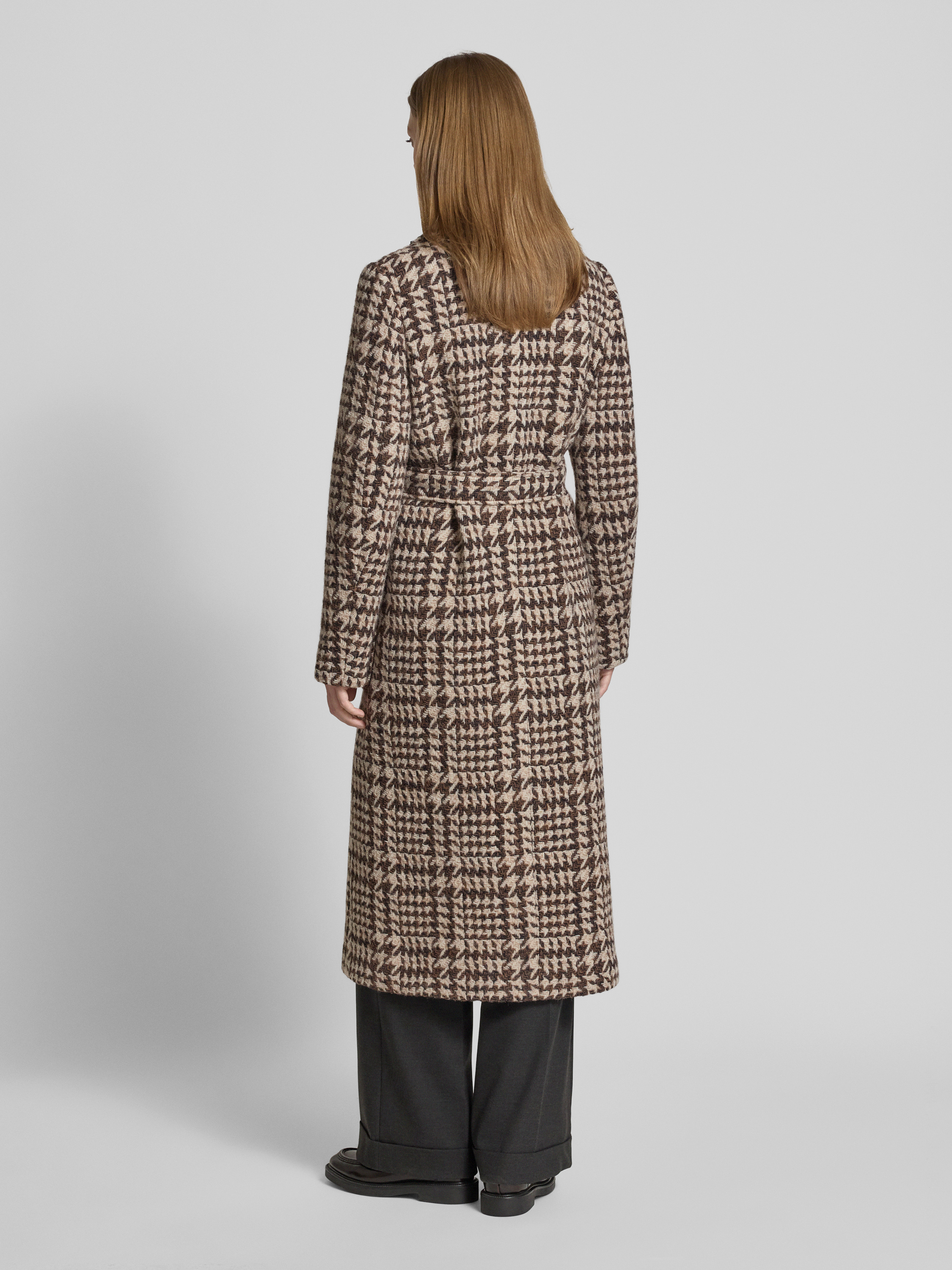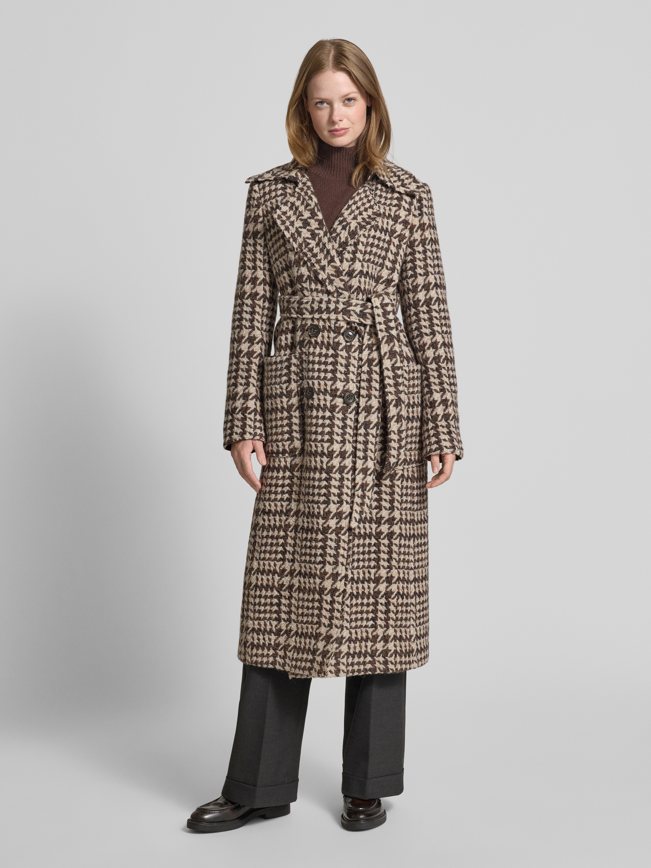 Luisa CeranoWollmantel mit Reverskragen und Bindegürtel in dunkelbraun