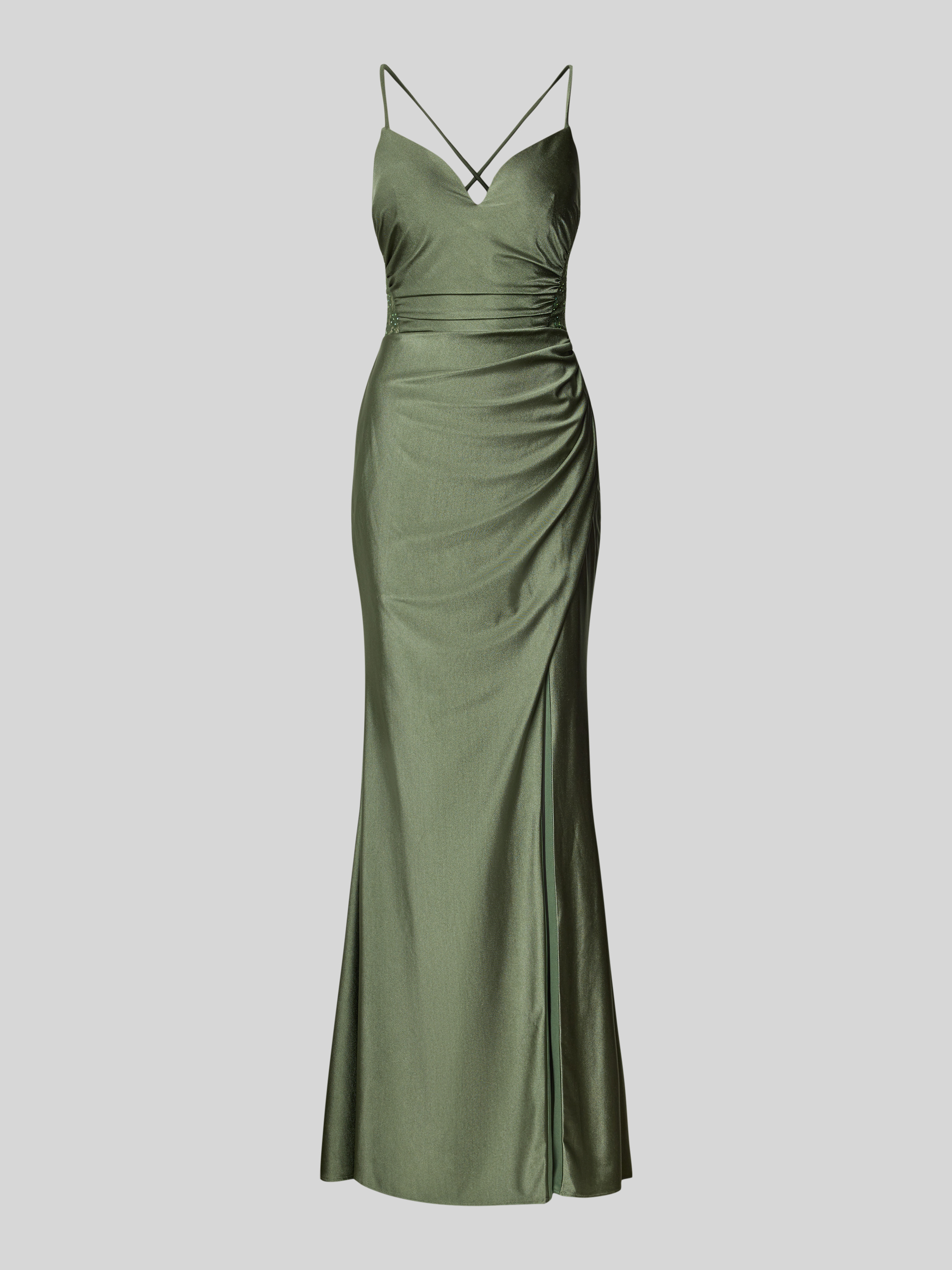 LuxuarAbendkleid mit seitlicher Raffung in schilf