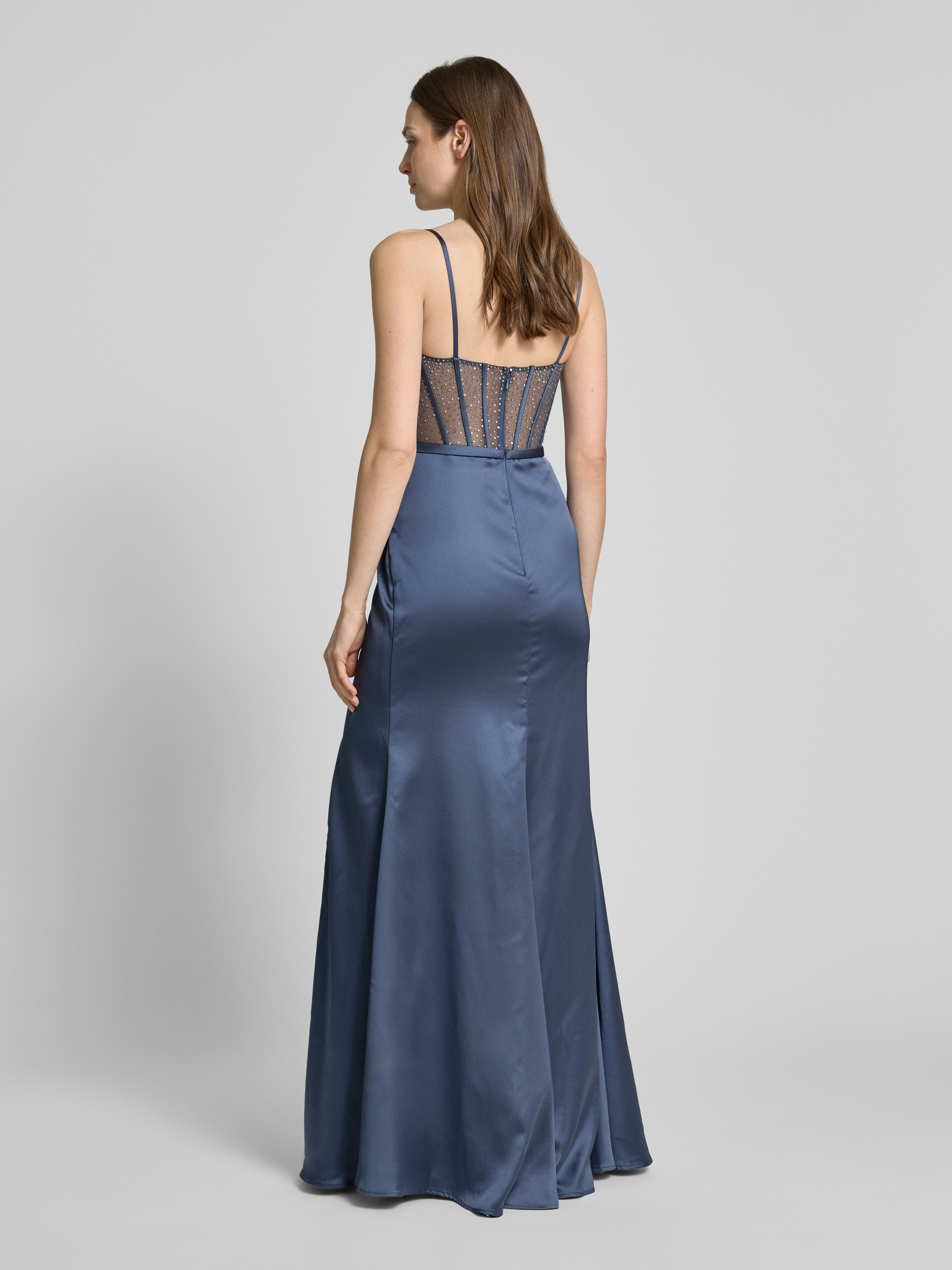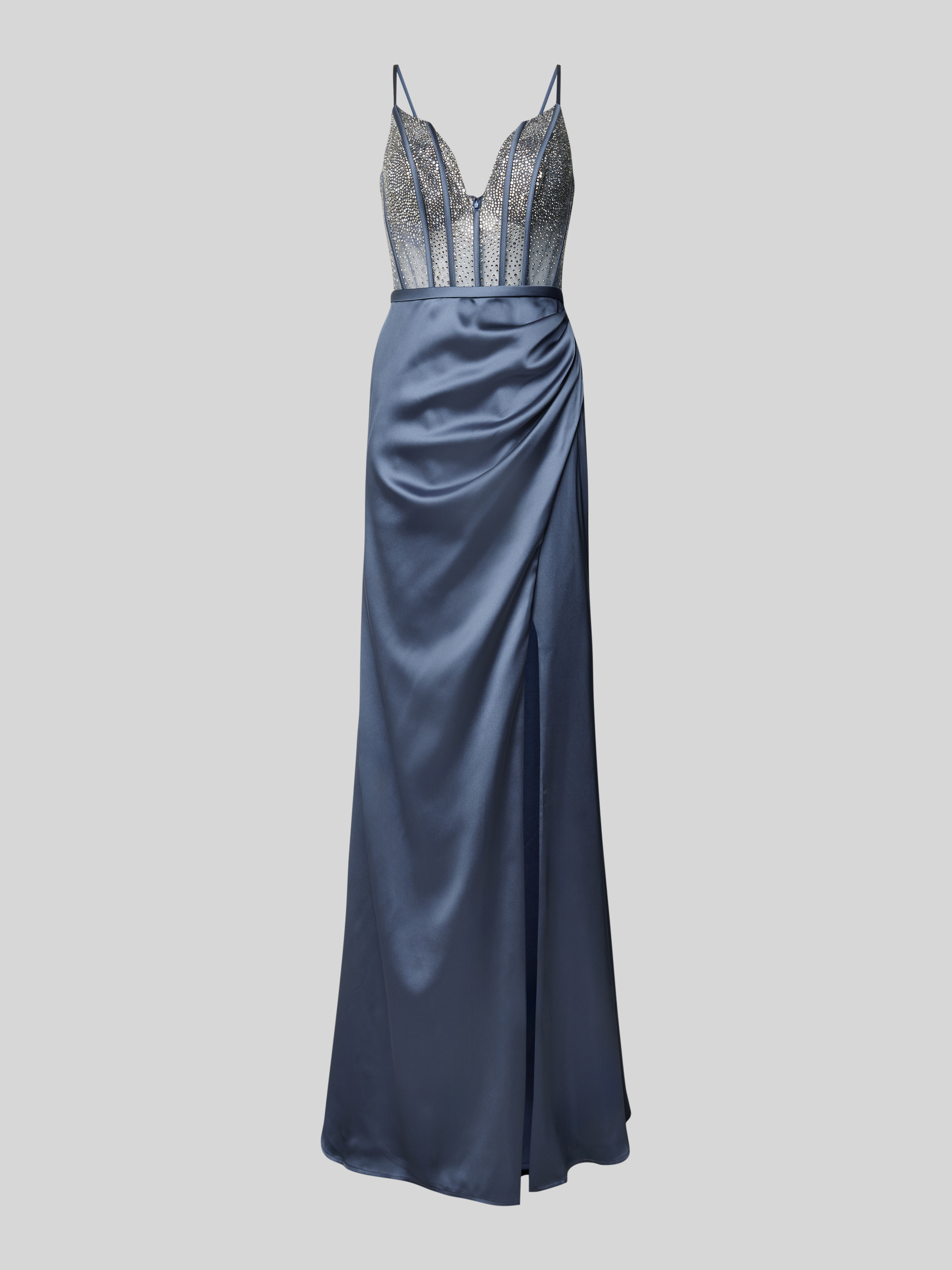 Das Abendkleid von LUXUAR FASHION beeindruckt durch seinen körpernahen Schnitt aus edlem Satin, der für eine elegante Silhouette sorgt. Der tiefe V-Ausschnitt und die funkelnden Strasssteine verleihen dem Maxikleid eine besondere Note. Dank der Spaghettiträger und der seitlichen Raffung trägt es sich angenehm leicht.