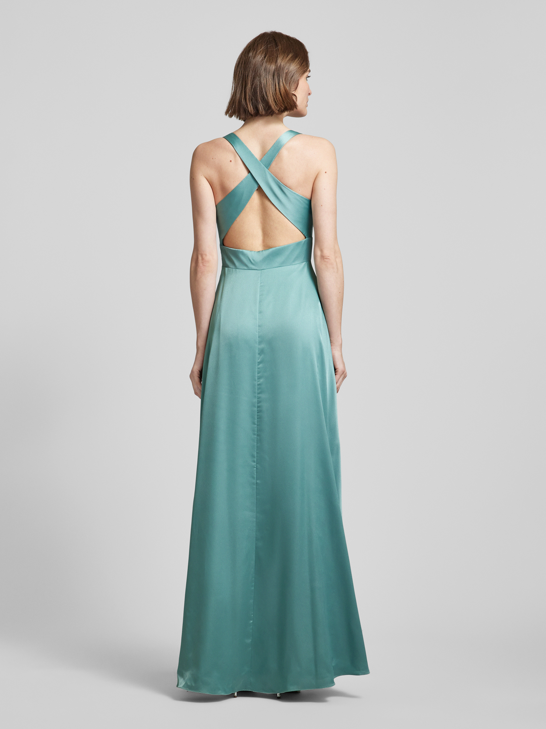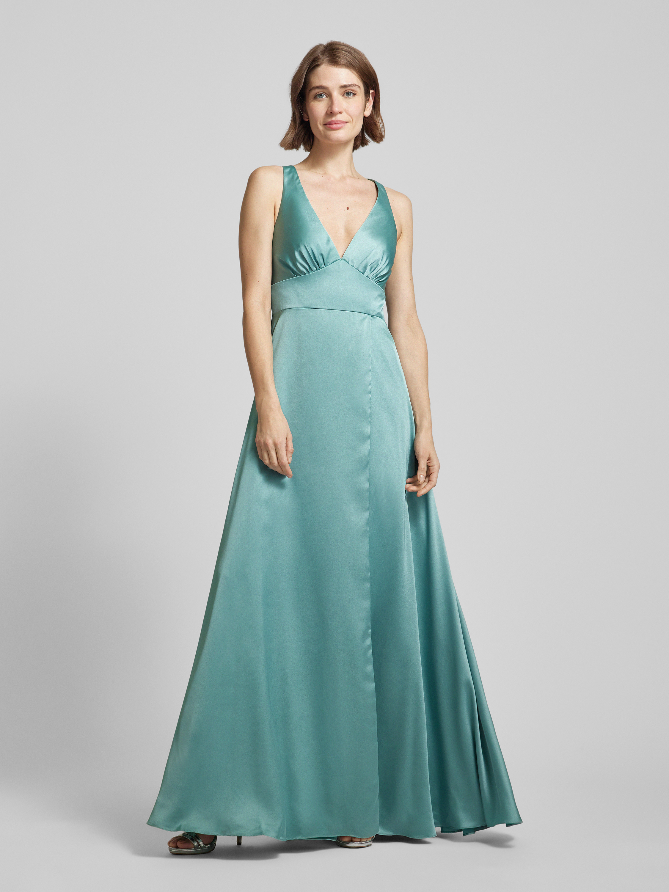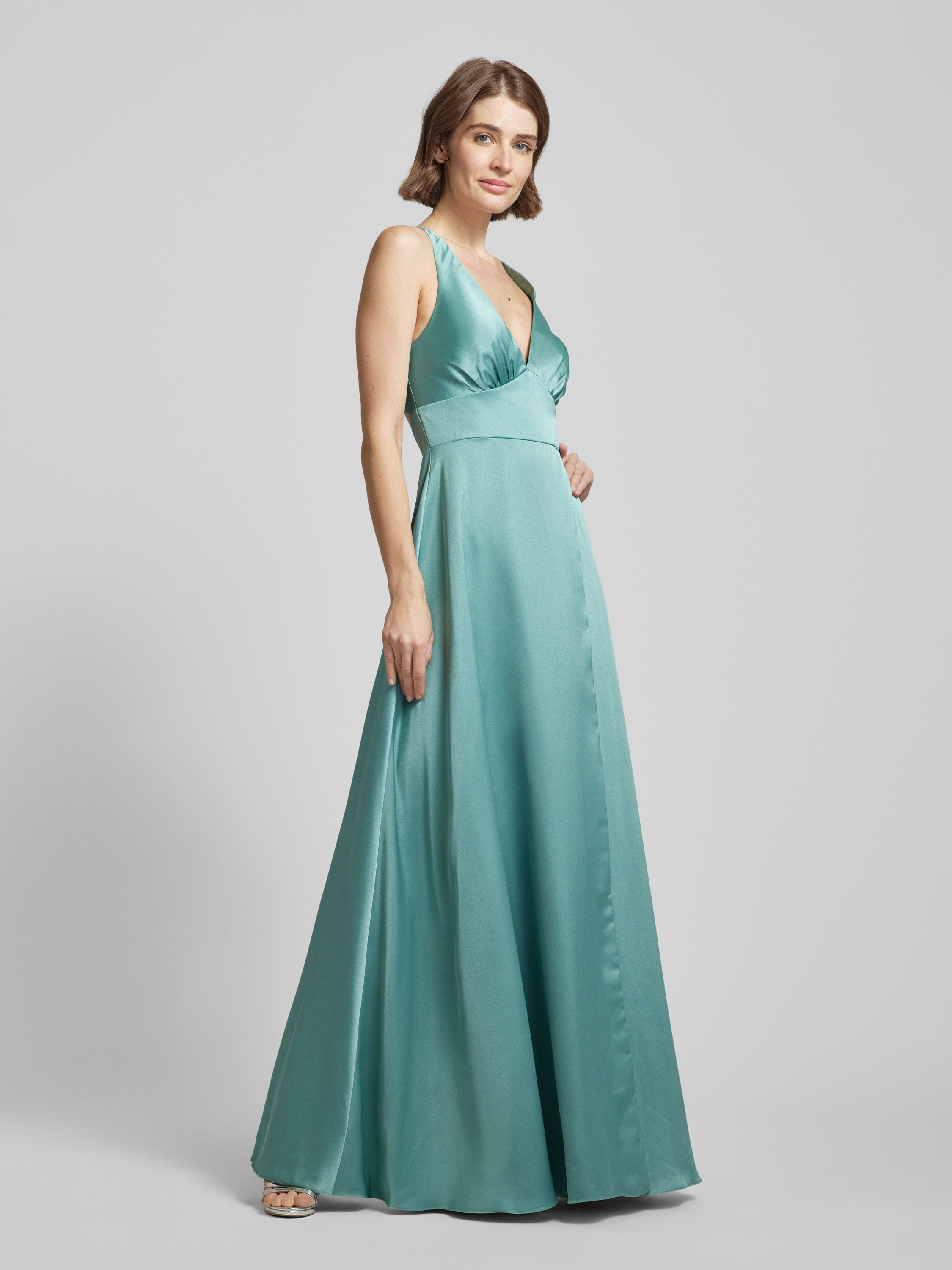LuxuarAbendkleid mit V-Ausschnitt in hellgruen