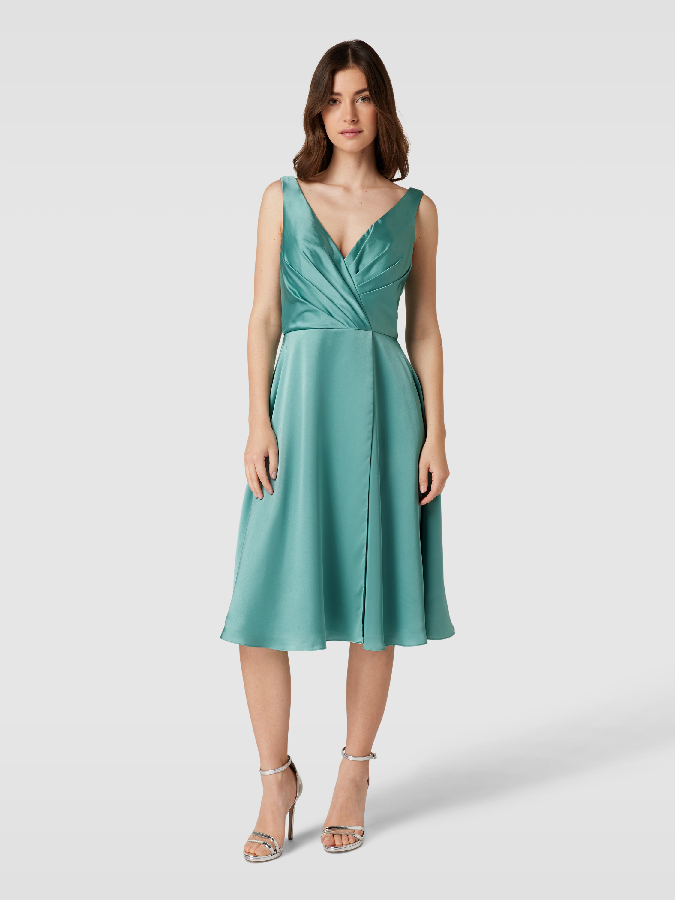 LuxuarKnielanges Cocktailkleid mit gelegten Falten in mint