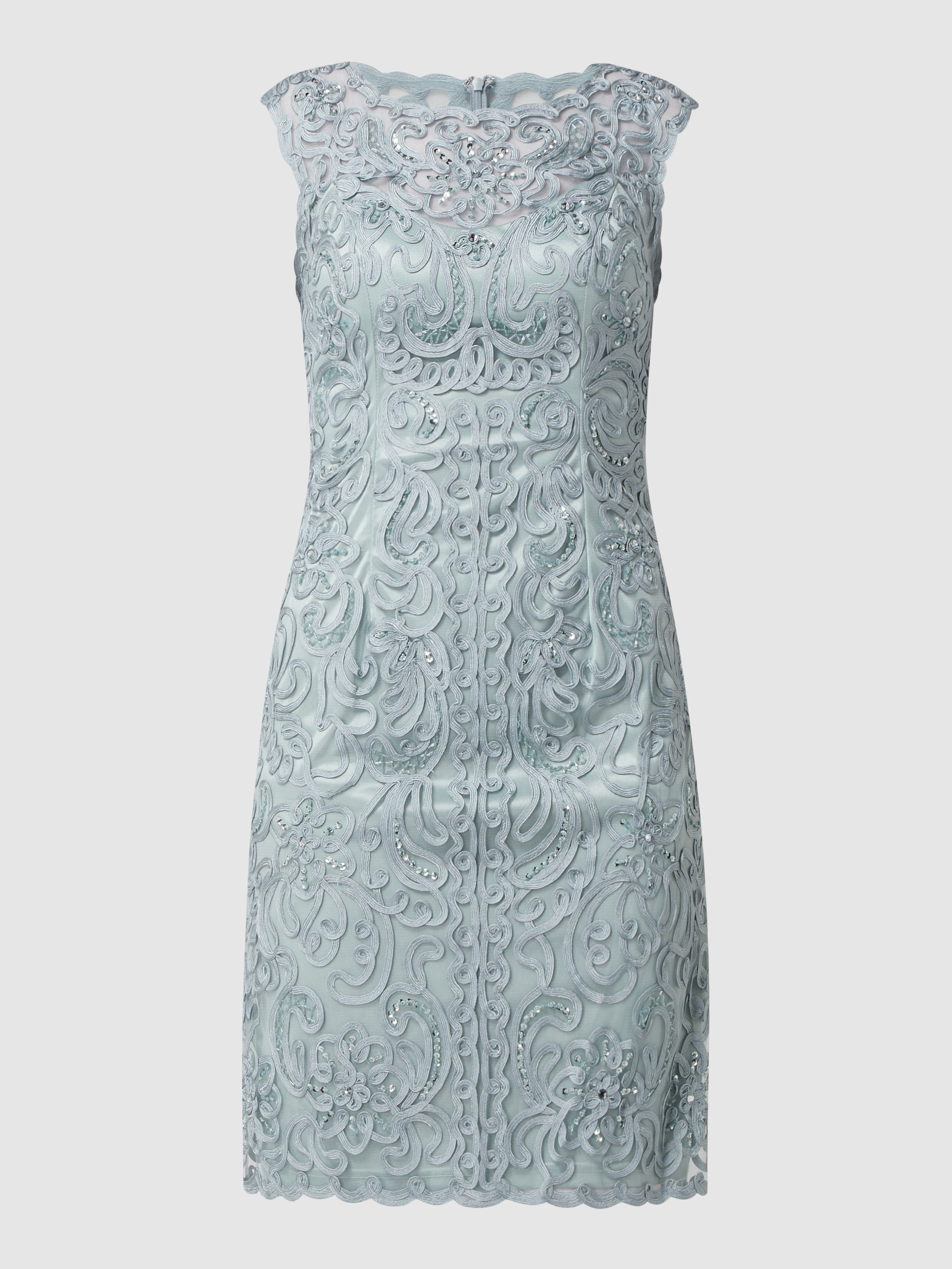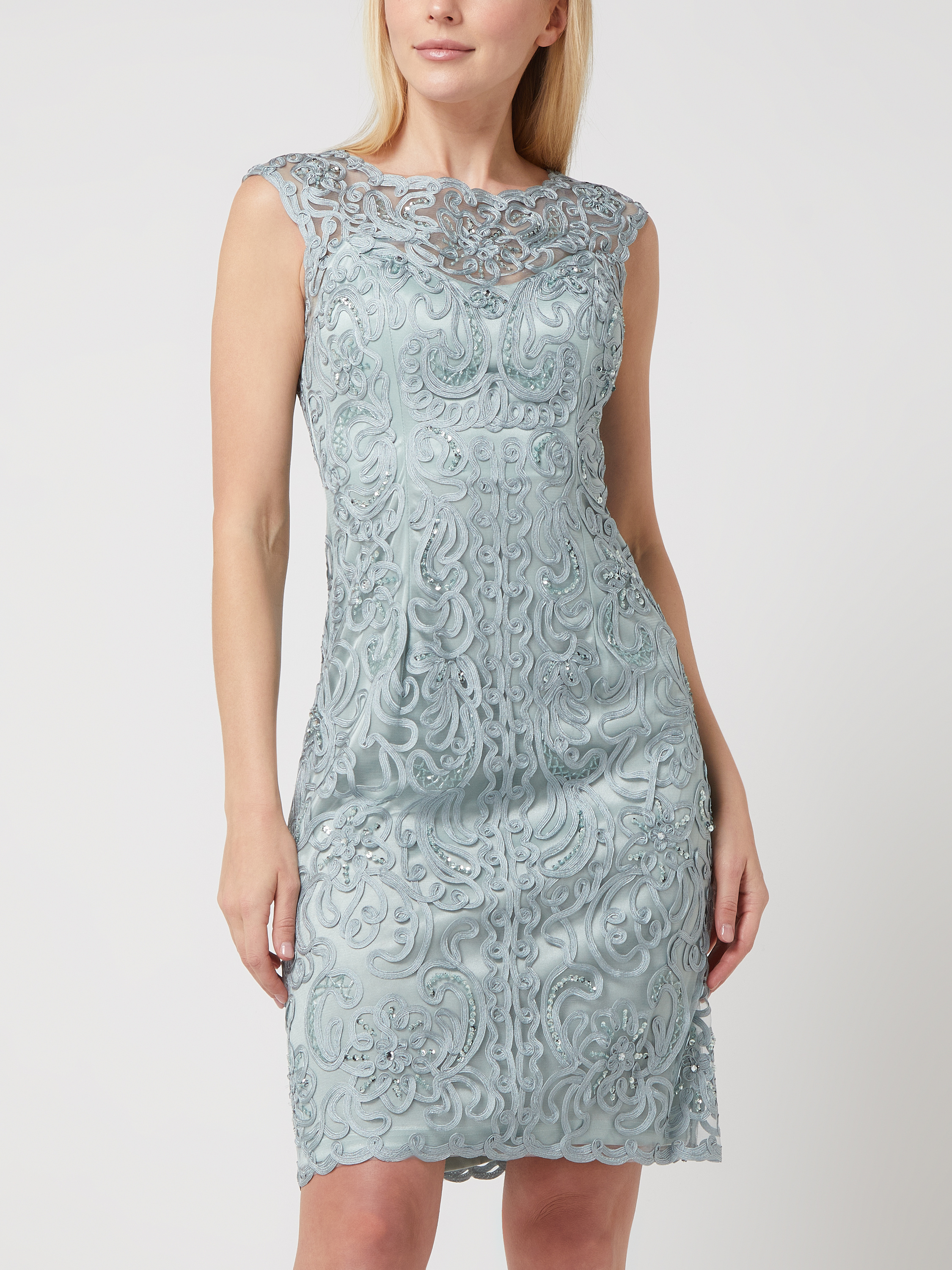 LuxuarKörpernahes Cocktailkleid mit Stickereien in mint
