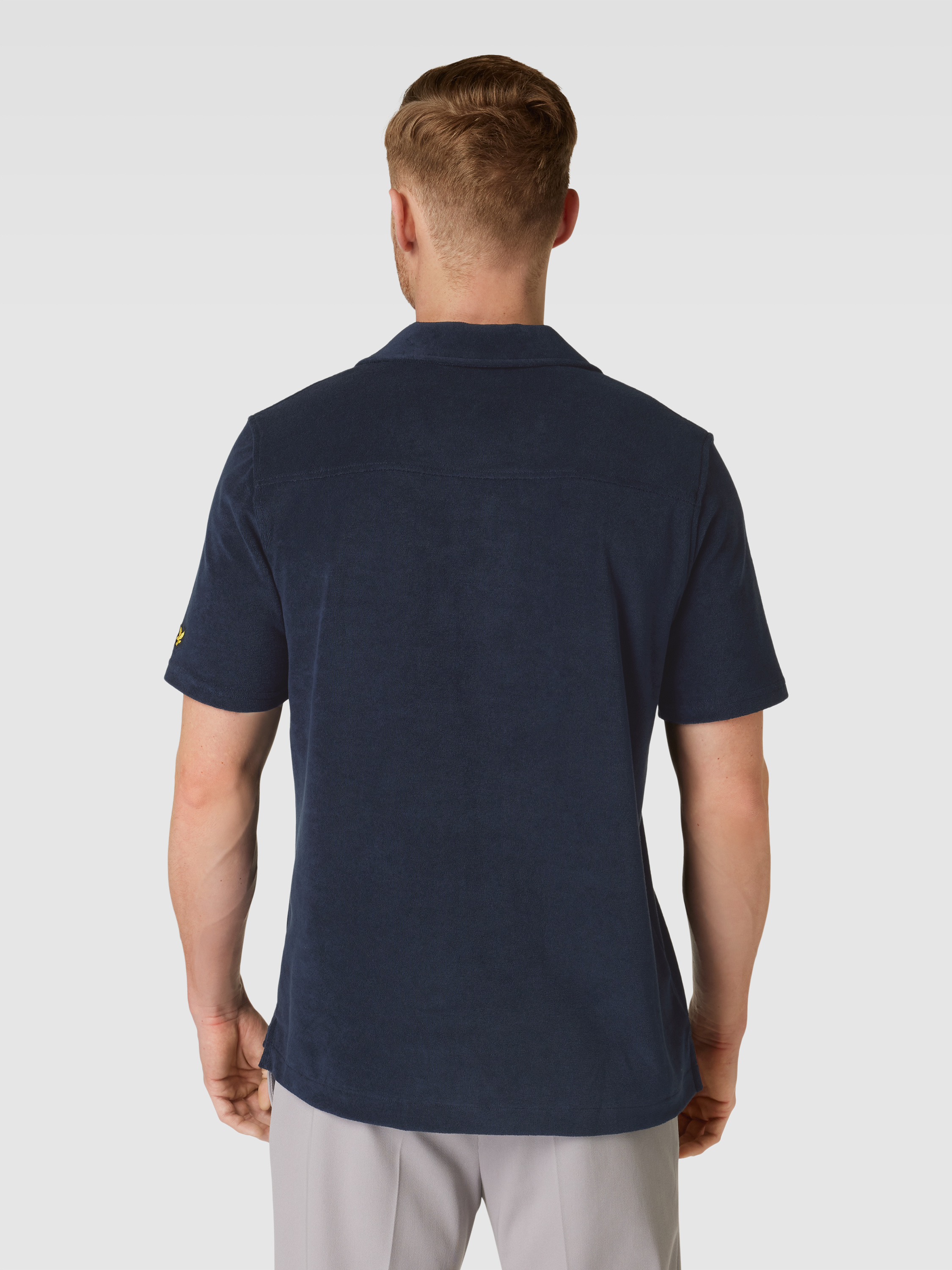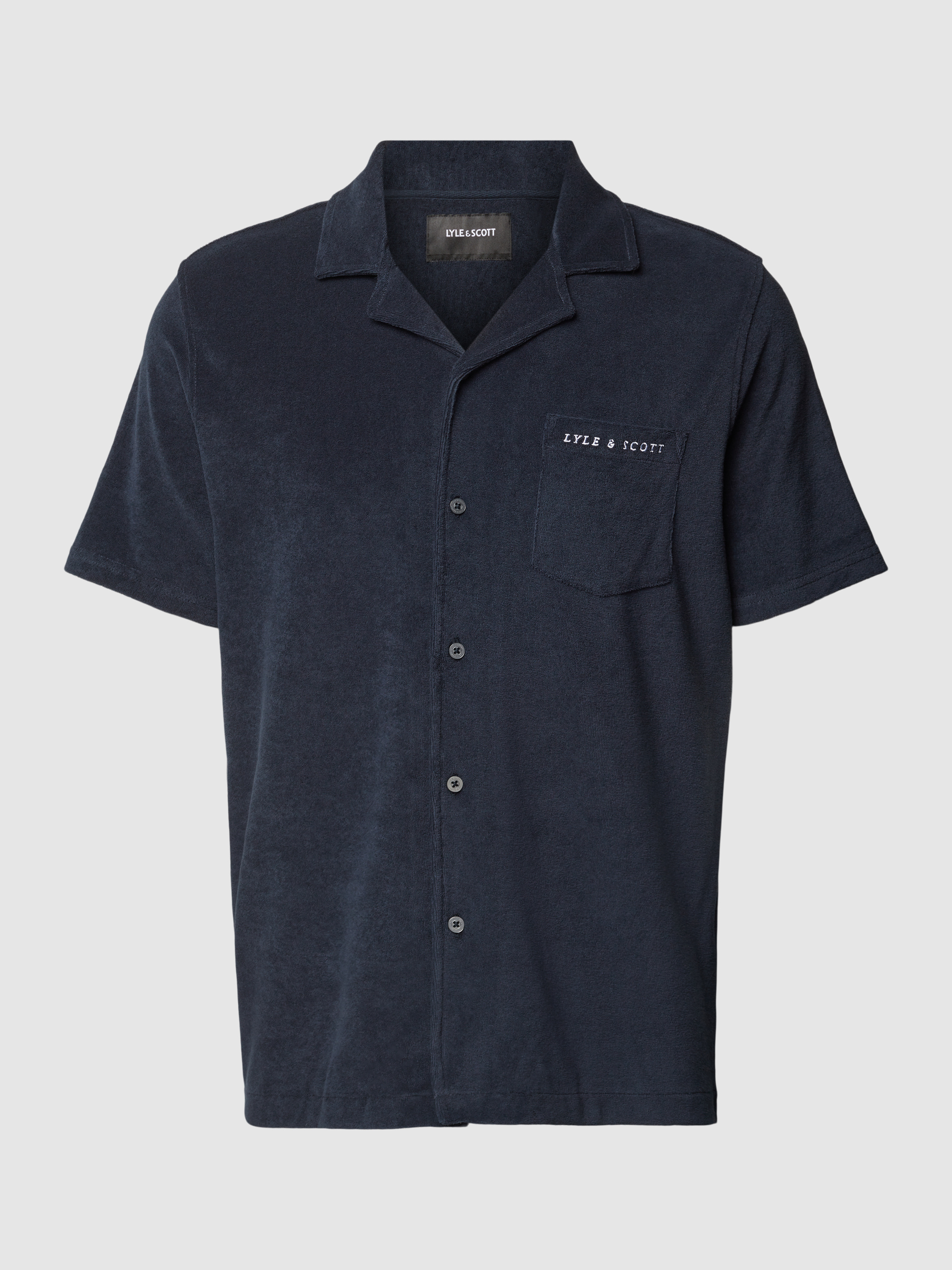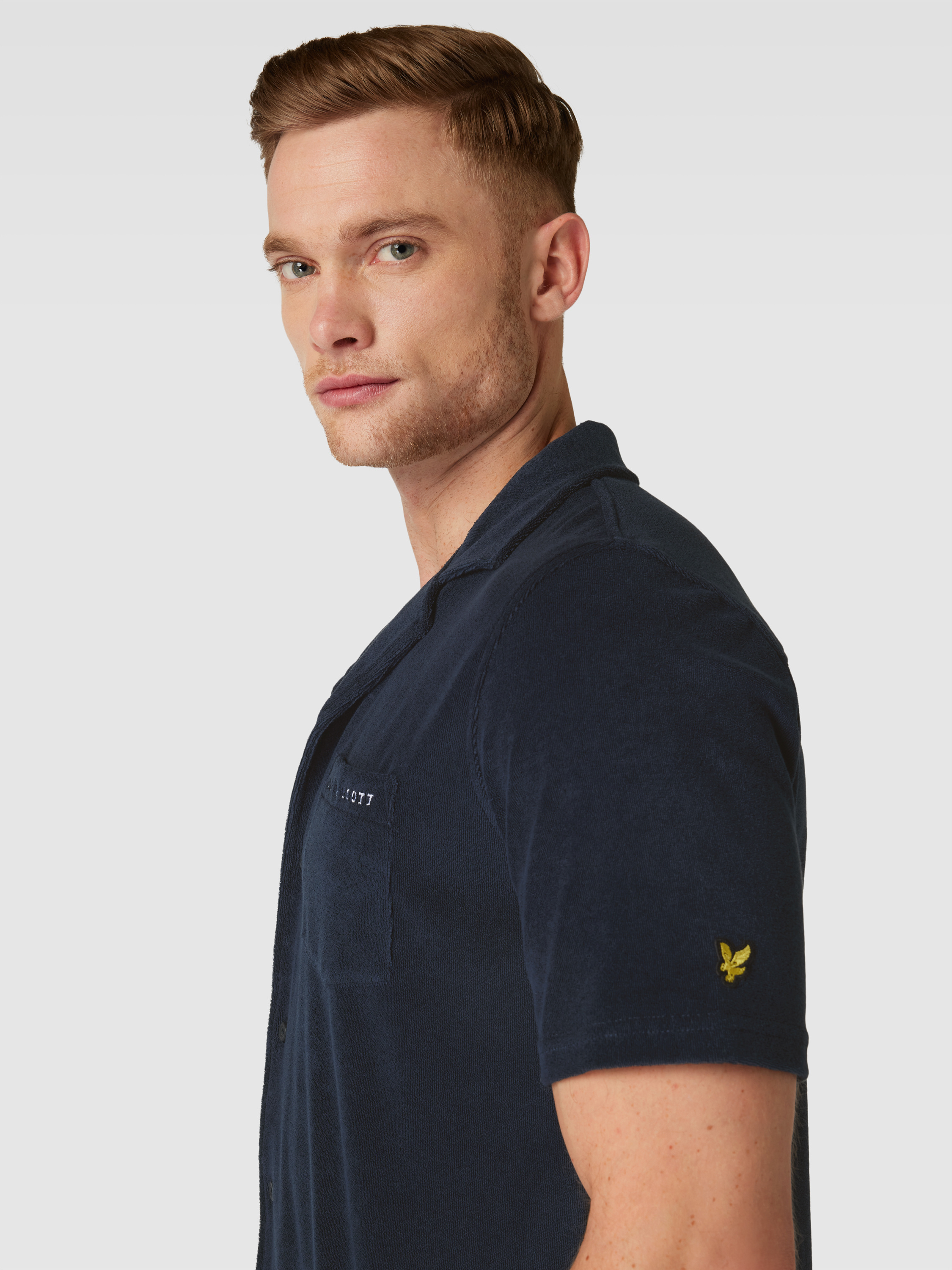 Das Herren Freizeithemd von Lyle & Scott, Modell 'Towelling Resort', beeindruckt durch seinen lässigen Regular Fit und den angenehmen Baumwoll-Mix. Der Reverskragen verleiht dem unifarbenen Design eine besondere Note, während die praktische Brusttasche dezenten Stauraum bietet. Ideal für entspannte Tage.