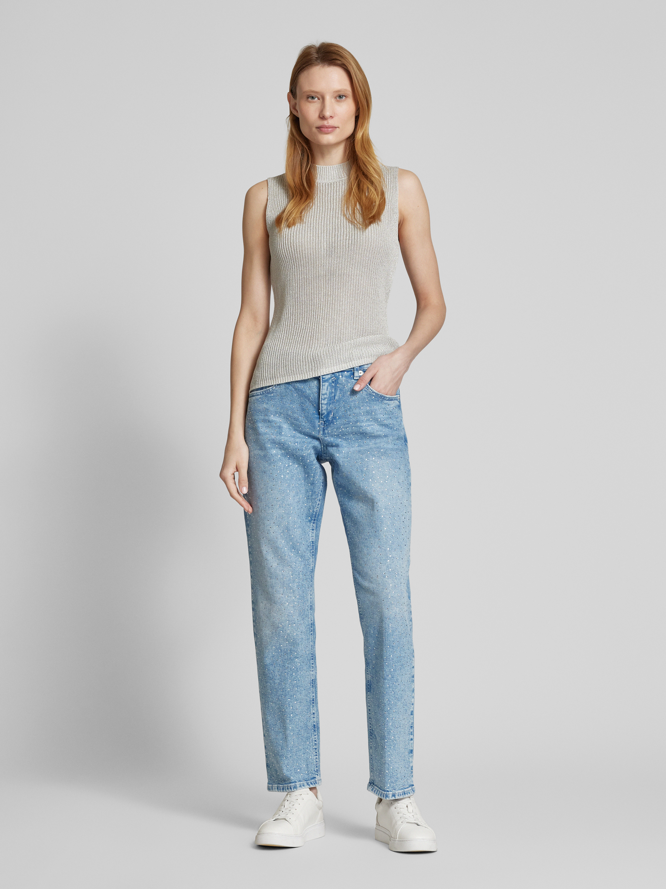 Die Damen Jeans von MAC verbindet einen geraden Schnitt mit einem klassischen 5-Pocket-Design, wodurch sie sich vielseitig kombinieren lässt. Ein feiner Ziersteinbesatz setzt dezente Akzente und sorgt für einen modernen Look. Durch den Baumwoll-Elasthan-Mix trägt sie sich angenehm im Alltag.