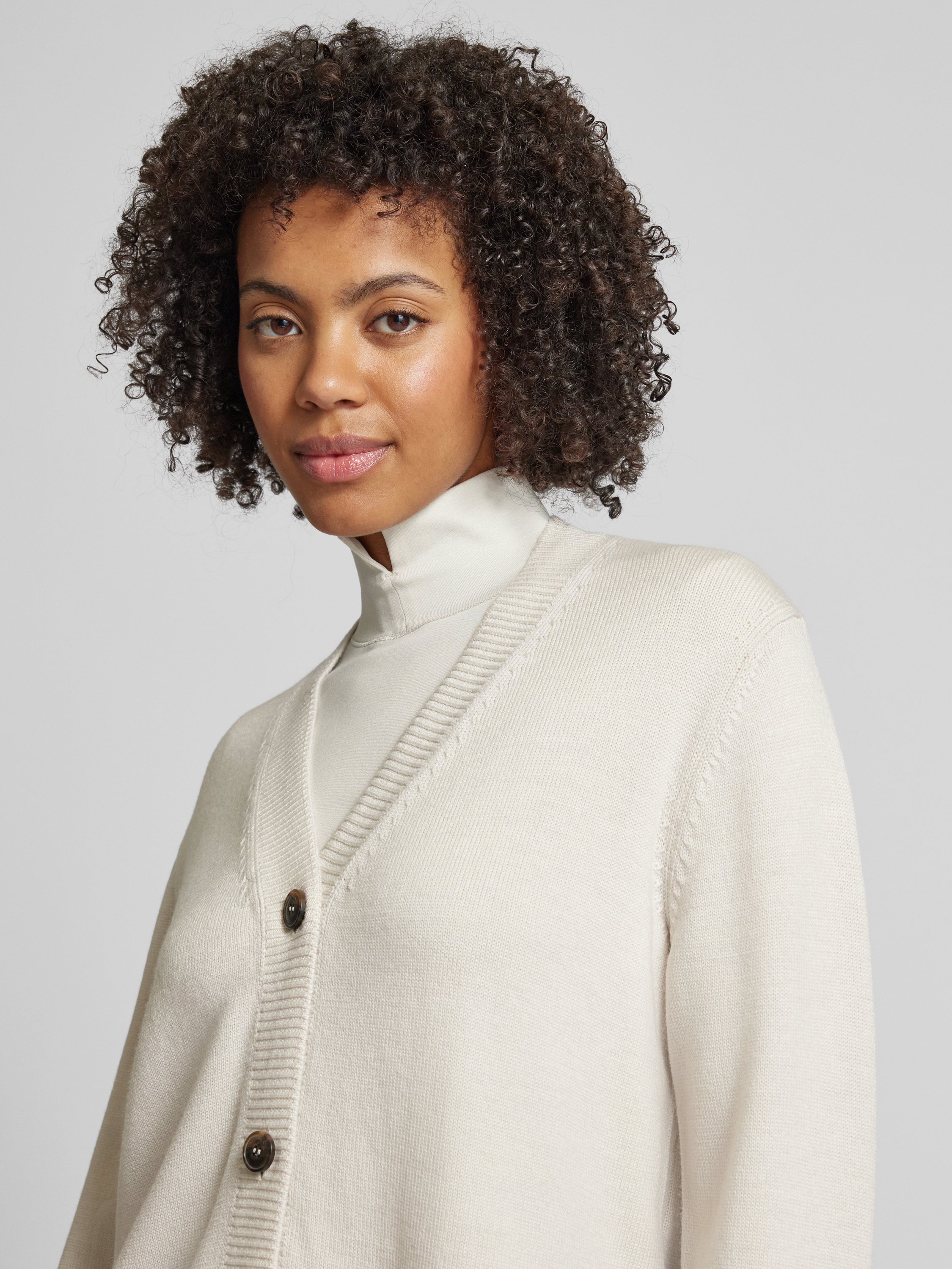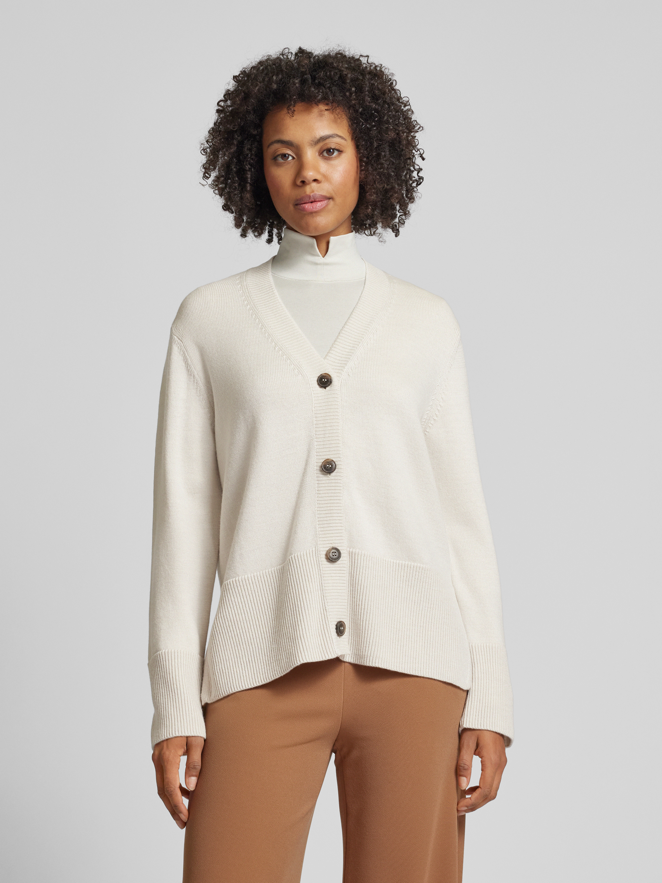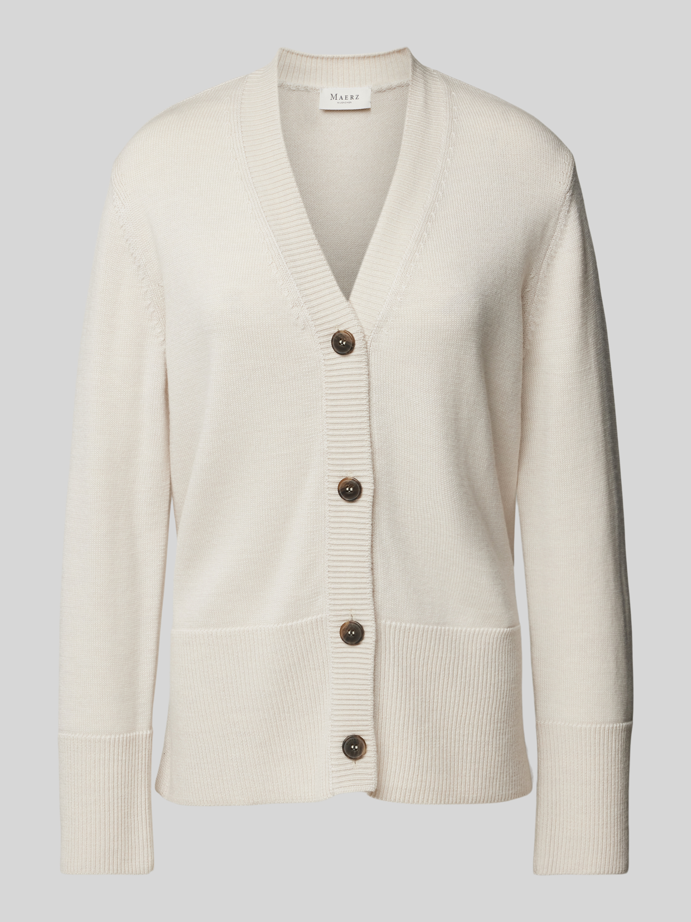 Der Damen Wollcardigan von MAERZ Muenchen zeichnet sich durch seine reine Schurwolle aus, die angenehm warm hält und zugleich atmungsaktiv ist. Der gerade Schnitt mit V-Ausschnitt verleiht eine zeitlose Eleganz. Eine durchgehende Knopfleiste ermöglicht vielseitige Trageoptionen.