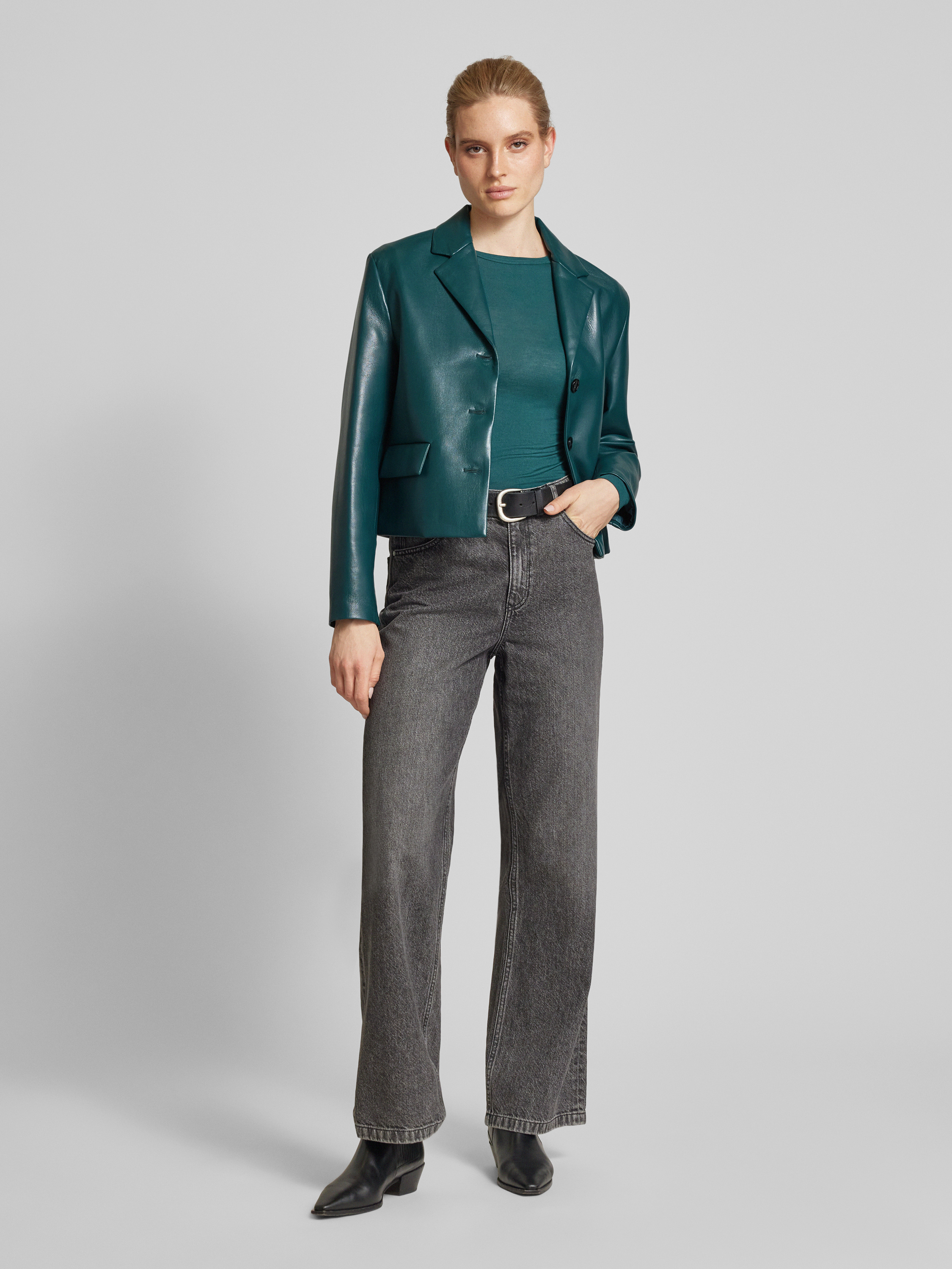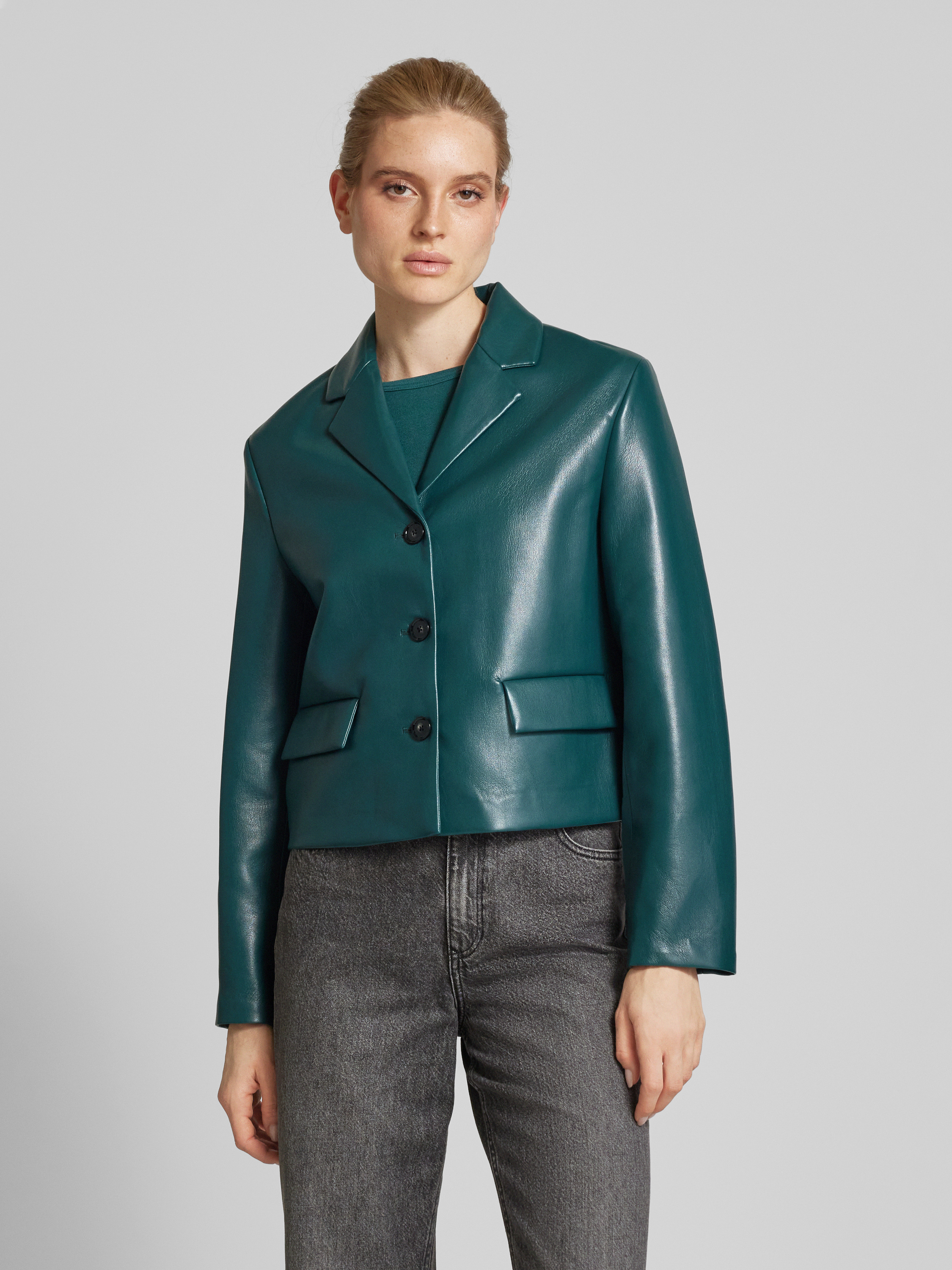 MangoBlazer in Leder-Optik Modell 'SUECIA' in petrol