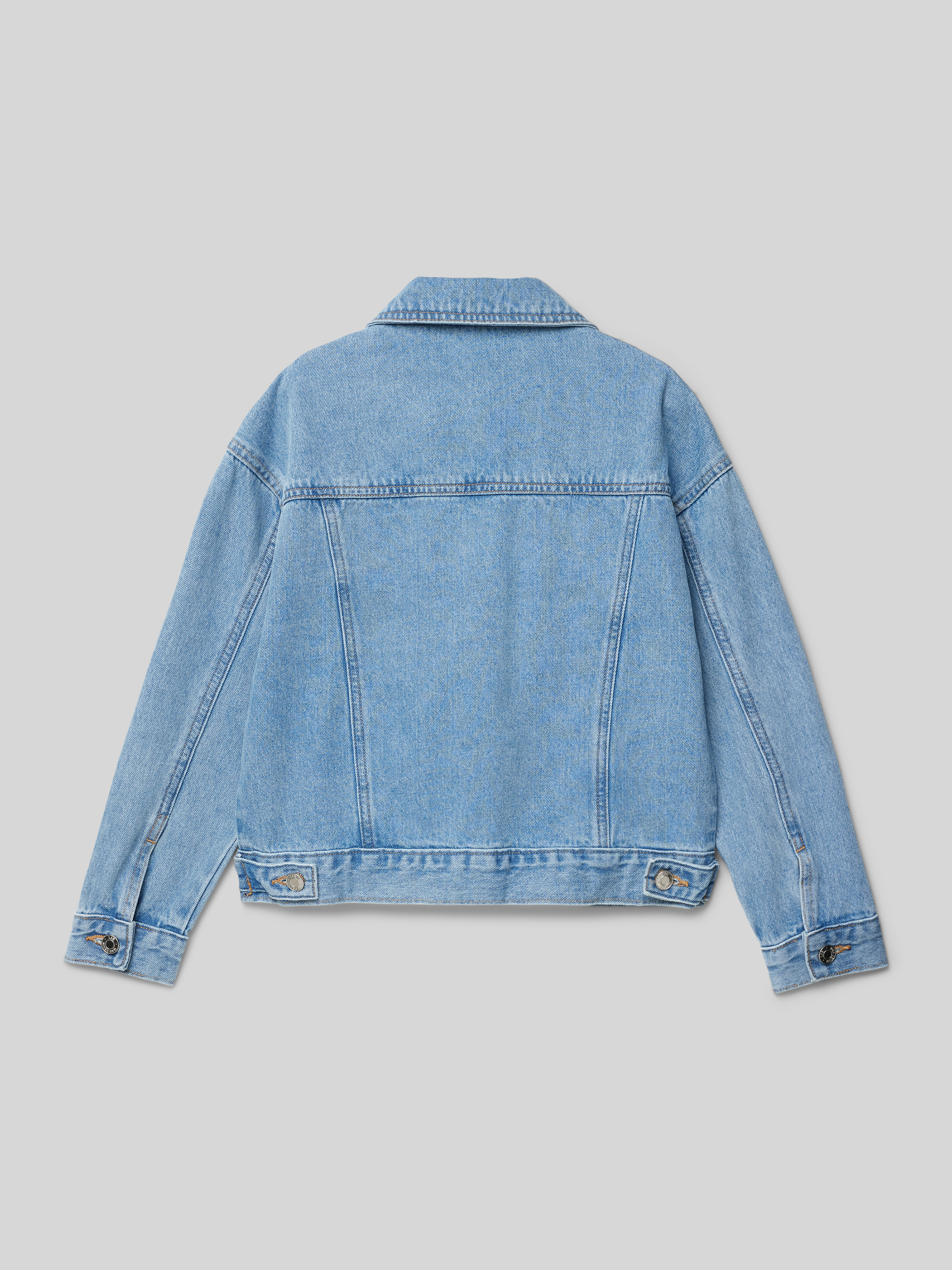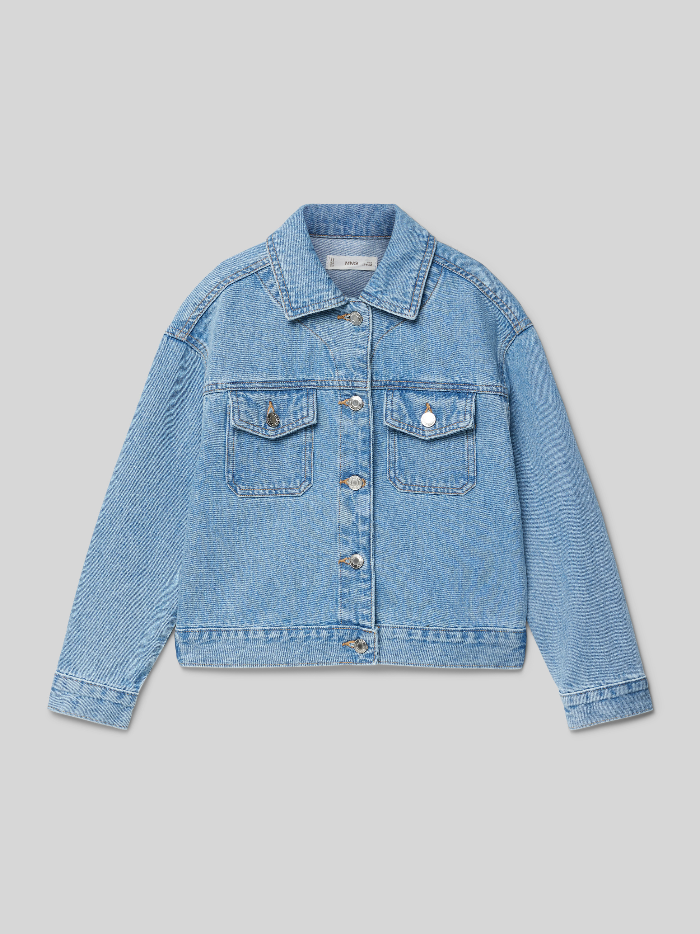Die MANGO Jeansjacke 'alice' kombiniert einen lockeren Schnitt mit einem klassischen Umlegekragen, was sie vielseitig einsetzbar macht. Dank der praktischen Brustpattentaschen lassen sich kleine Gegenstände mühelos verstauen. Diese Jacke aus hochwertigem Material bietet Bewegungsfreiheit und ist ideal für Kinder.