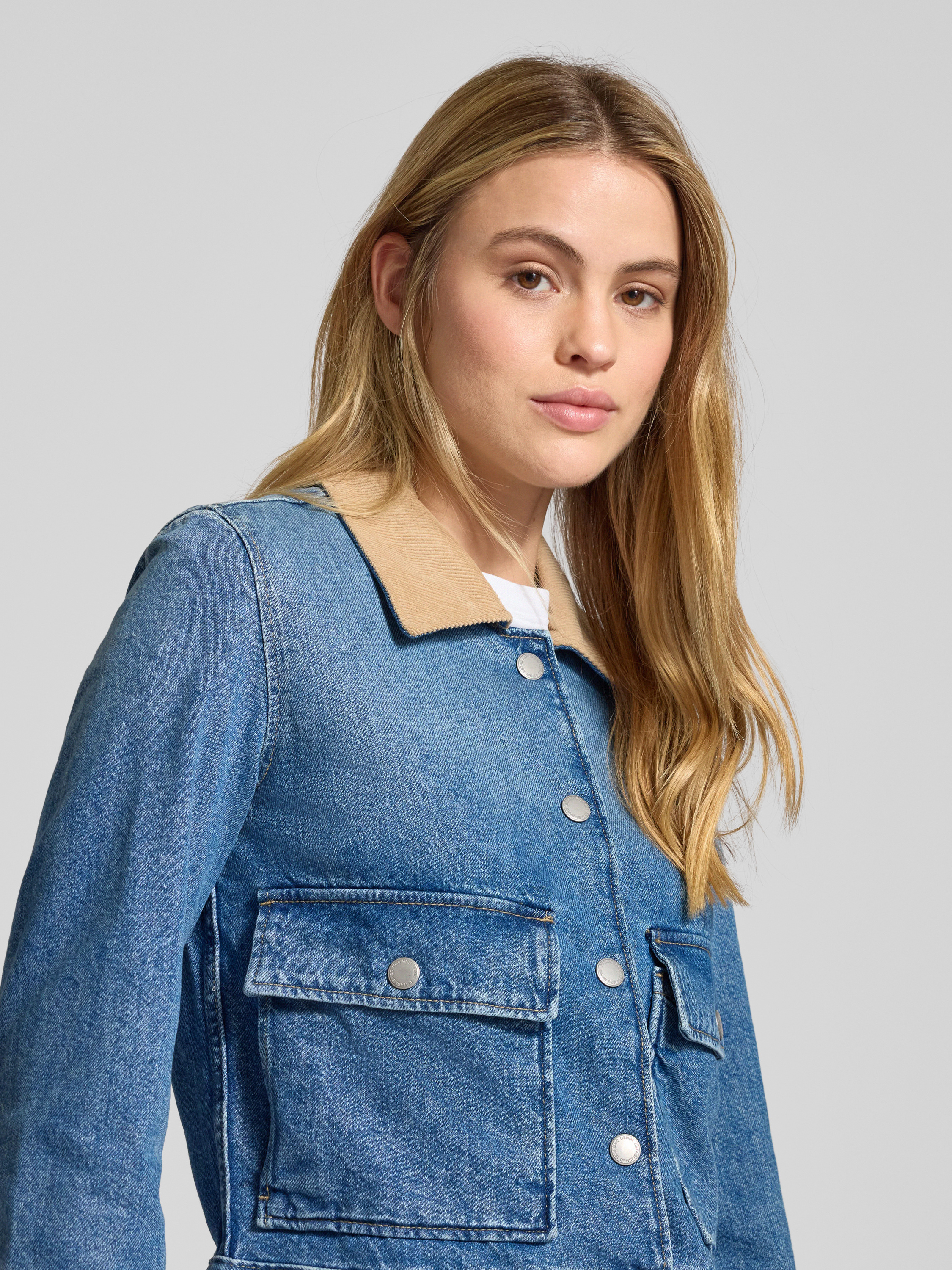 Die Damen Jeansjacke von Mango im Modell ADARA zeichnet sich durch reine Baumwolle und einen geraden Schnitt aus, wodurch sie angenehm auf der Haut liegt und vielseitig kombiniert werden kann. Ein Umlegekragen und aufgesetzte Taschen unterstreichen das zeitlose Design. So entsteht ein unkompliziertes Kleidungsstück für viele Gelegenheiten.