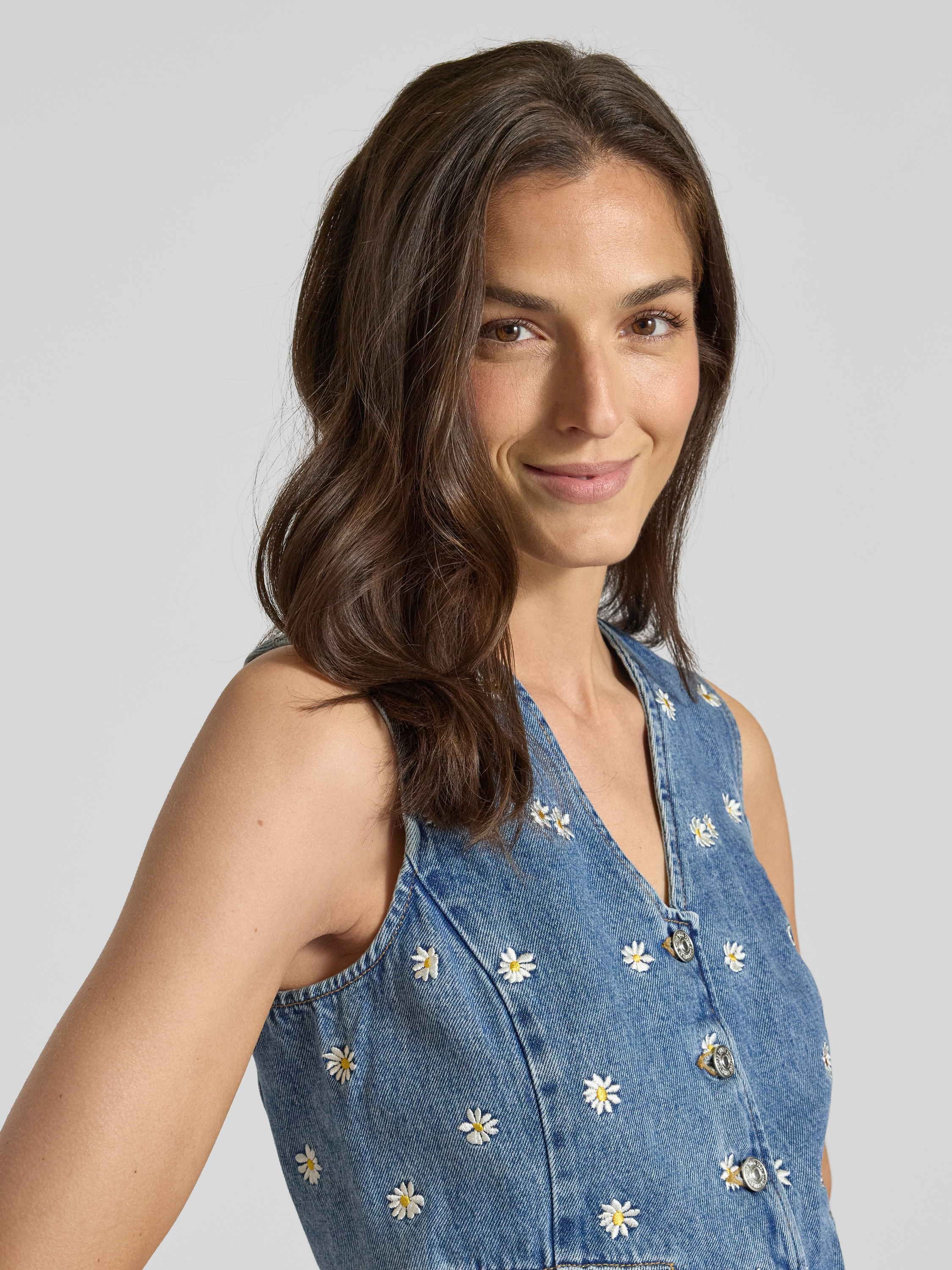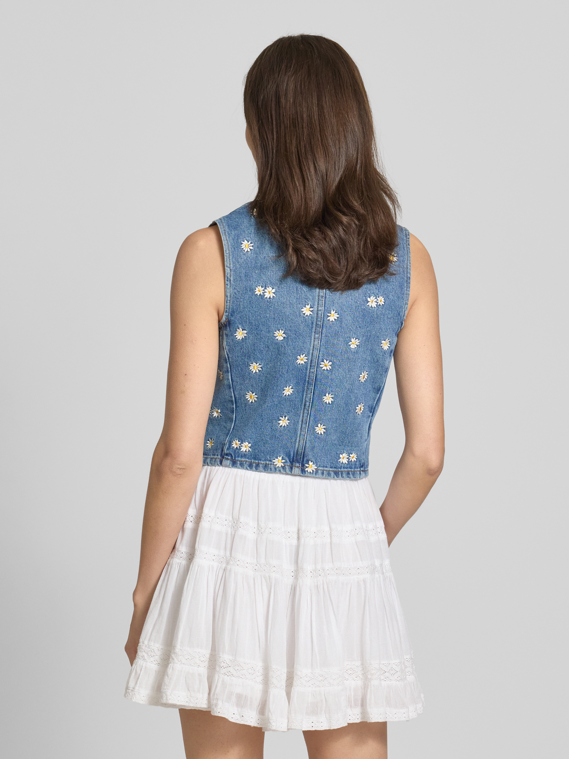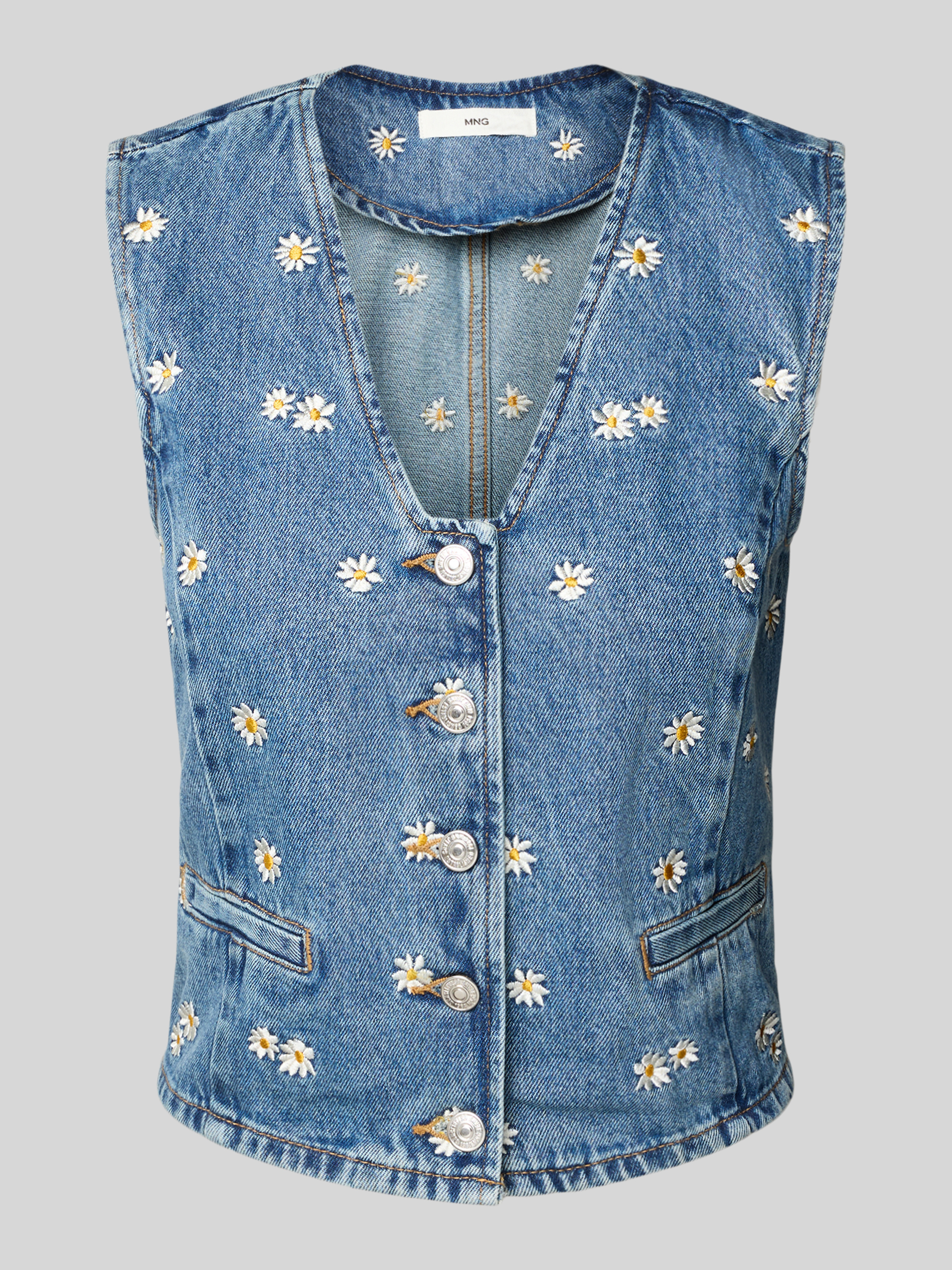 MangoJeansweste mit floralen Stickereien Modell 'MASSY' in jeansblau