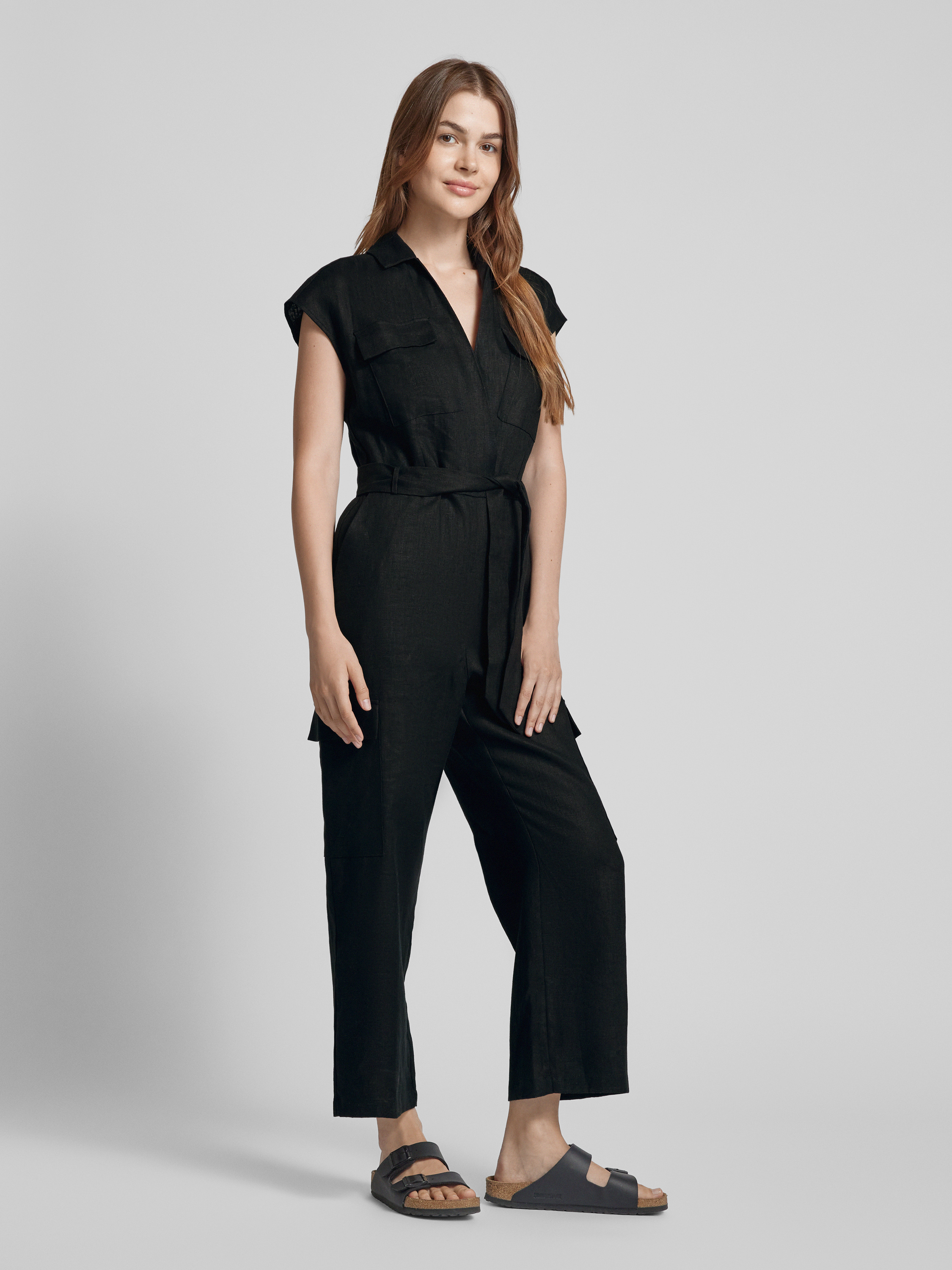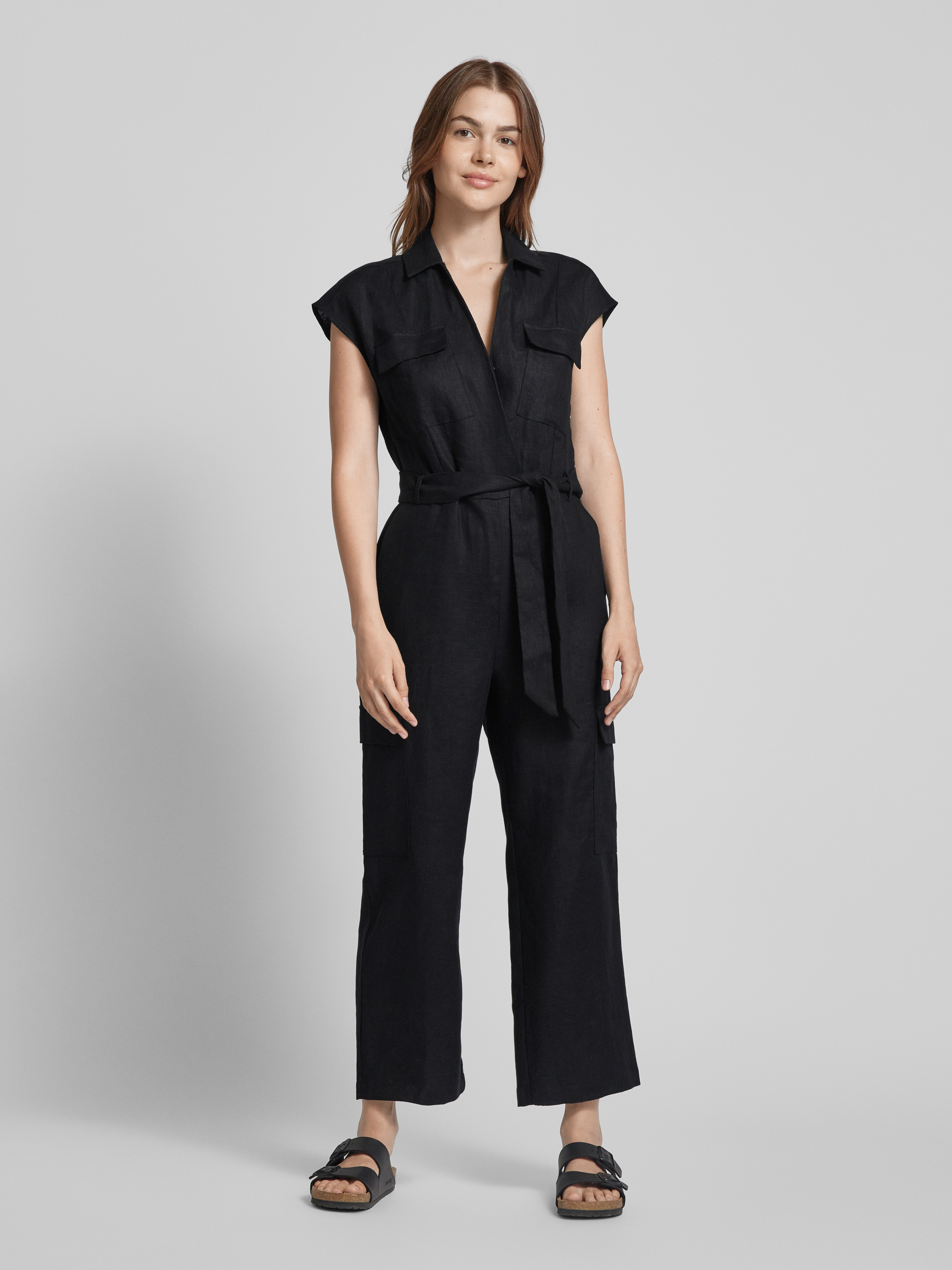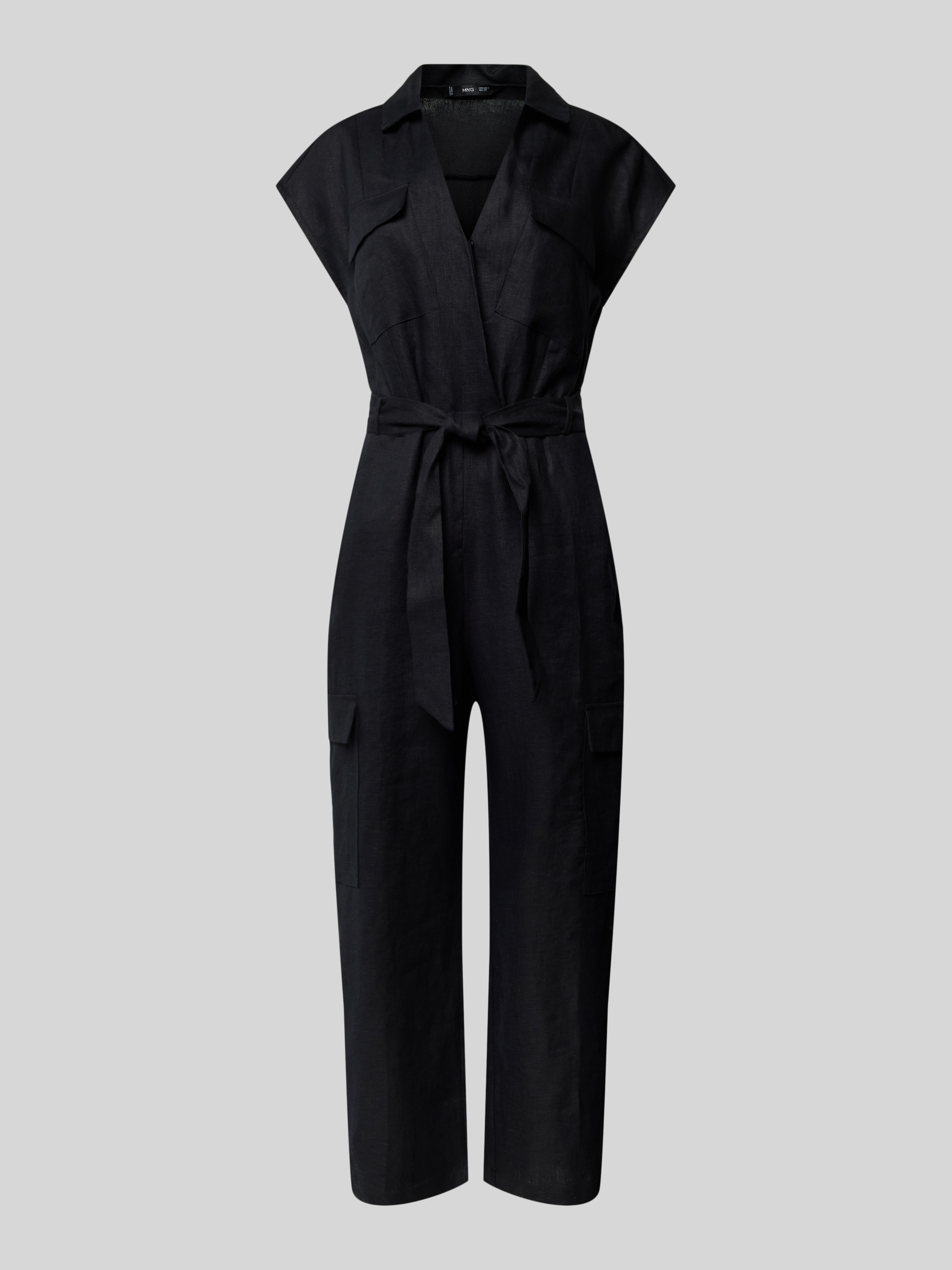 Der Jumpsuit mit Stoffgürtel Modell 'QUITA' von MANGO vereint schlichte Eleganz mit praktischen Details. Aus reiner Baumwolle gefertigt, bietet der taillierte Schnitt eine komfortable Passform, während der Umlegekragen und die Brust- sowie Cargotaschen funktionale Akzente setzen. Ideal für vielseitige Outfits.