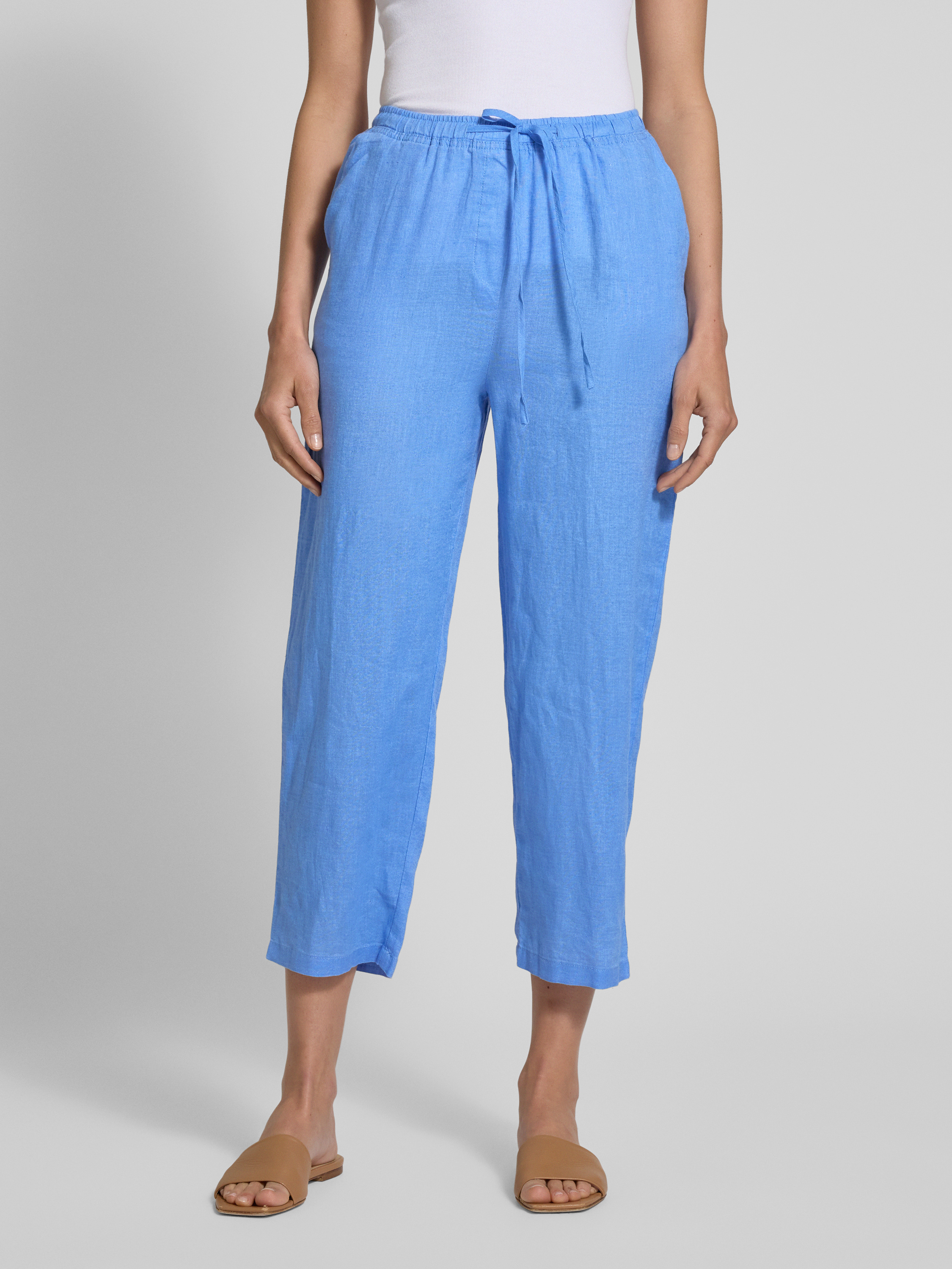 Die Damen Leinenhose von MANGO kombiniert einen angenehmen Leinen-Baumwoll-Mix mit einer verkürzten Passform, die durch einen elastischen Bund und einen Tunnelzug Flexibilität bietet. Sie eignet sich hervorragend für entspannte Anlässe, bei denen Komfort und Stil gleichermaßen wichtig sind.
