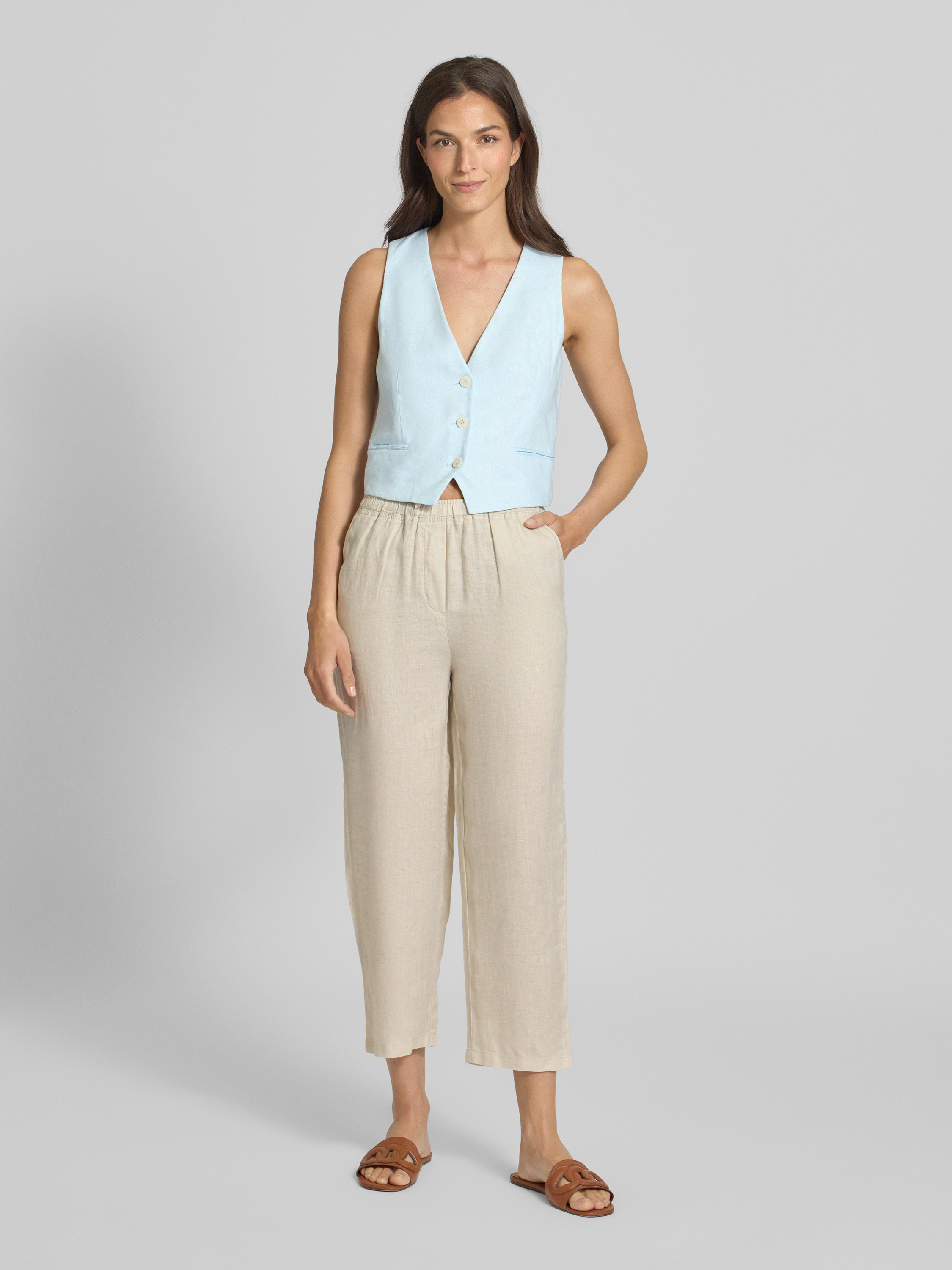 MangoLeinenweste mit Paspeltaschen Modell 'BORELI' in hellblau