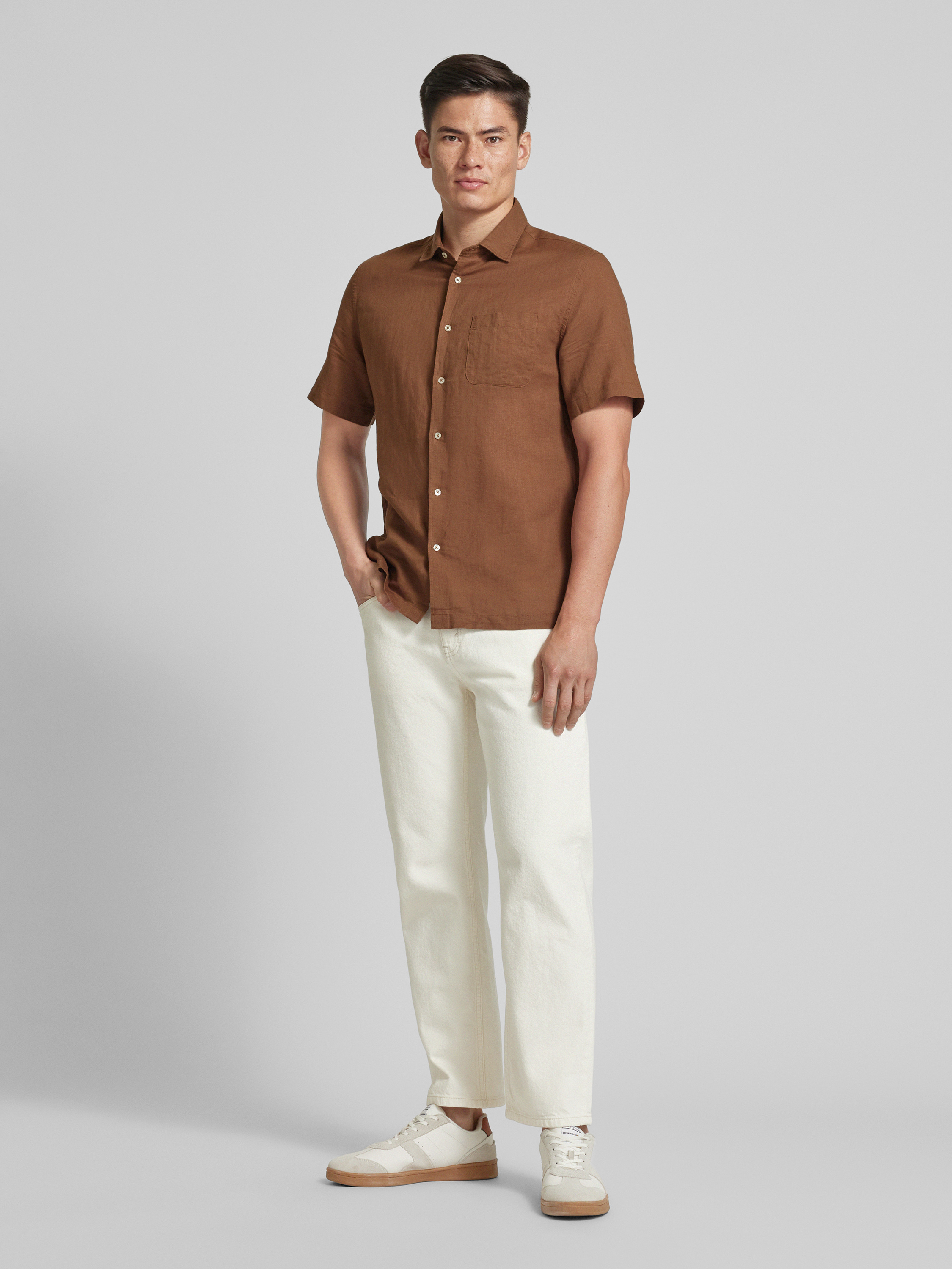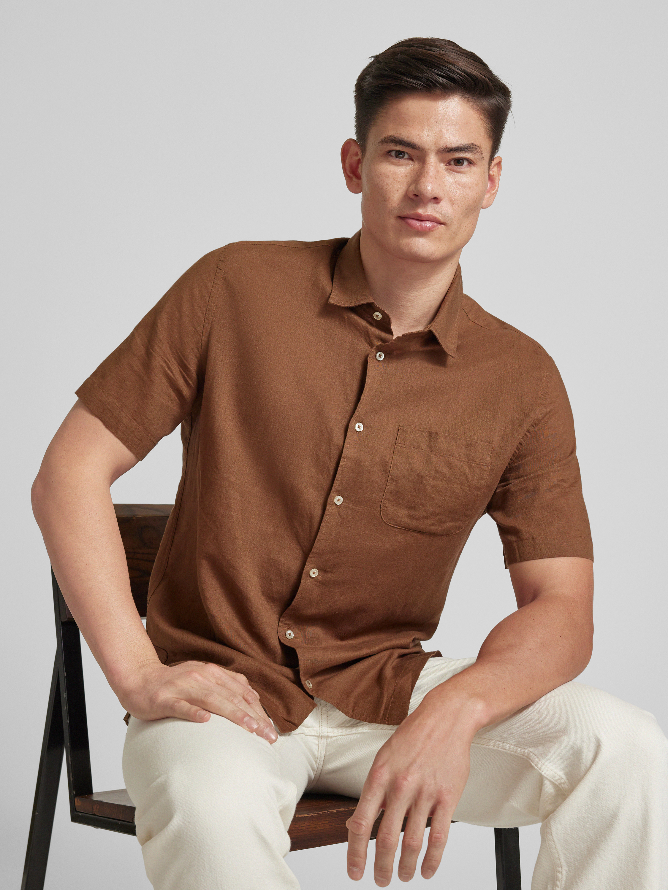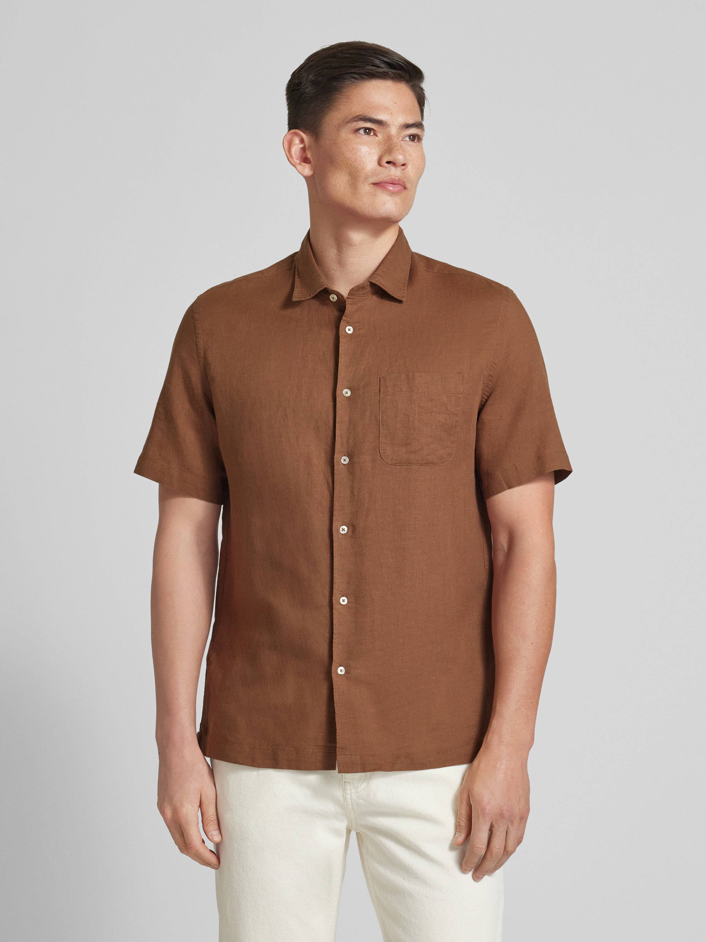MangoRegular Fit Freizeithemd aus Leinen-Baumwoll-Mix Modell 'ANTS' in rostrot