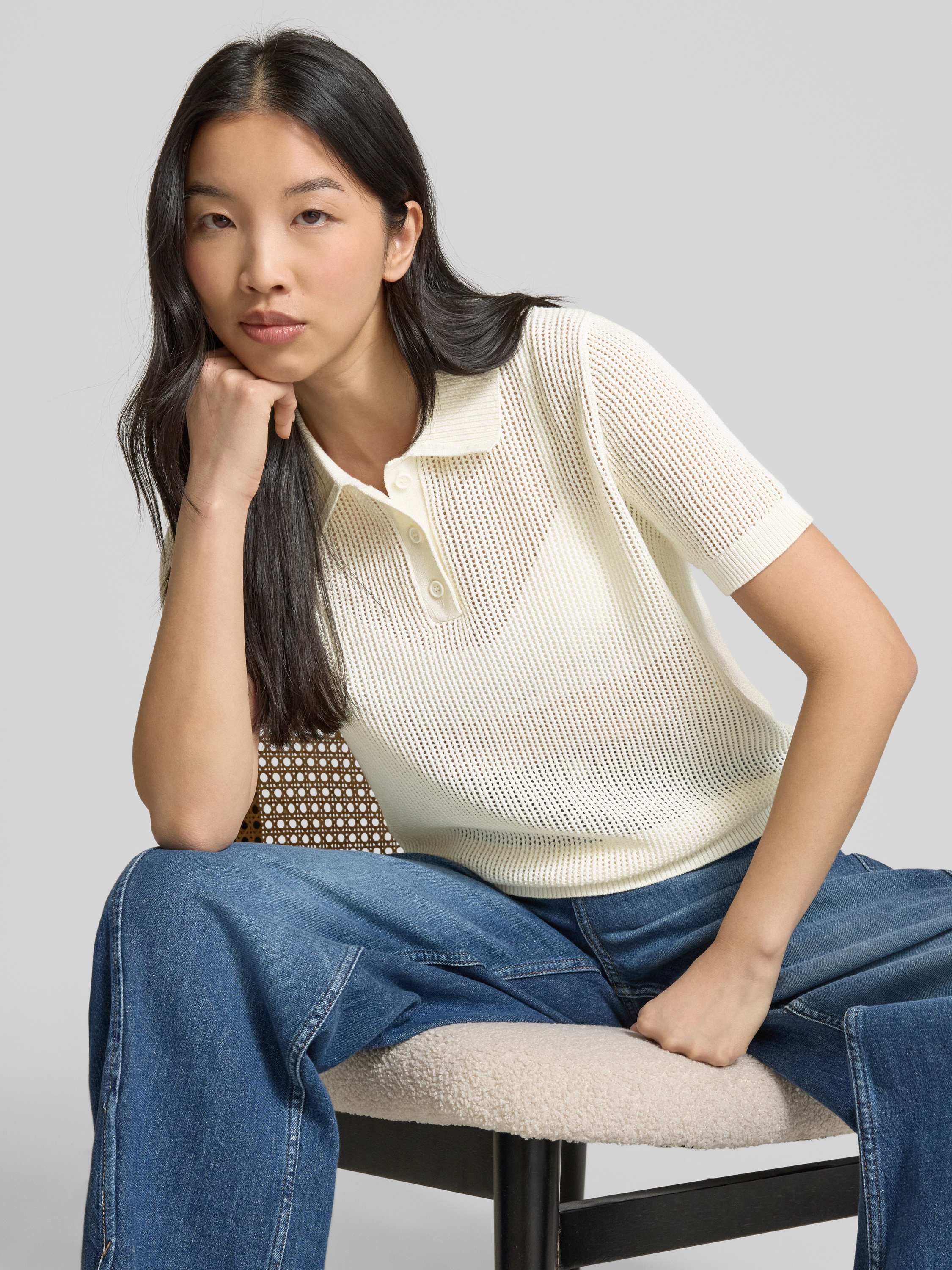 Der Strickpullover 'VICTORIA' von MANGO kombiniert einen Baumwoll-Mix mit einem geraden Schnitt, was ihn vielseitig und angenehm tragbar macht. Der Polokragen verleiht dem Design eine elegante Note, während der Grobstrick für eine lässige Optik sorgt. Die halblangen Ärmel eignen sich besonders für milde Tage.