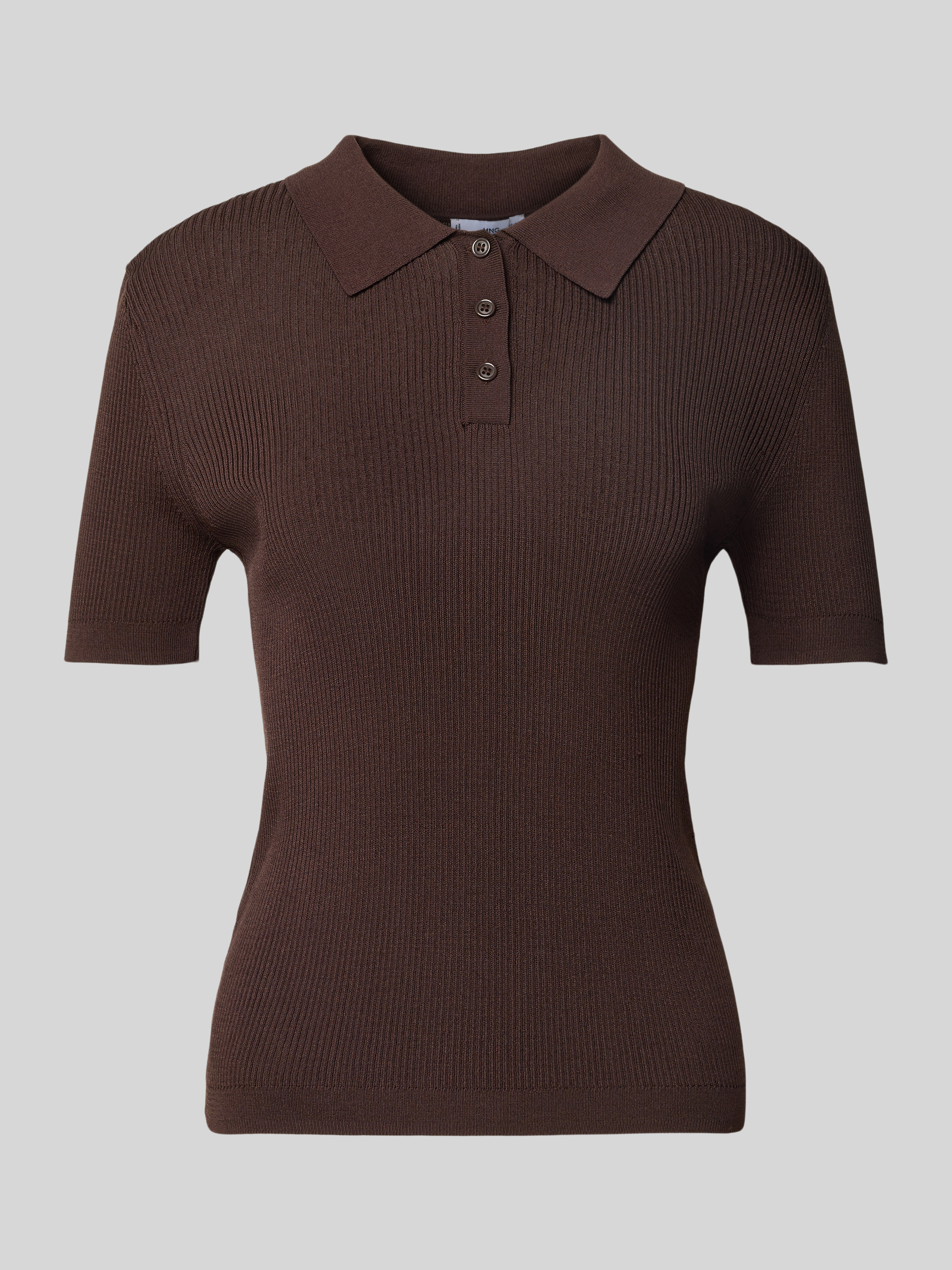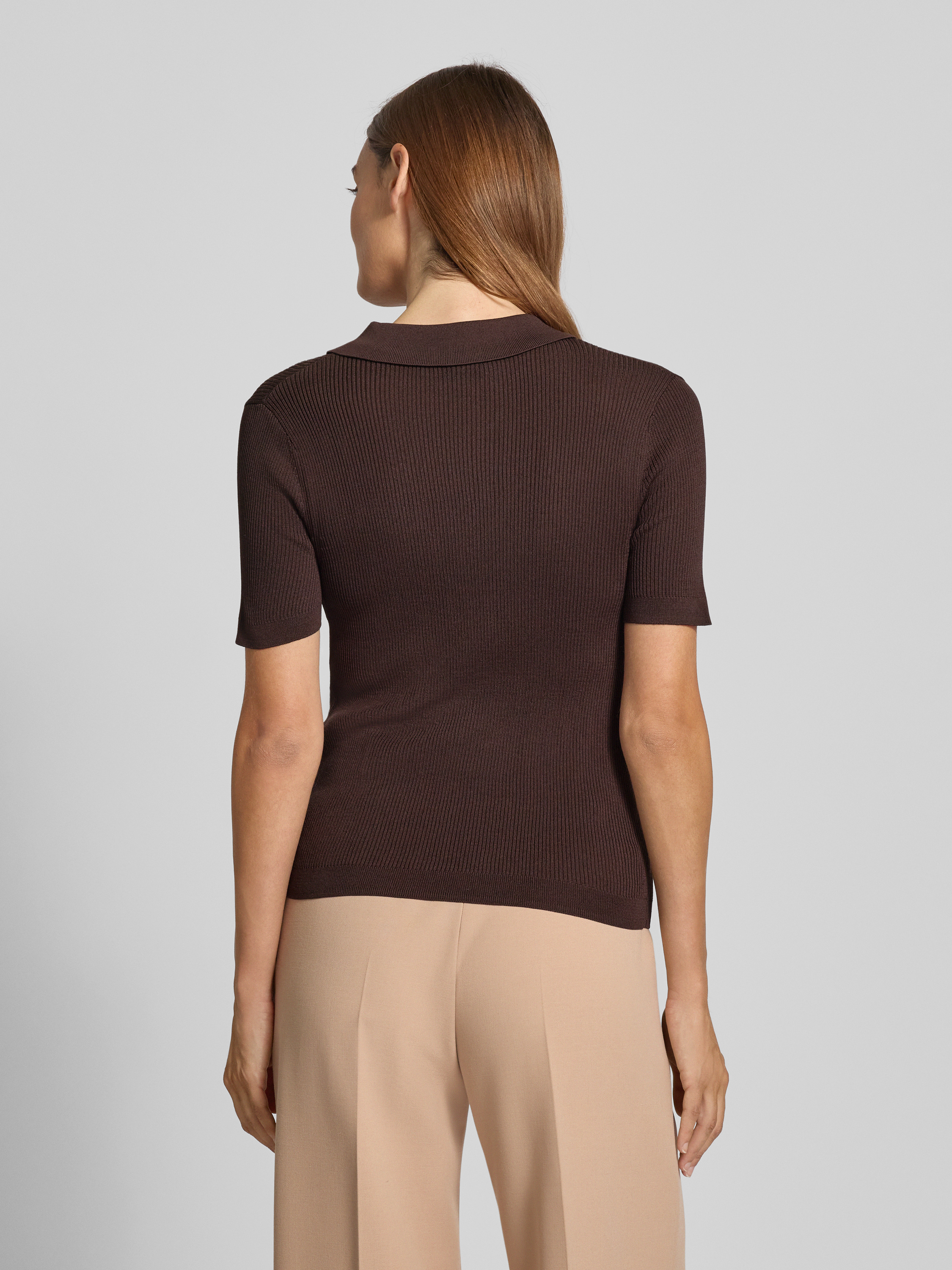 MangoStrickshirt mit Polokragen Modell 'POLETE' in dunkelbraun