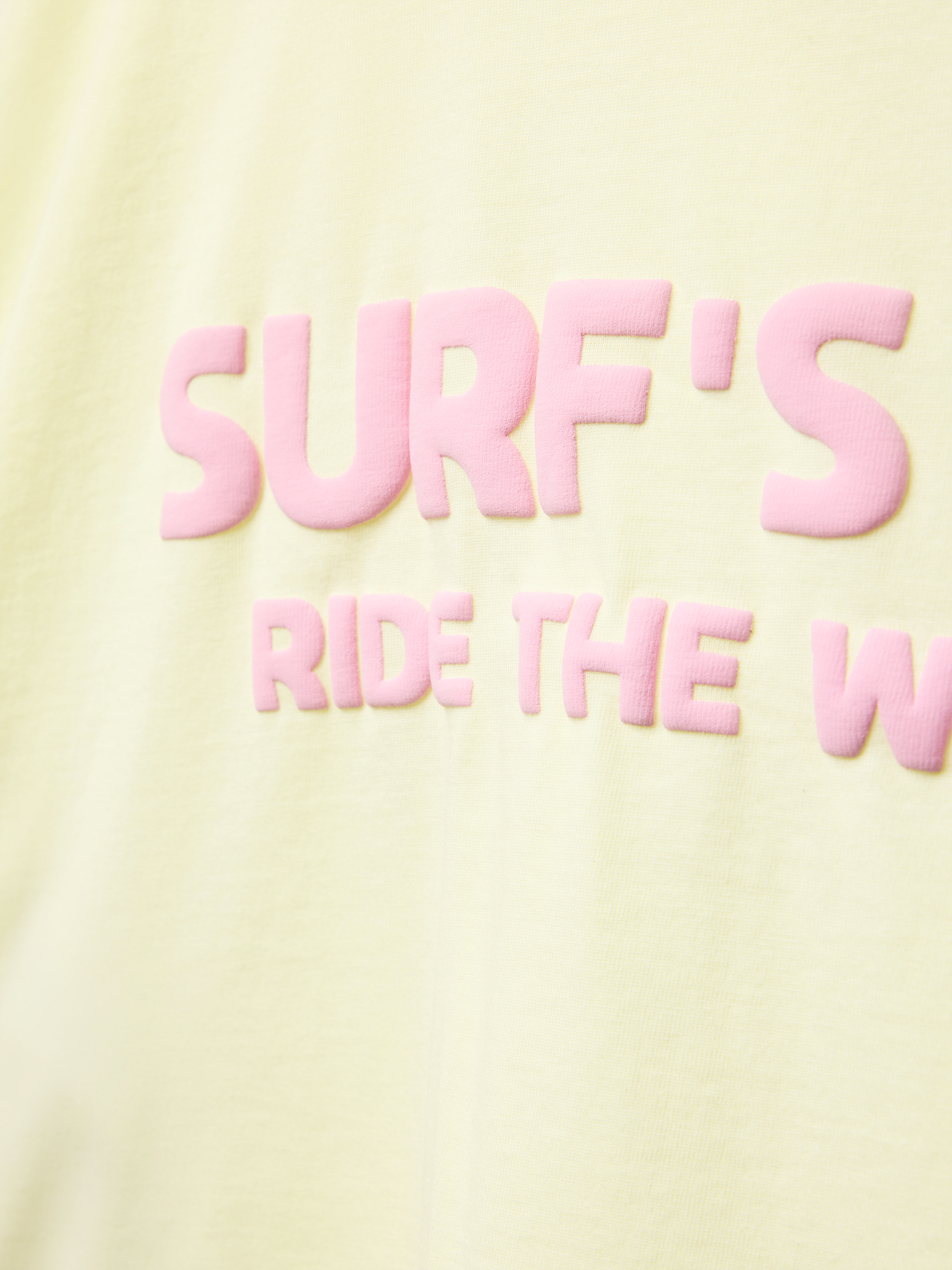 Das Mango Kinder T-Shirt bietet durch seine reine Baumwolle ein angenehmes Tragegefühl und überzeugt mit einem entspannten Regular Fit. Der verkürzte Schnitt verleiht dem Oberteil eine moderne Note, während der gerippte Rundhalsausschnitt und der auffällige Statement-Print für zusätzliche Akzente sorgen.