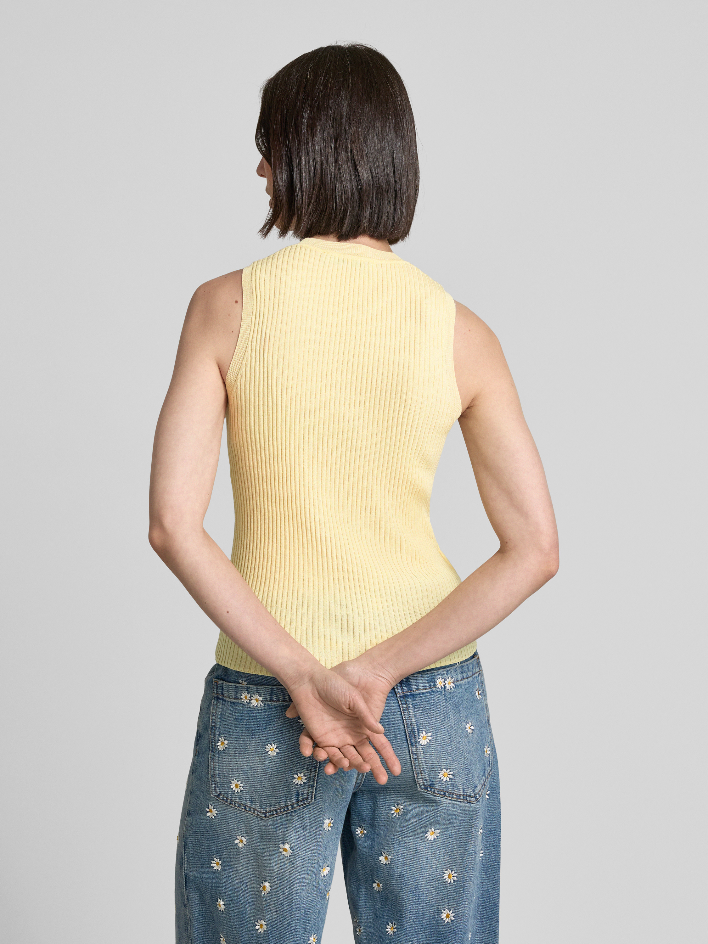 Das Tanktop 'Bugambi' von Mango vereint einen Material-Mix mit einem Leinen-Anteil, der für ein angenehmes Tragegefühl sorgt. Der eng anliegende Schnitt passt sich harmonisch der Figur an und der Rundhalsausschnitt verleiht dem Design eine schlichte Eleganz. Ideal für warme Tage.