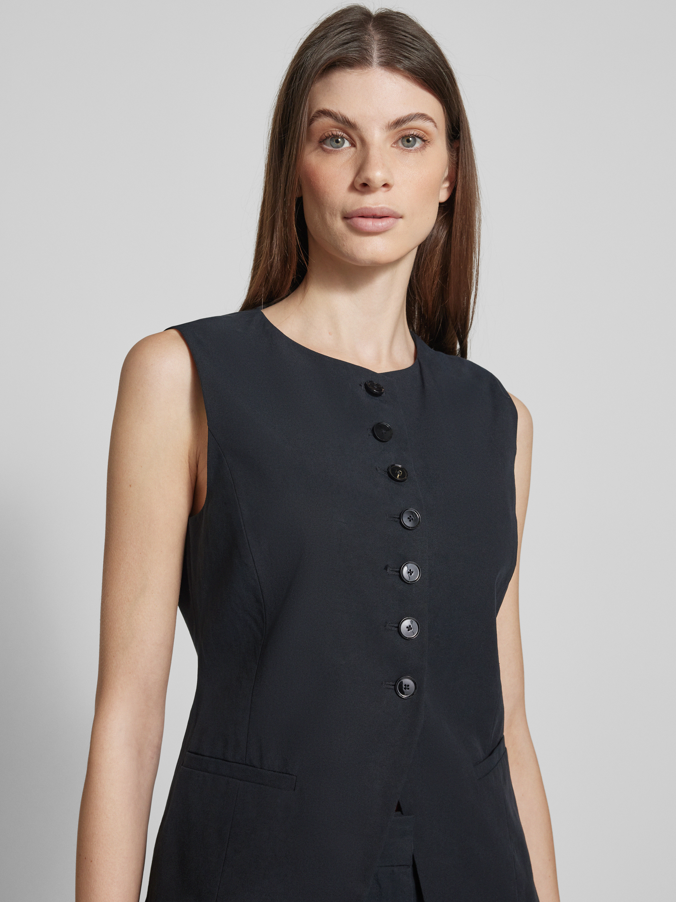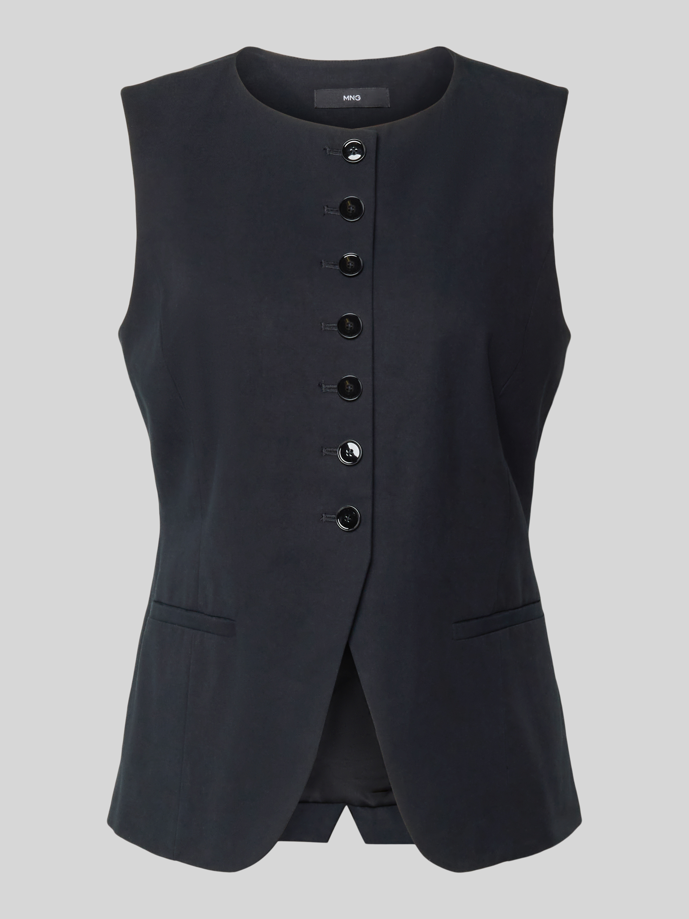 Die Weste mit Rundhalsausschnitt Modell 'GRETA' von Mango kombiniert eine moderne Passform mit einem Lyocell-Baumwoll-Mix, der sich angenehm auf der Haut anfühlt. Durch die Paspeltaschen und den Regular Fit eignet sie sich ideal für vielseitige Alltagskombinationen. Eine stilvolle Ergänzung für jede Garderobe.