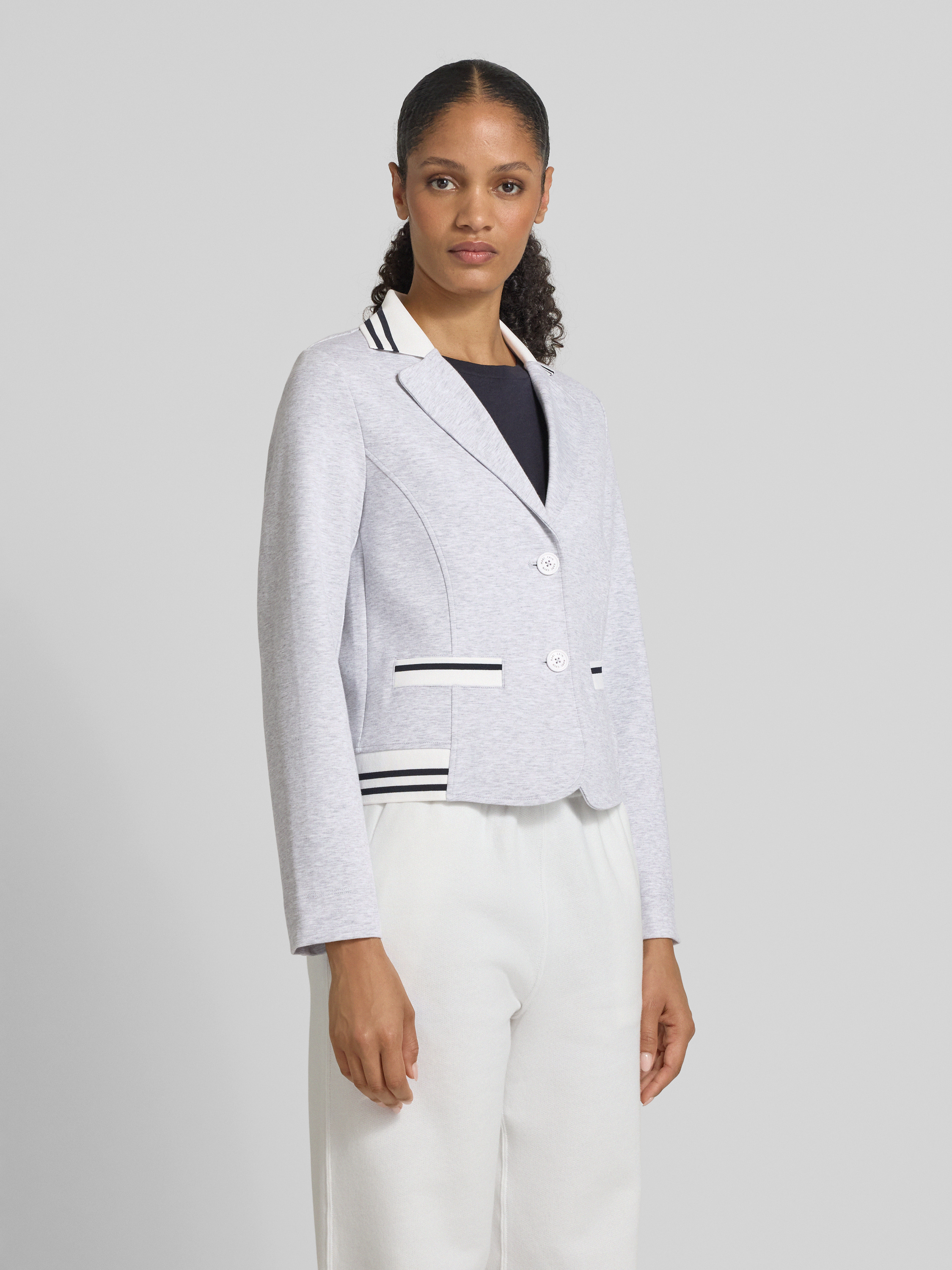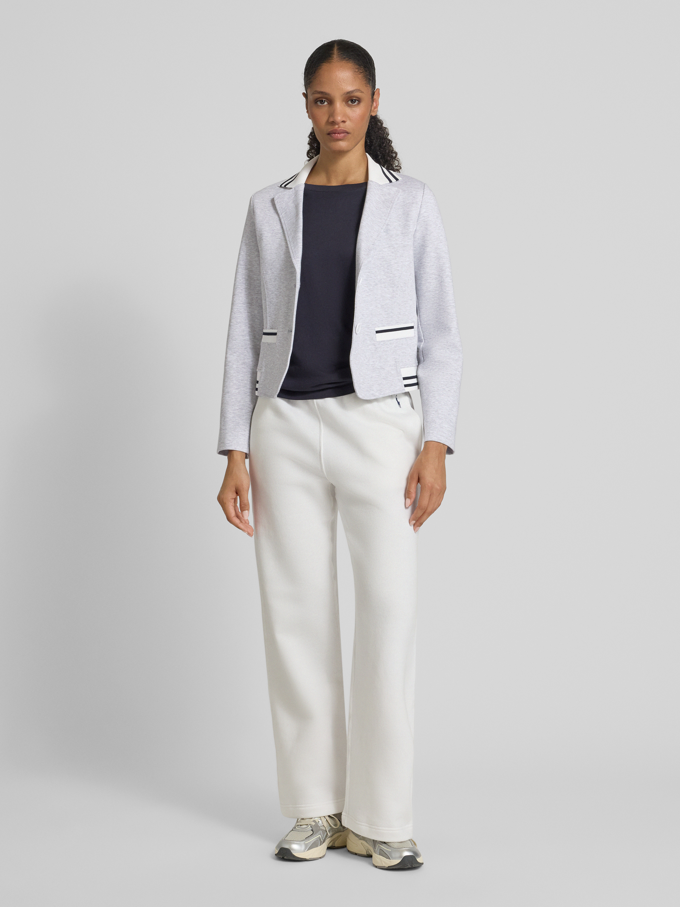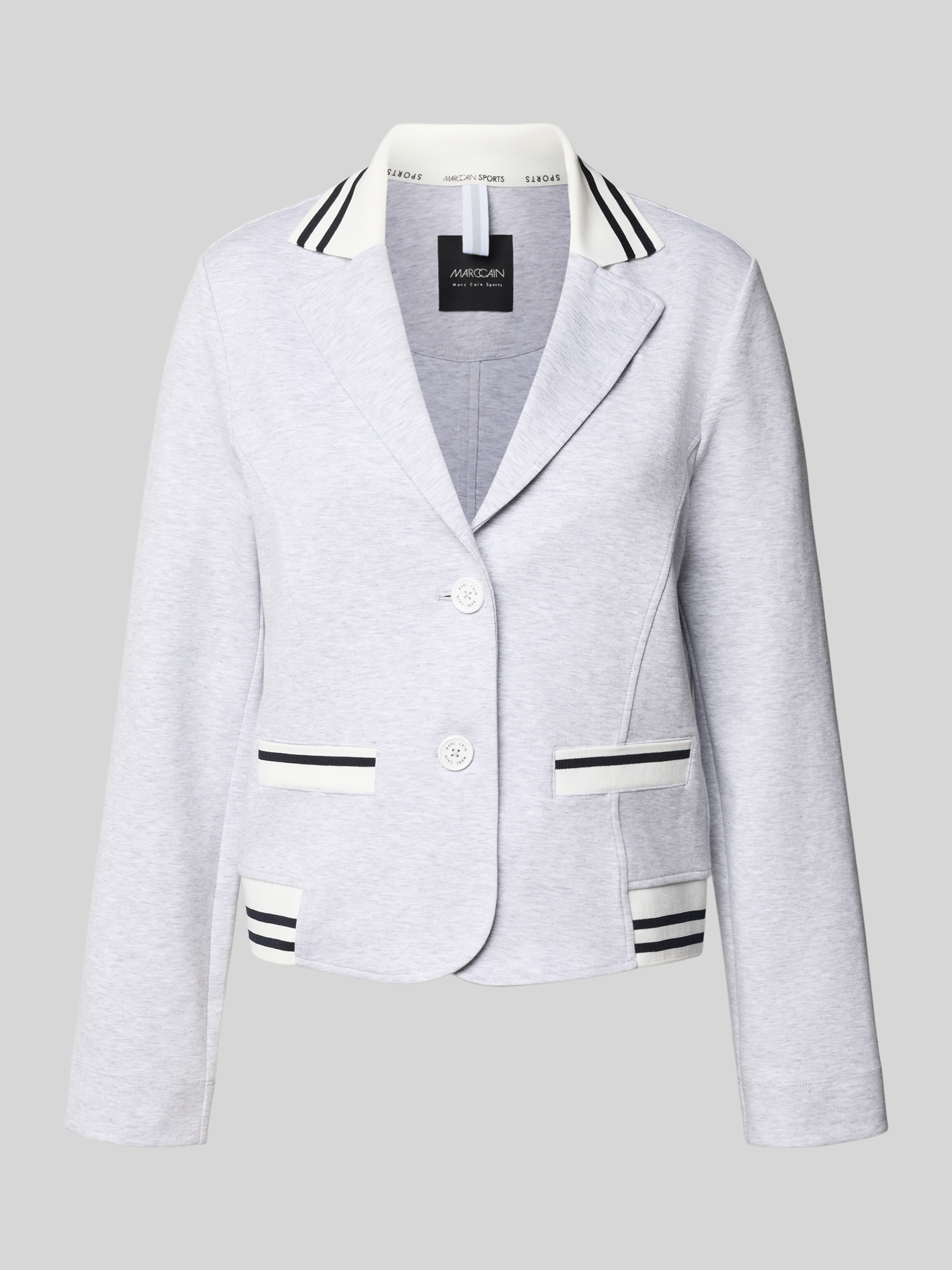 Der Marc Cain Blazer mit Reverskragen kombiniert einen Baumwoll-Mix mit Stretch-Anteil für angenehmen Tragekomfort und Bewegungsfreiheit. Sein Regular Fit sorgt für eine schmeichelhafte Silhouette, während die Eingrifftaschen praktische Funktionalität bieten. Ideal für elegante Anlässe und den stilvollen Alltag.