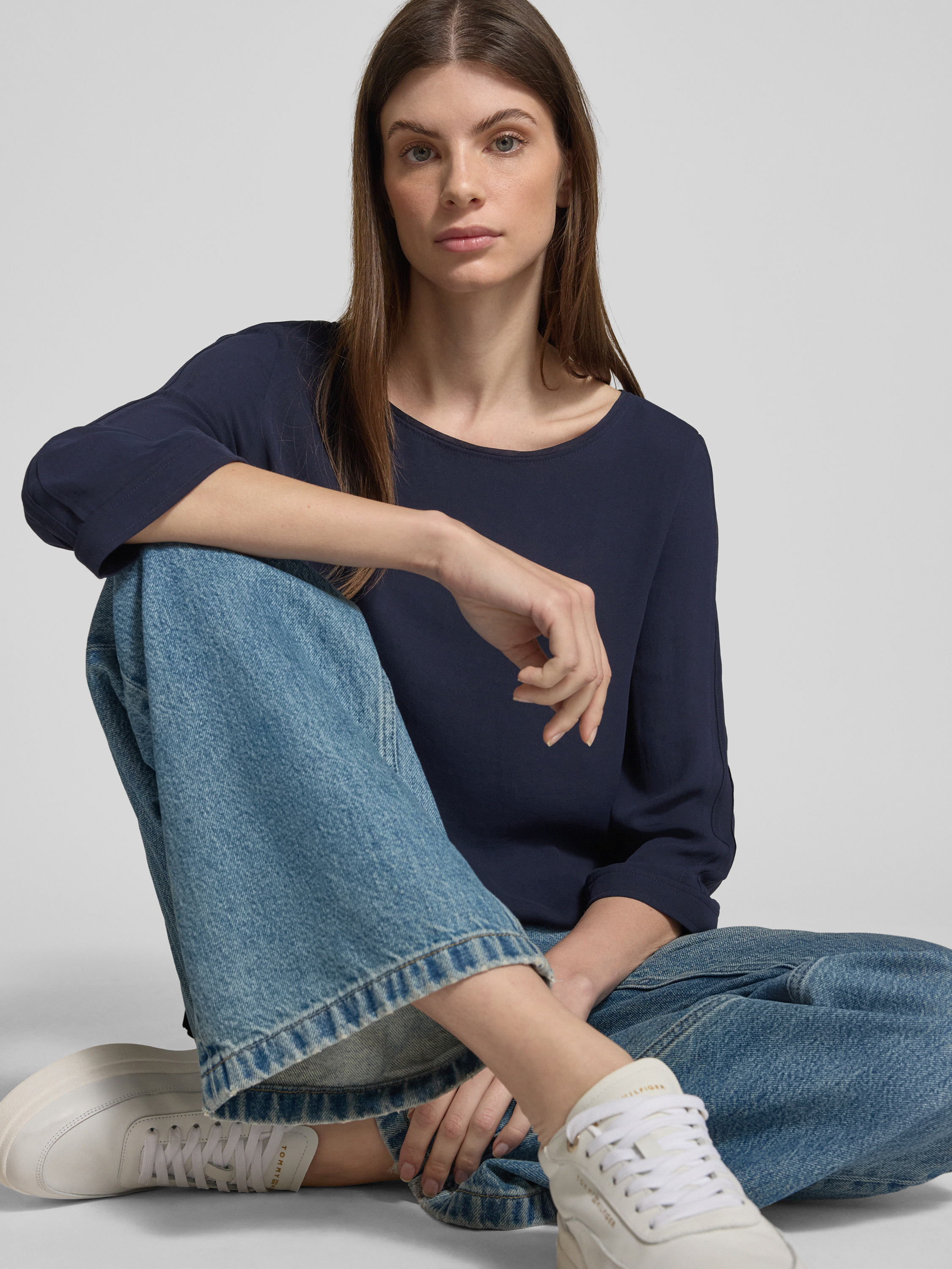 Marc CainBlusenshirt mit Rundhalsausschnitt und 3/4-Arm in marine