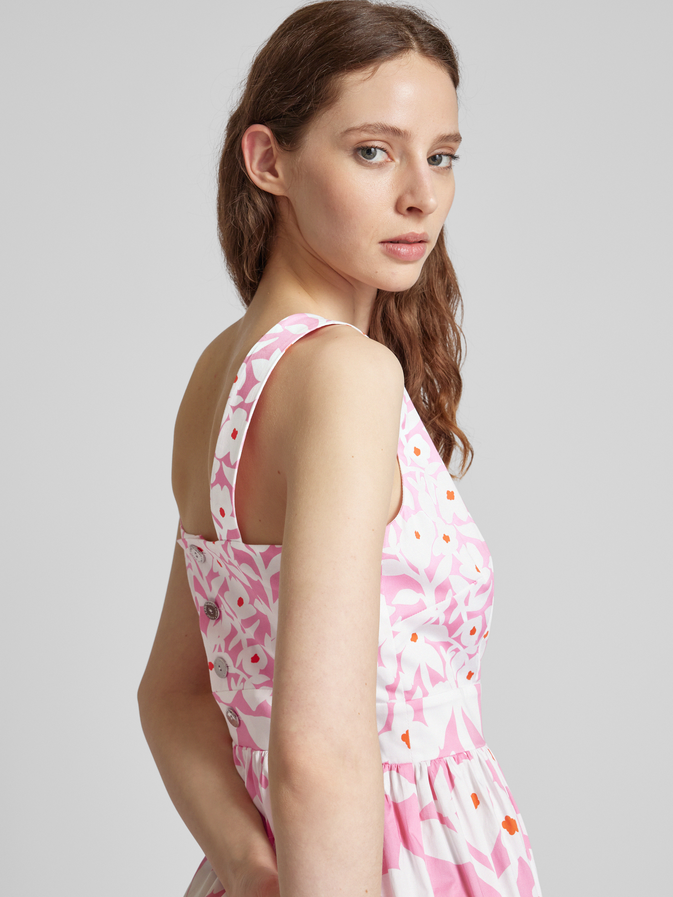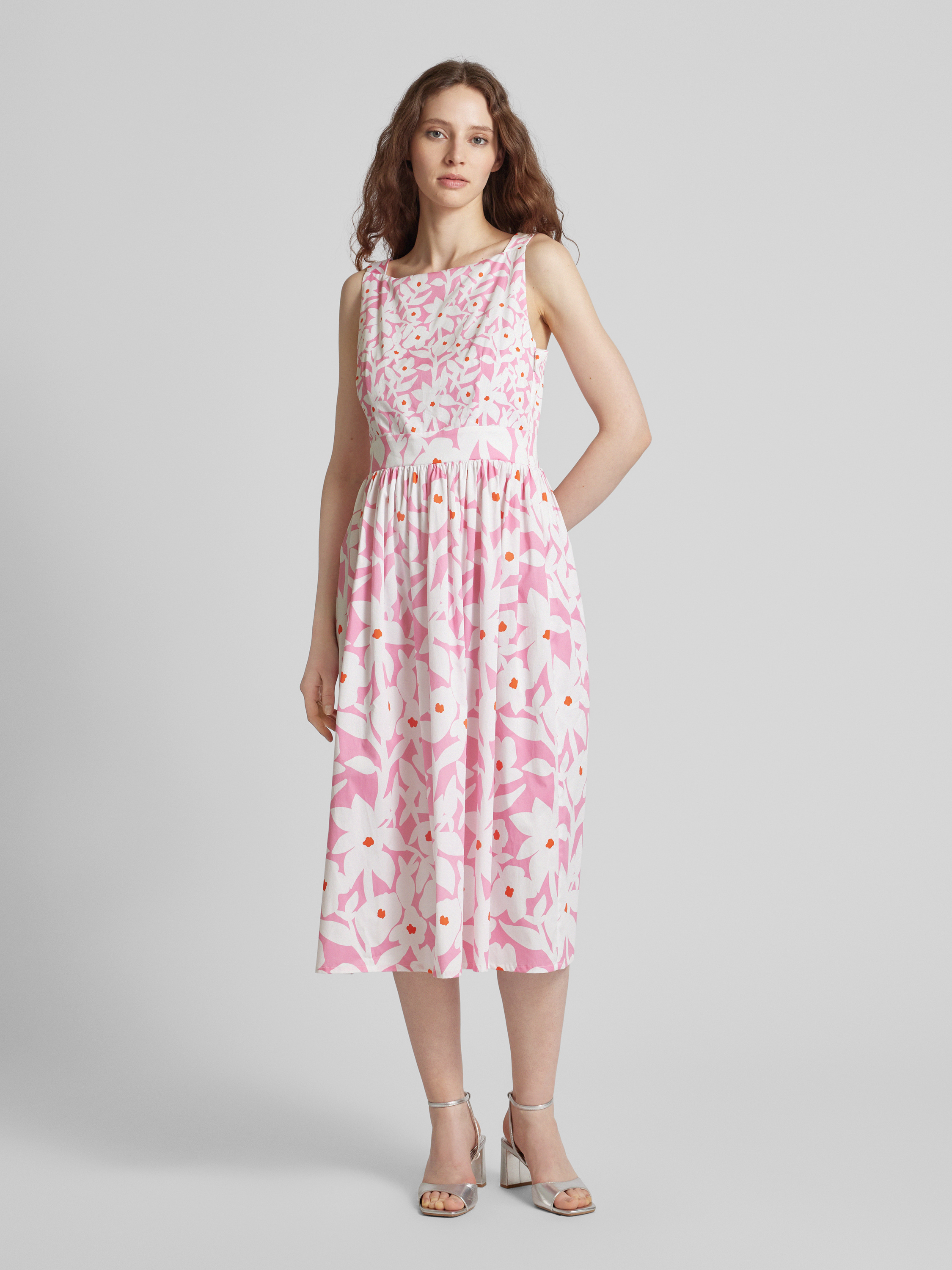 Marc CainKnielanges Kleid mit floralem Muster in weiss