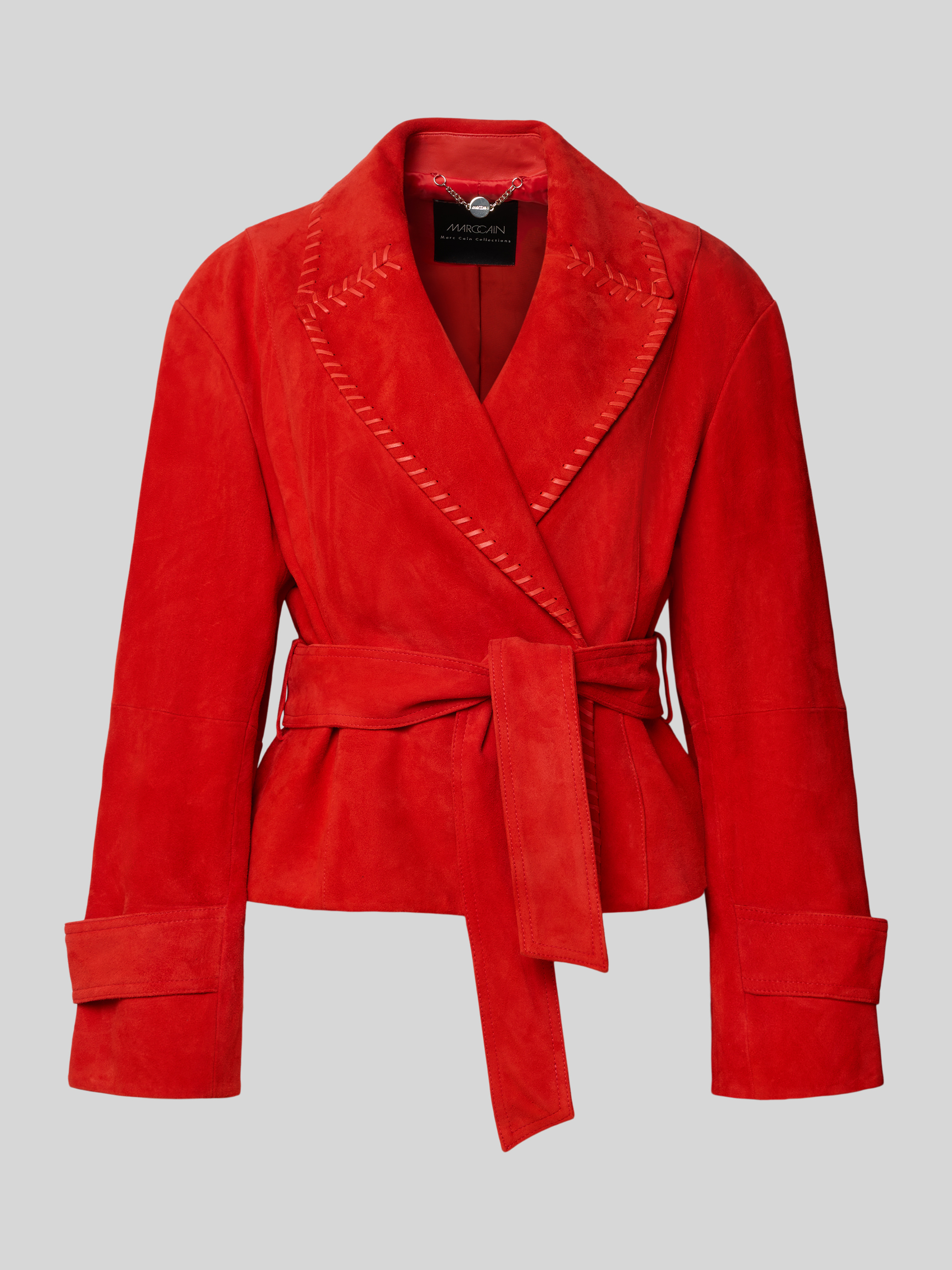 • Marc Cain Lederjacke mit Bindegürtel Rot