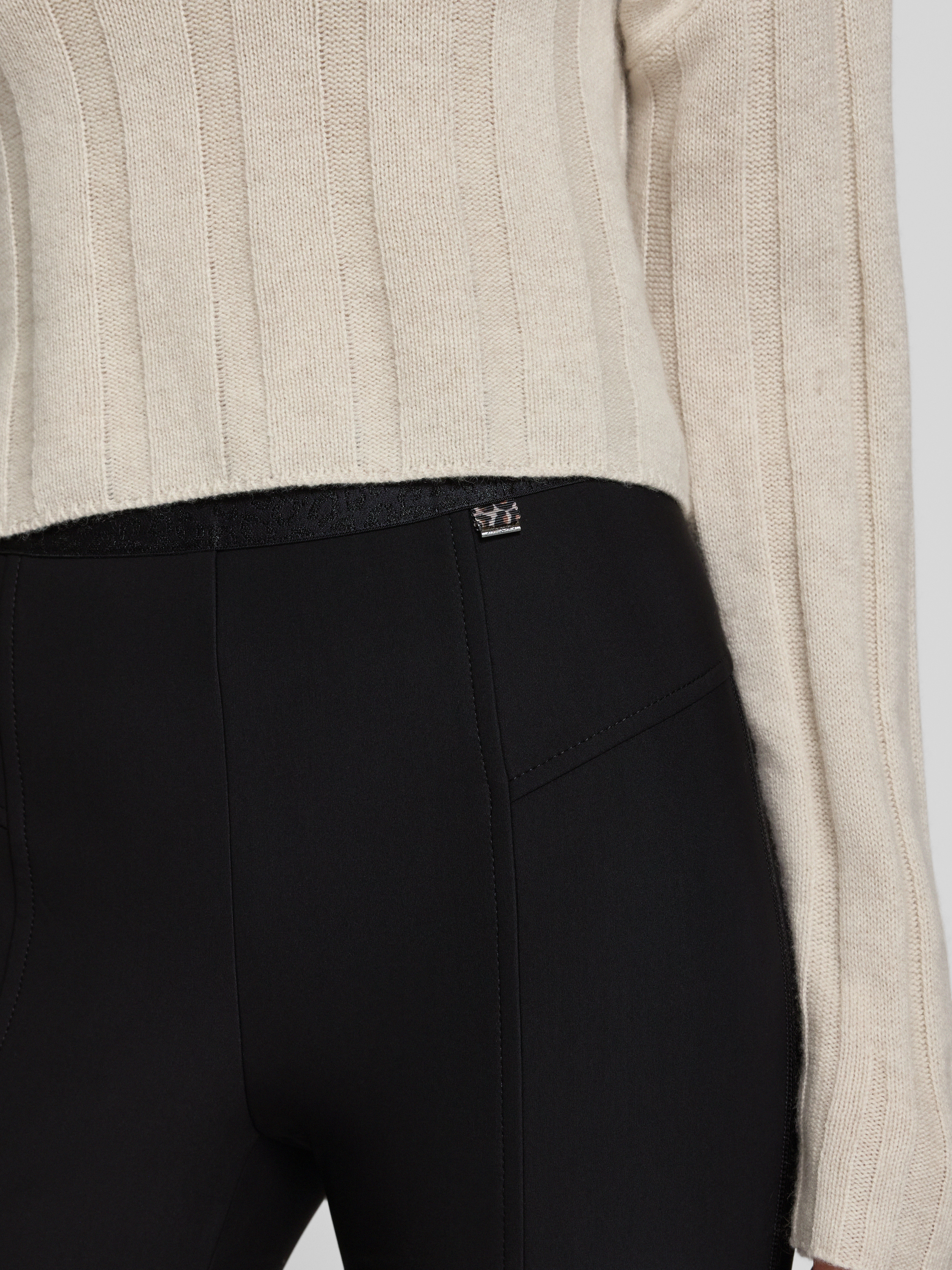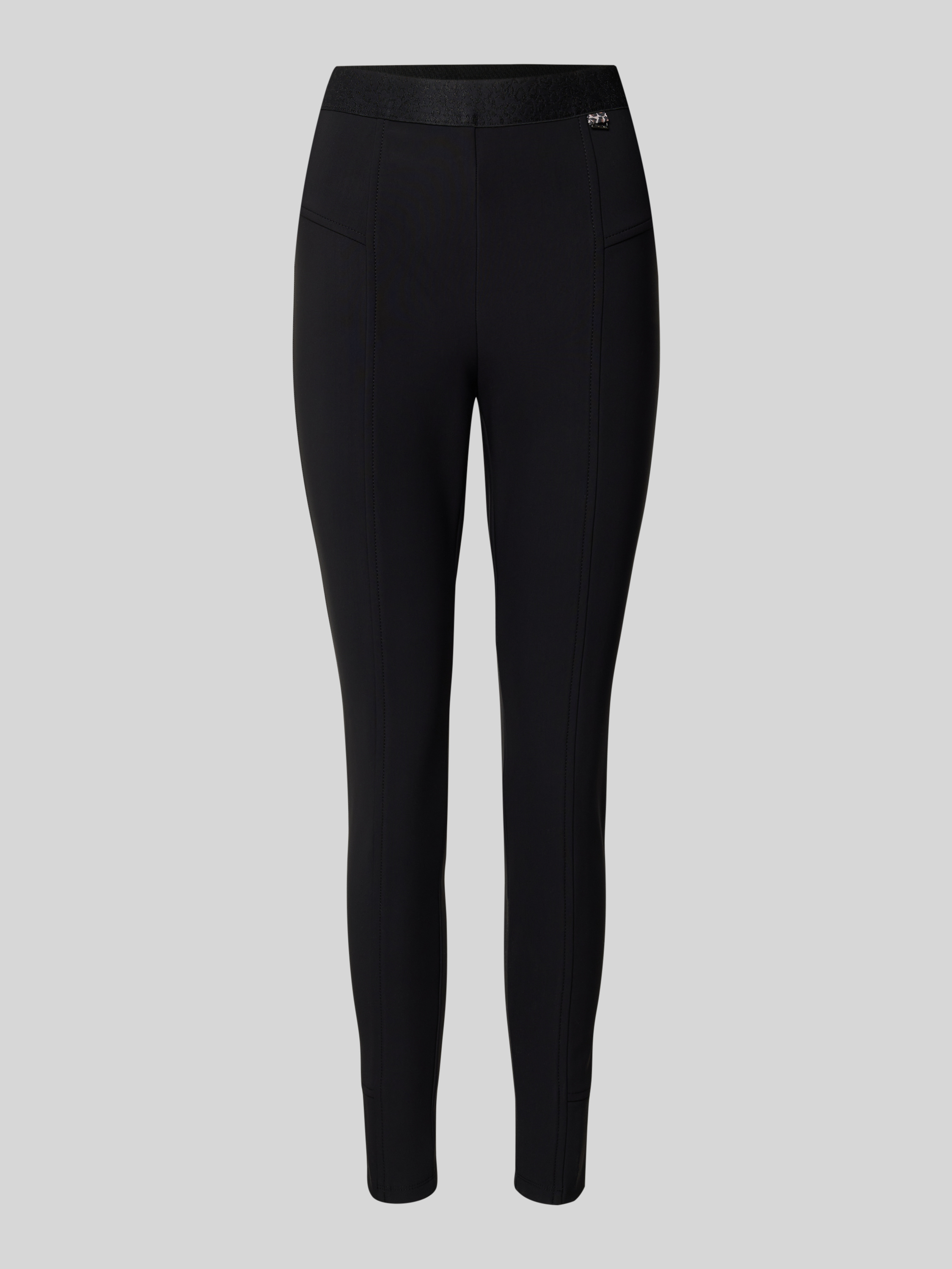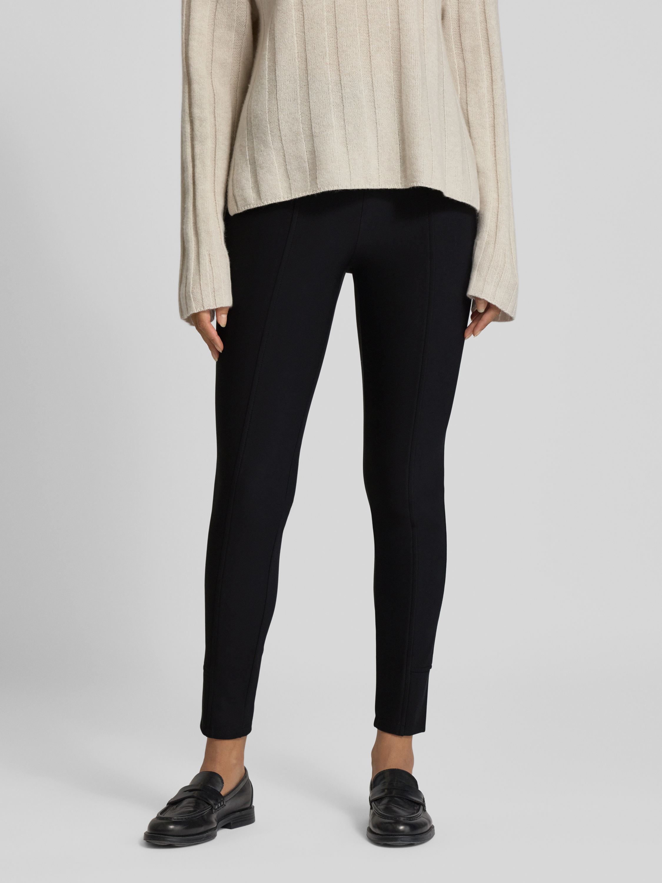 Die Damen-Leggings von Marc Cain fallen durch ihren super engen Schnitt und den angenehmen Material-Mix mit Stretch-Anteil auf. Eine sorgfältig eingearbeitete Applikation sorgt für einen dezenten Akzent, während der elastische Bund angenehmen Halt ermöglicht. So eignet sich das Modell für vielseitige Kombinationen im Alltag.