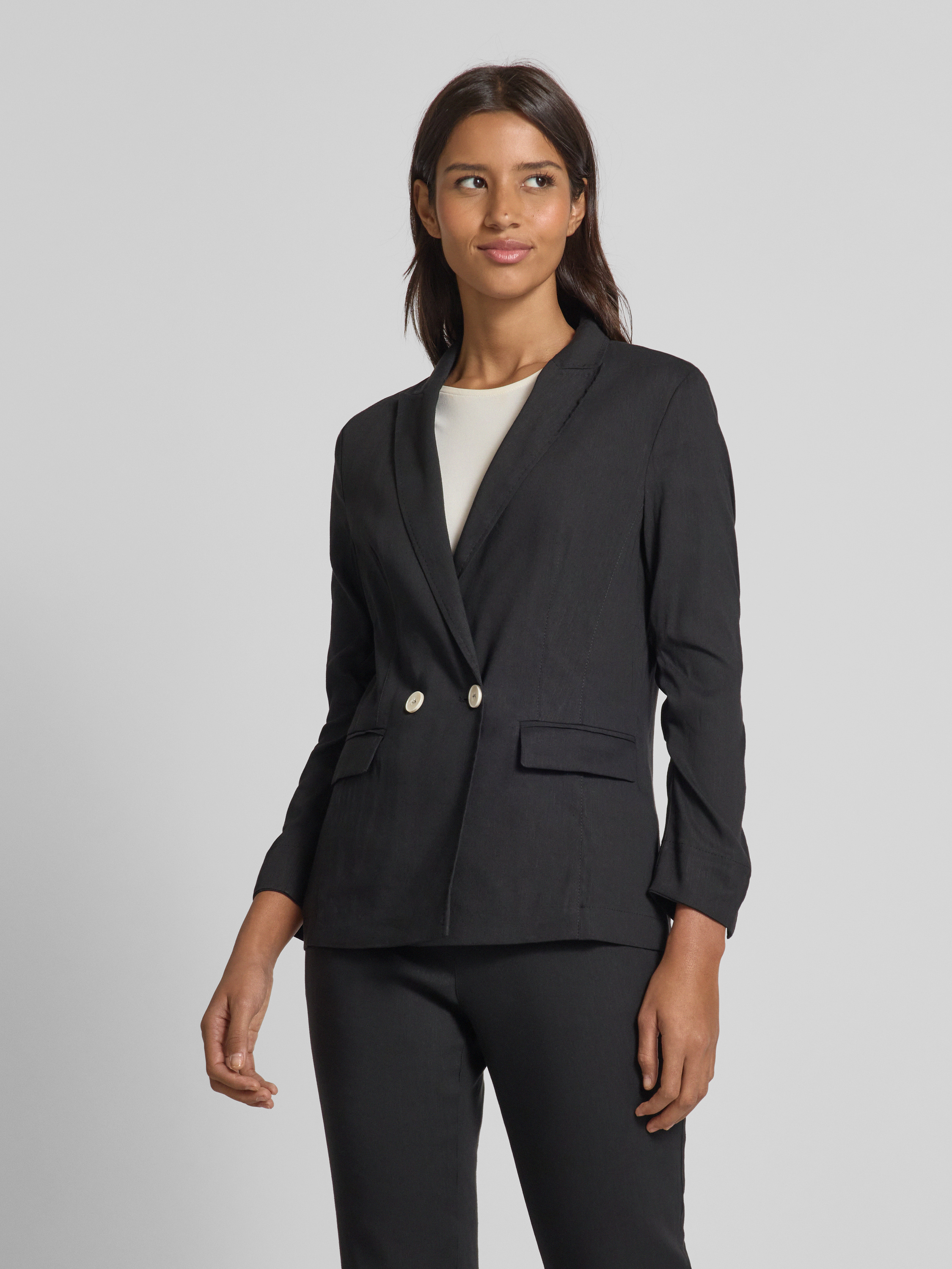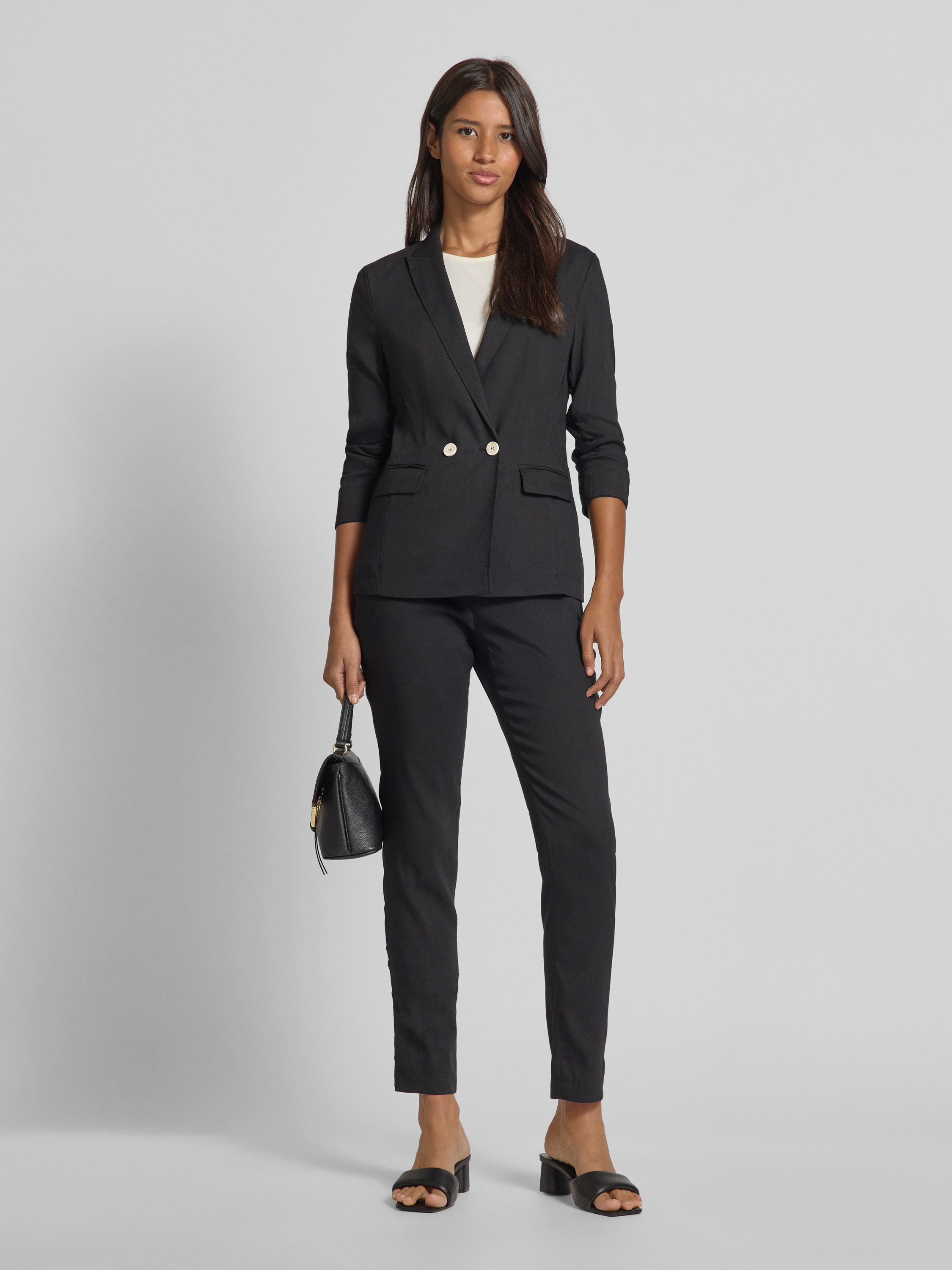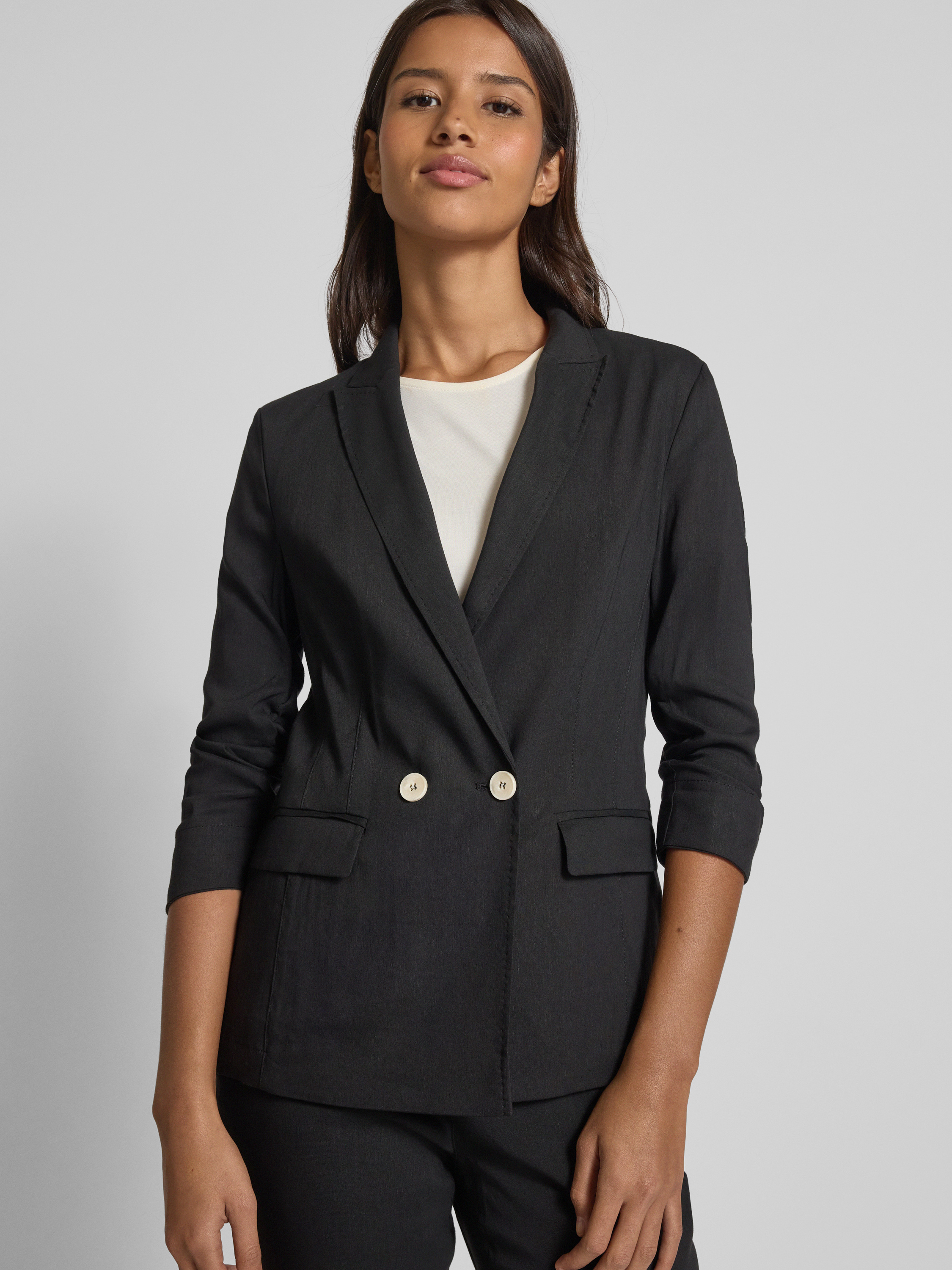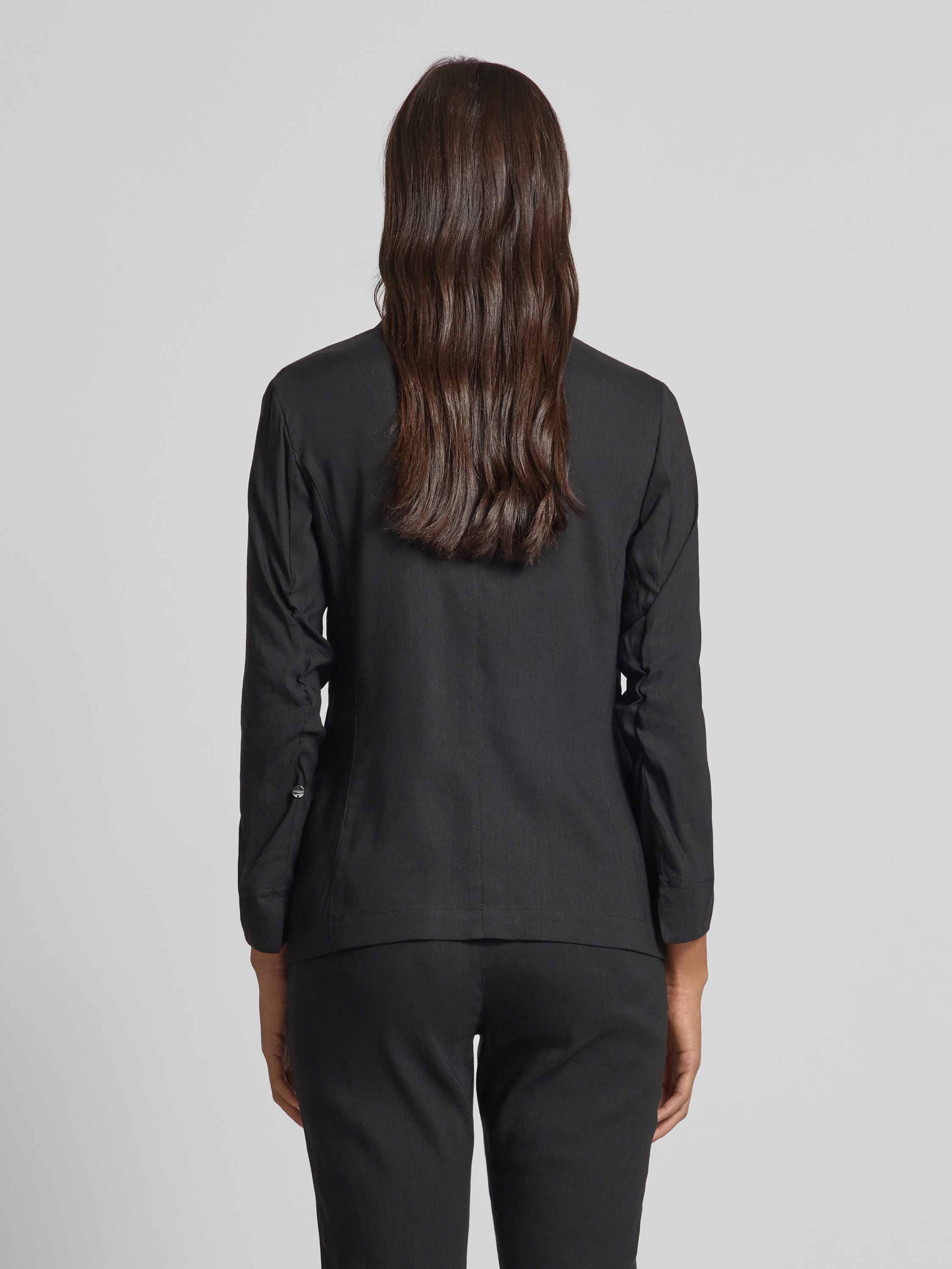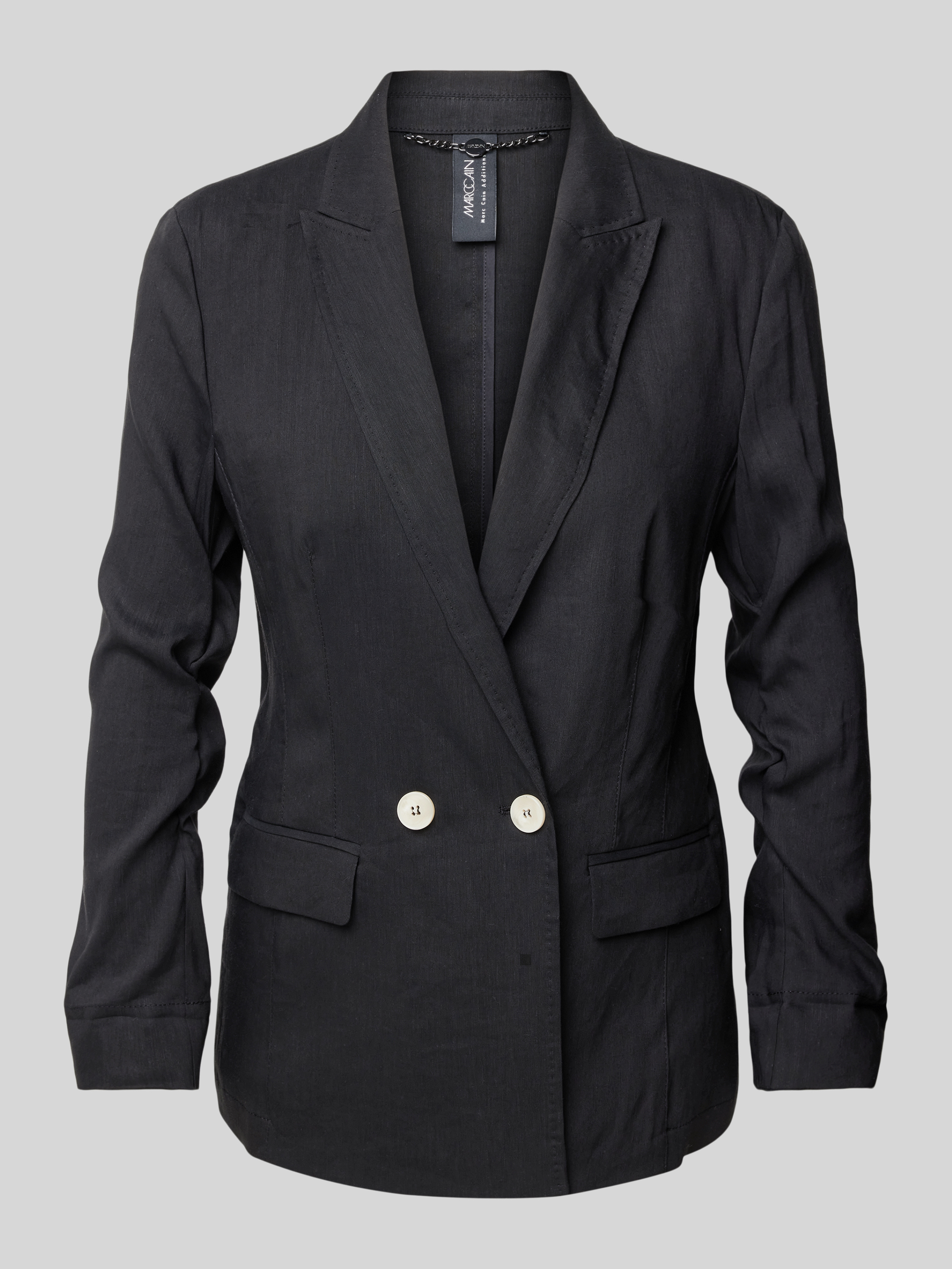 Der Leinenblazer von Marc Cain vereint einen leichten, taillierten Schnitt mit einem eleganten Reverskragen, wodurch er sich ideal für verschiedene Anlässe eignet. Durch den Leinen-Viskose-Mix mit Stretch-Anteil bleibt der Tragekomfort erhalten. Raffungen an den Ärmeln verleihen dem Design eine besondere Note.