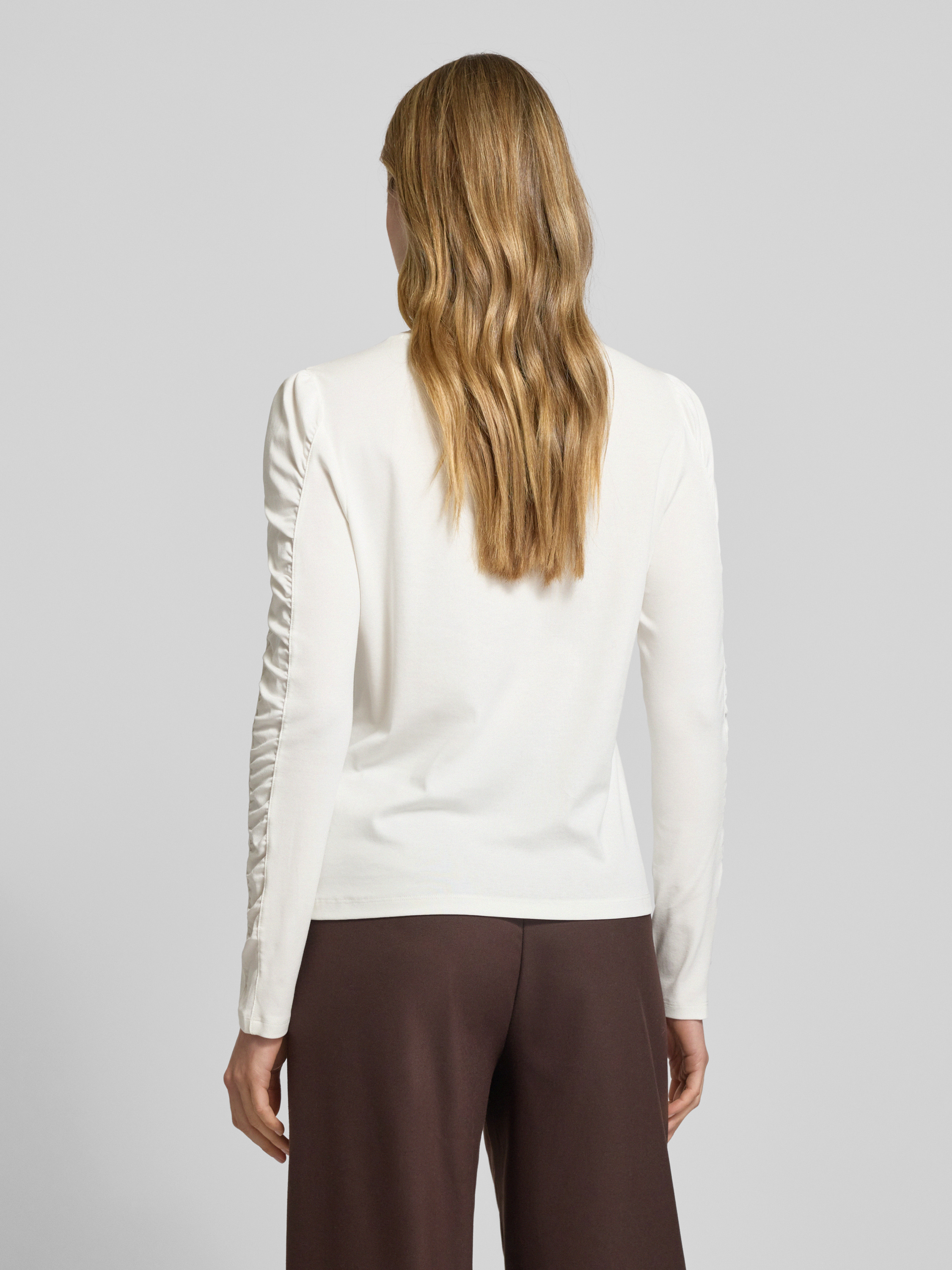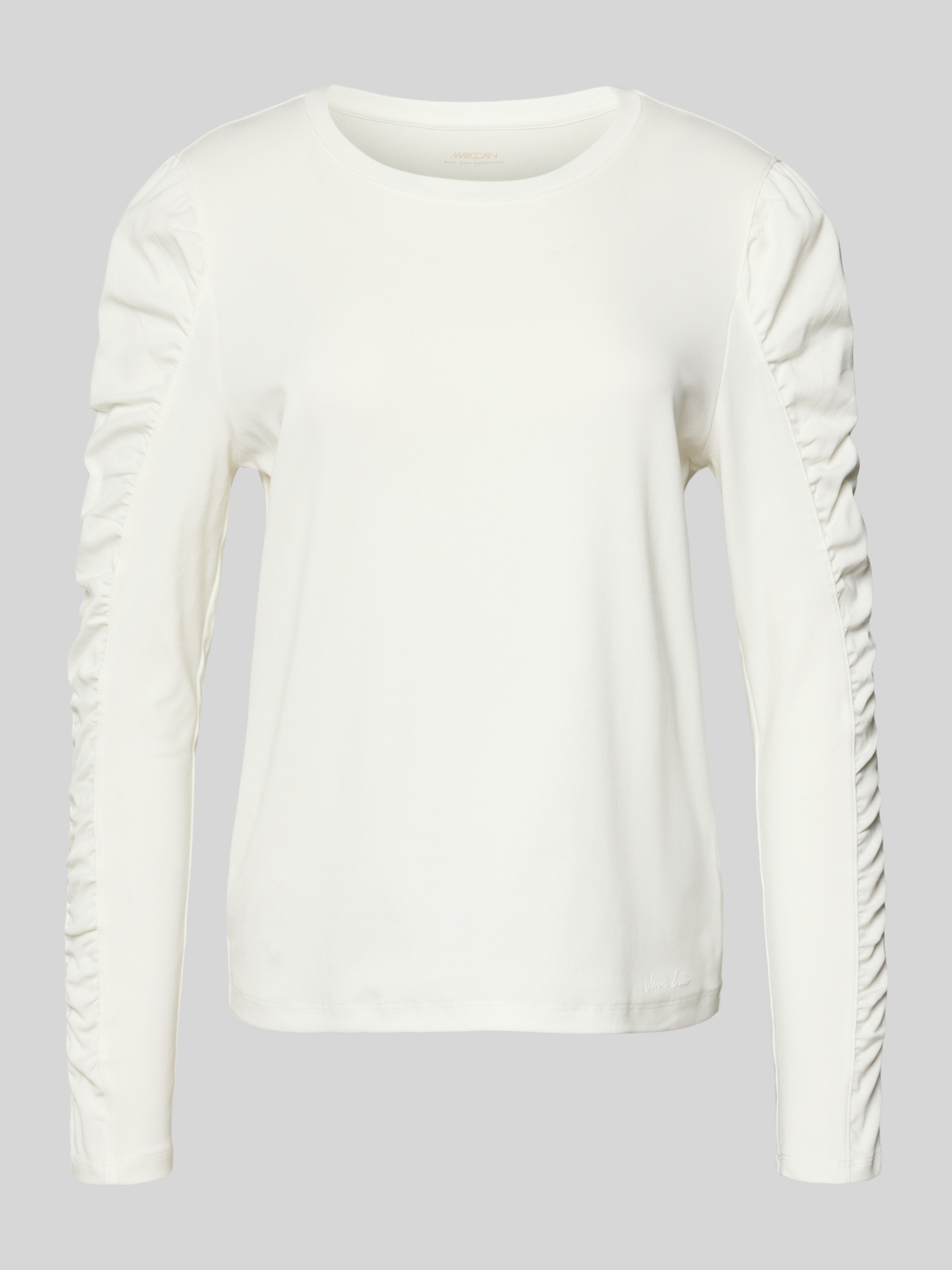 Marc CainLongsleeve mit Puffärmeln und Rundhalsausschnitt in weiss
