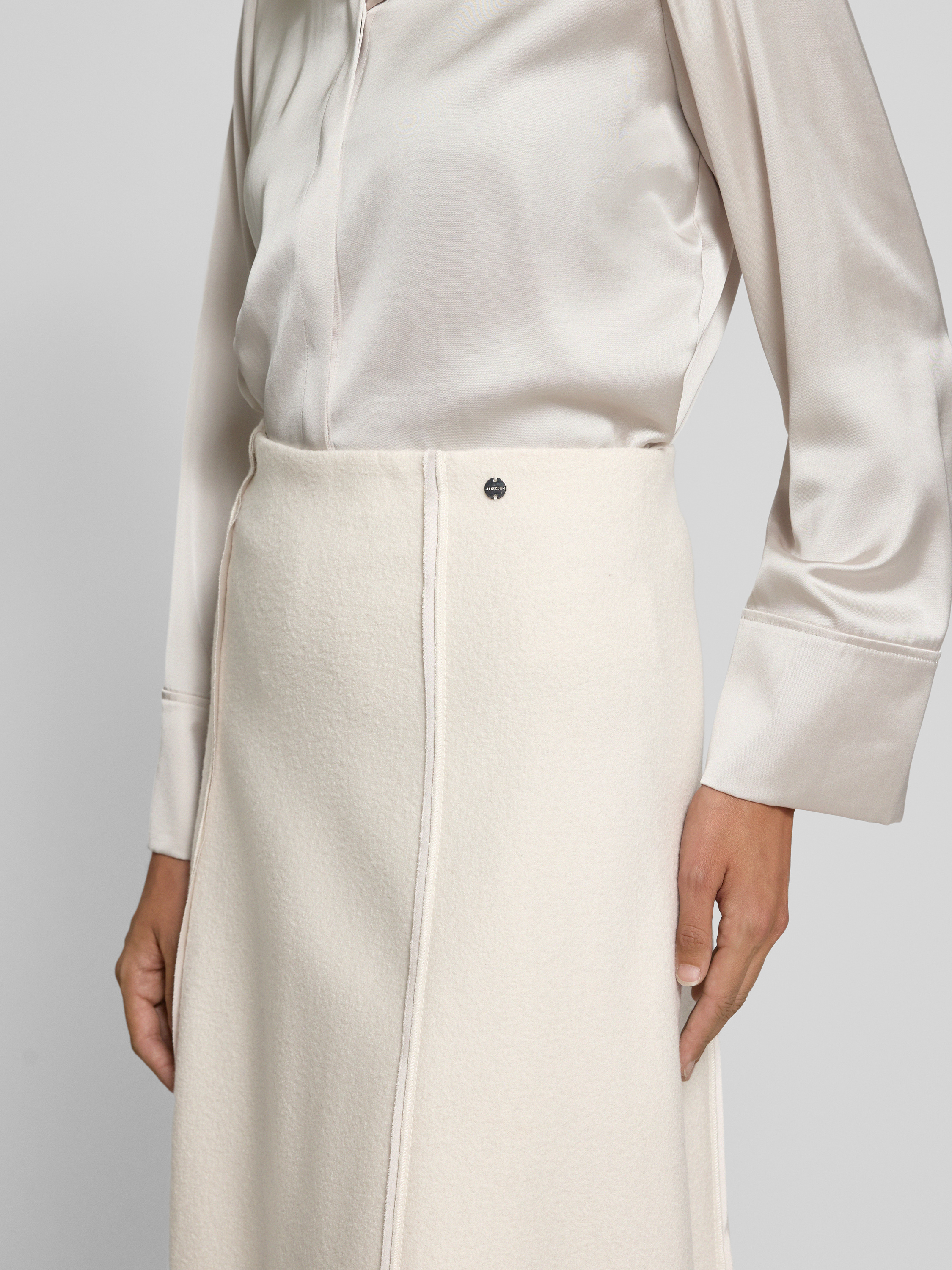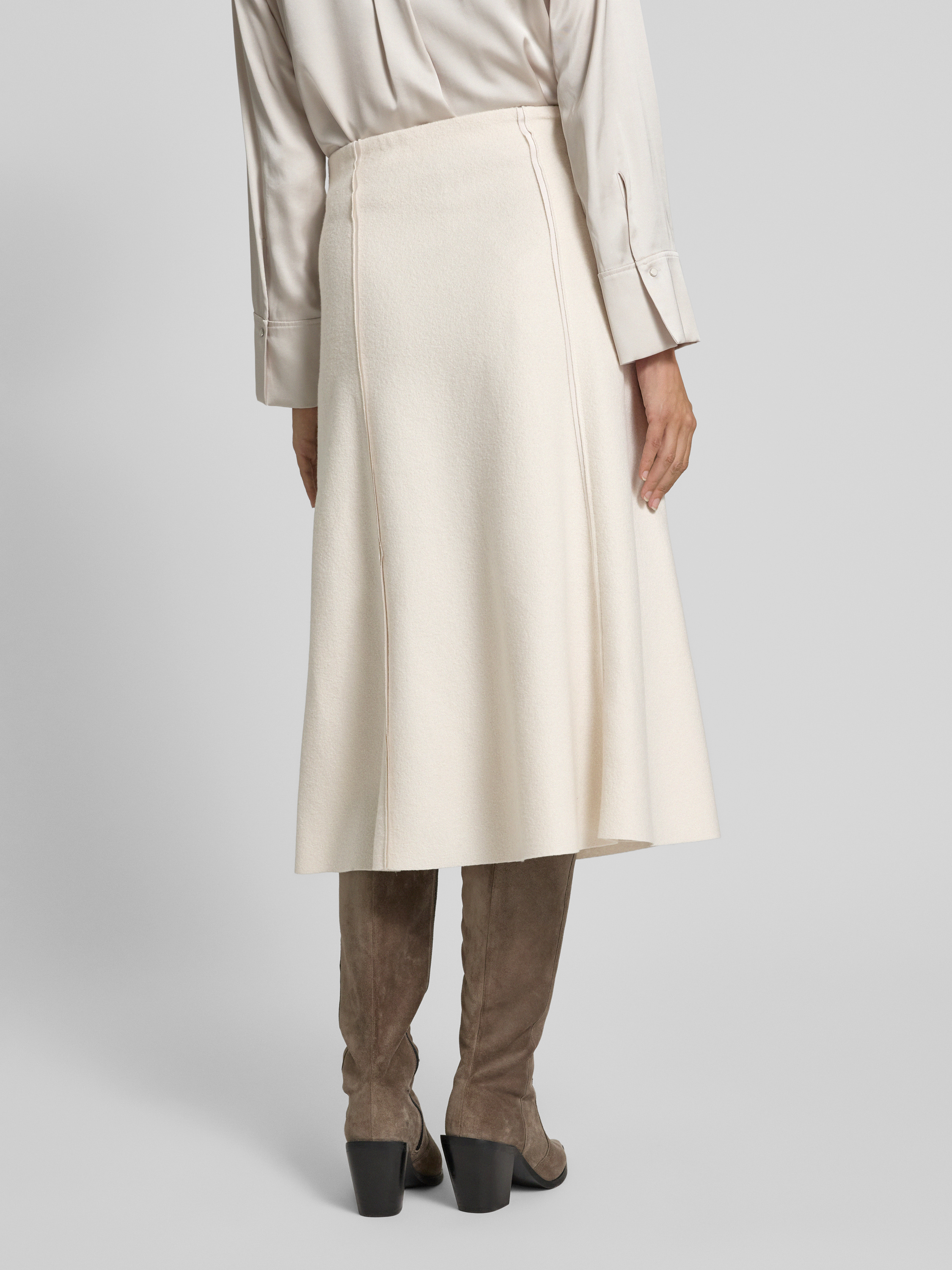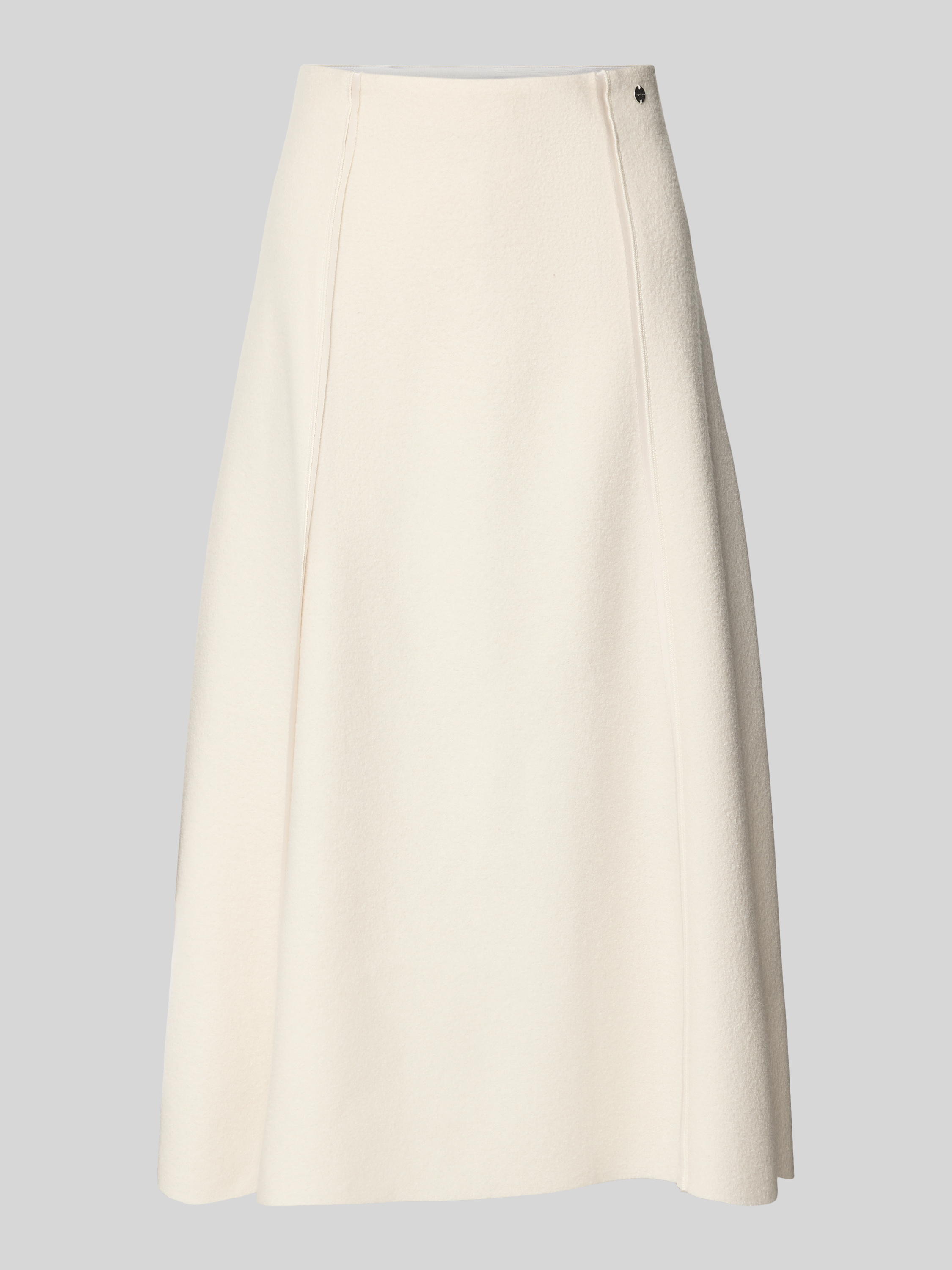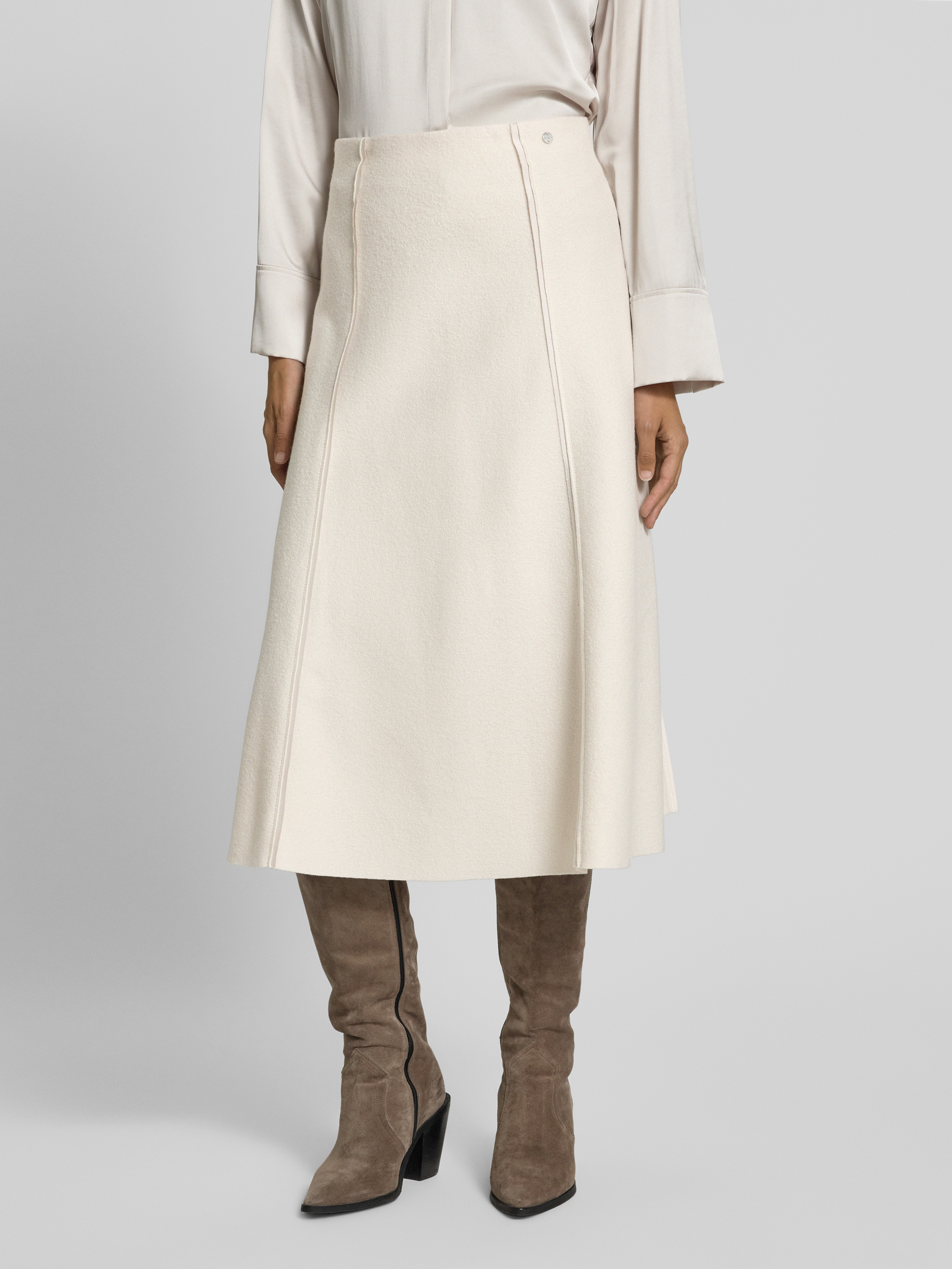 Der Damen Midirock von Marc Cain fällt in einer ausgestellten A-Linie sanft und sorgt durch reine Wolle für ein angenehmes Tragegefühl. Teilungsnähte verleihen dem Modell eine dezente Struktur, während der elastische Bund den Sitz unkompliziert gestaltet. So eignet sich der Rock für vielseitige Kombinationen.