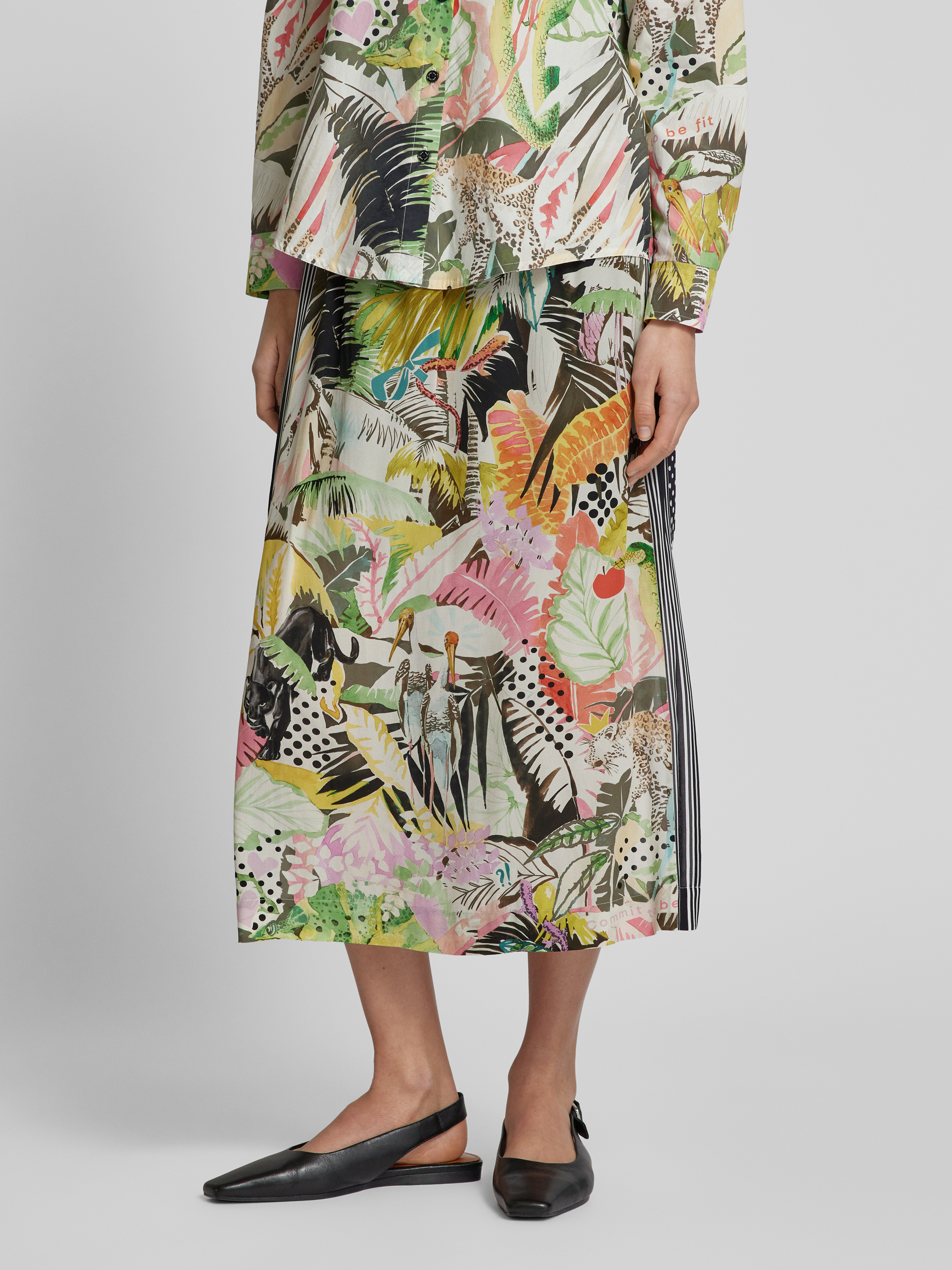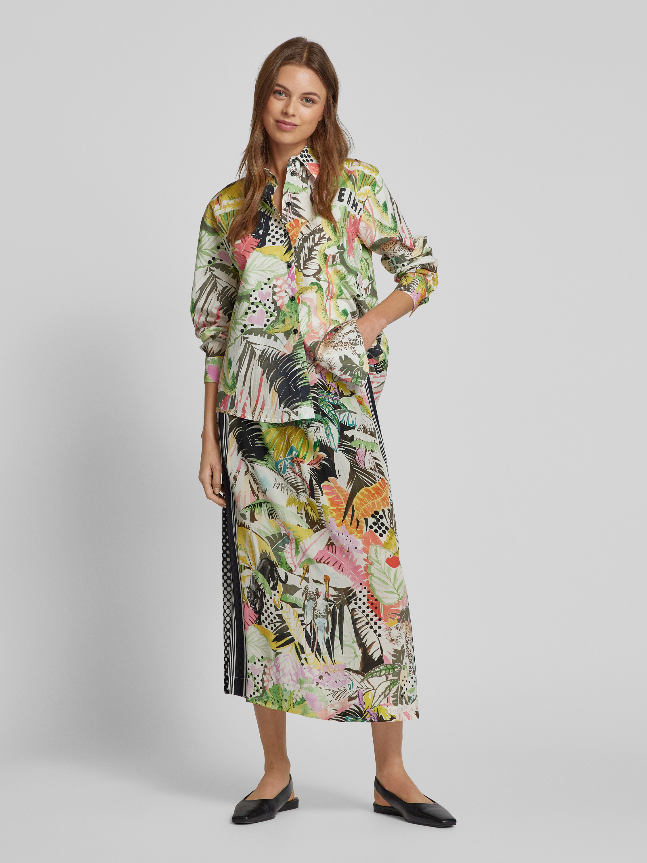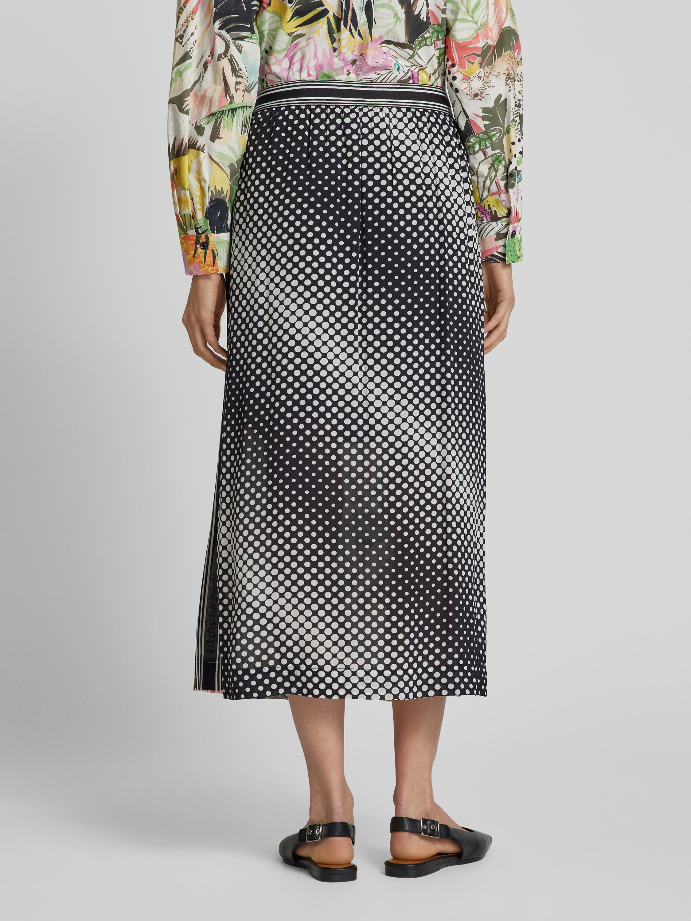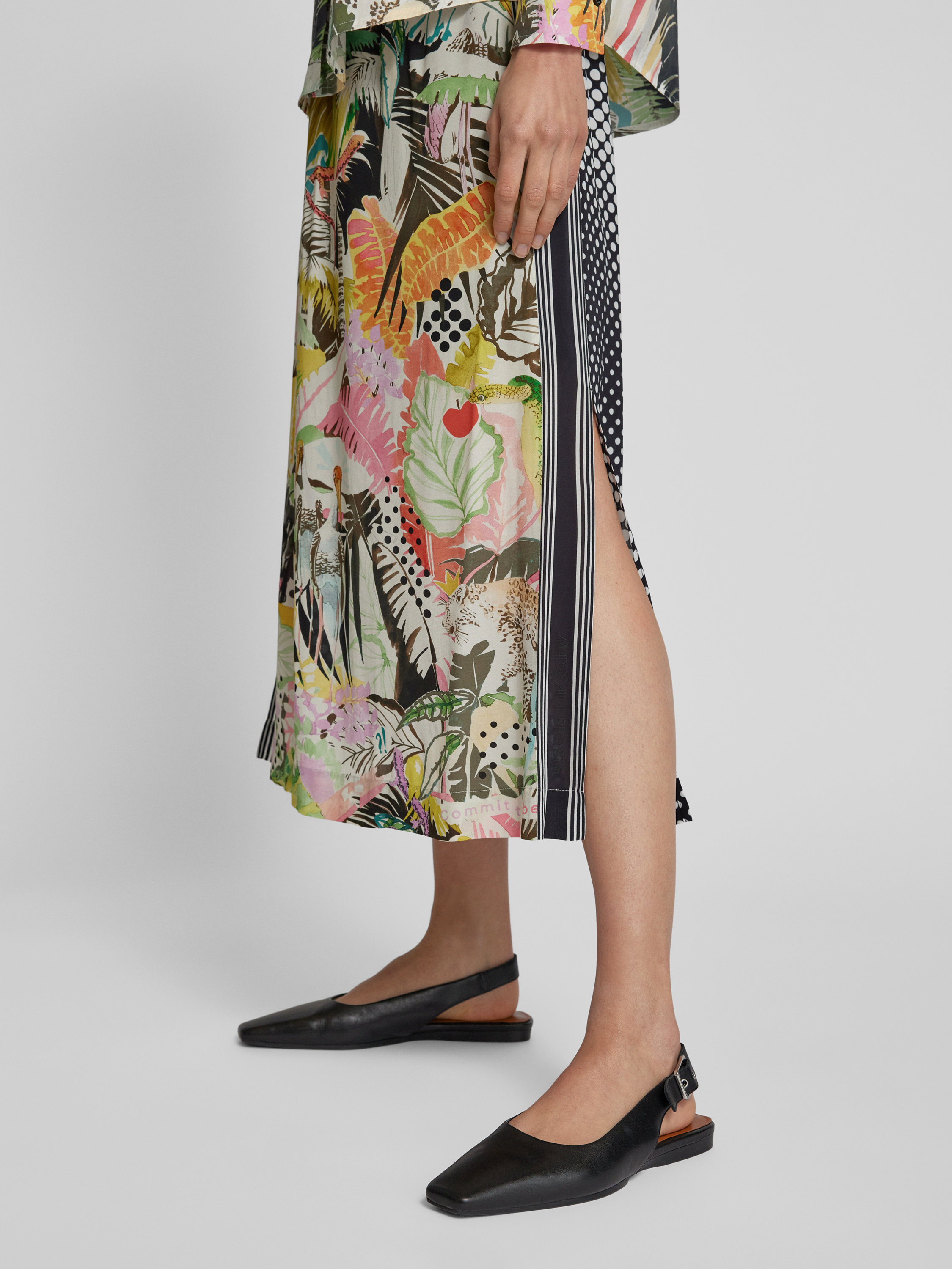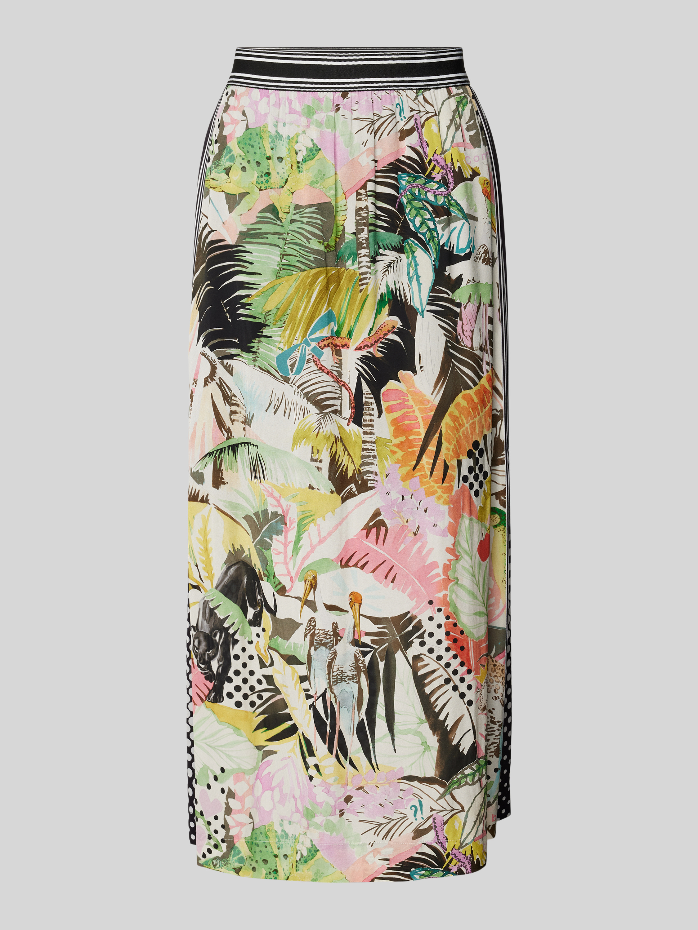 Der Midirock von Marc Cain vereint durch seinen Material-Mix mit Stretch-Anteil Komfort und Bewegungsfreiheit. Der gerade Schnitt und der elastische Bund sorgen für eine angenehme Passform, während der Gehschlitz subtile Eleganz hinzufügt. Ideal für vielseitige Anlässe geeignet.