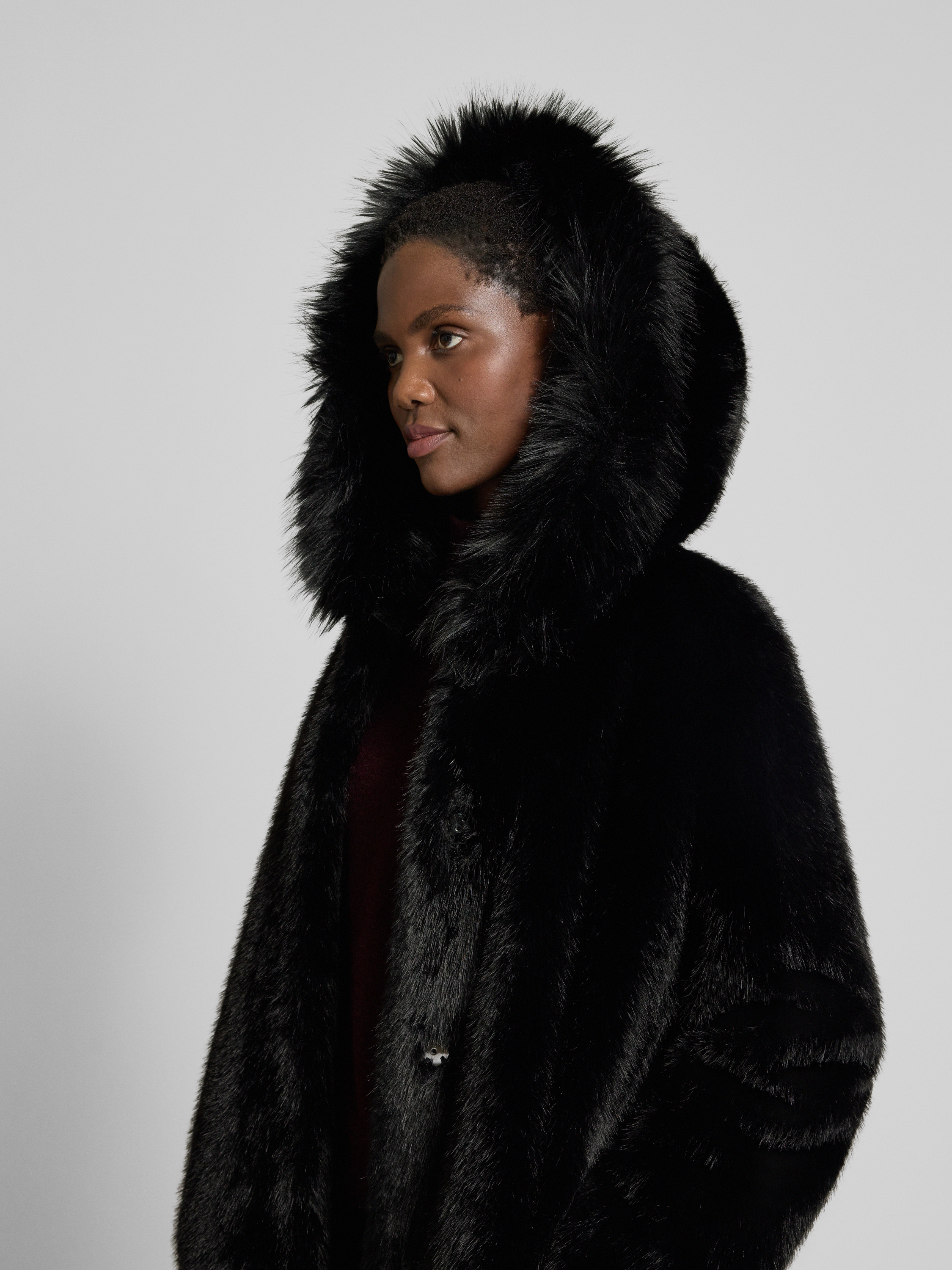 • Marc Cain Regular Fit Mantel aus Kunstfell Black