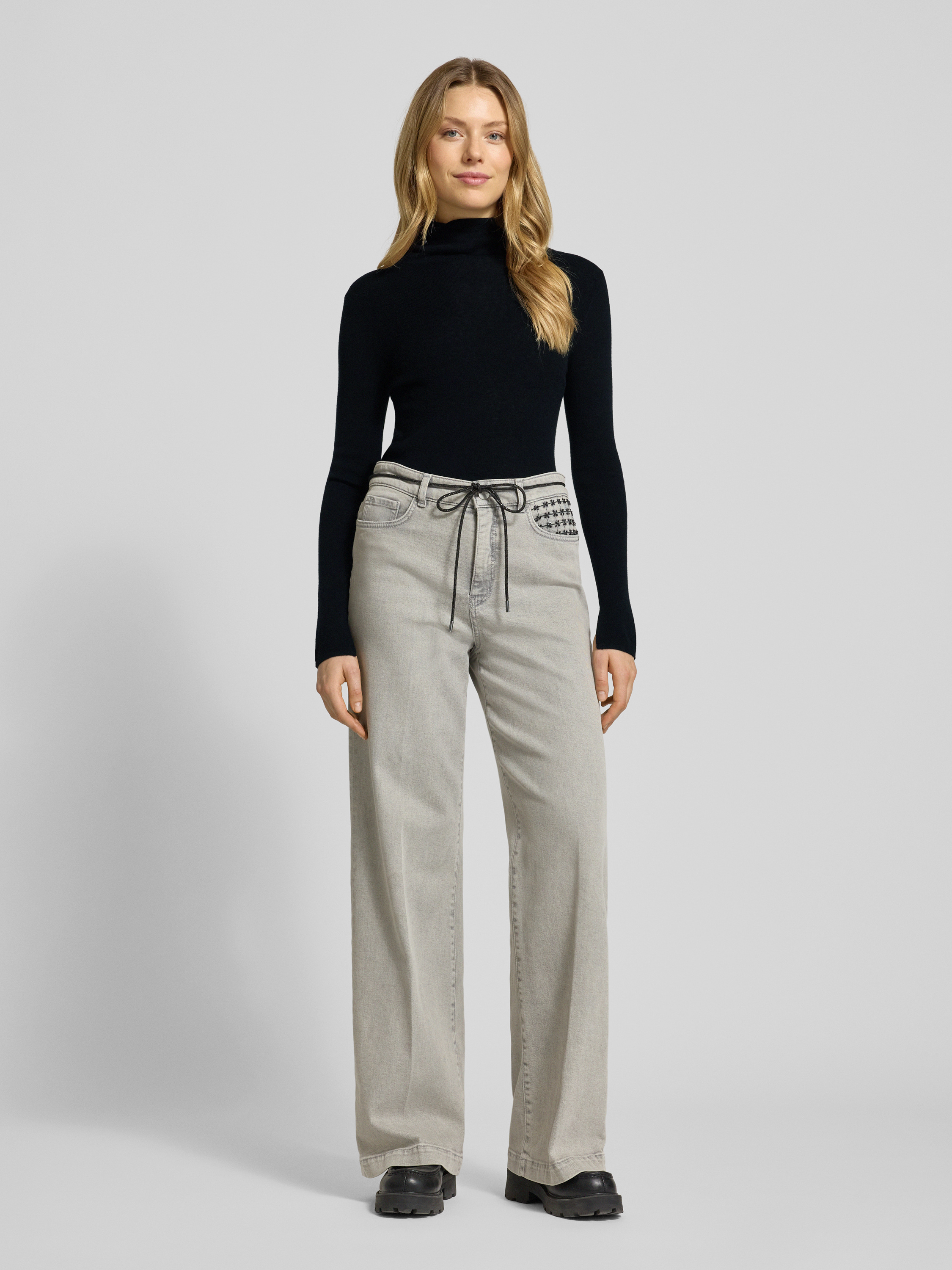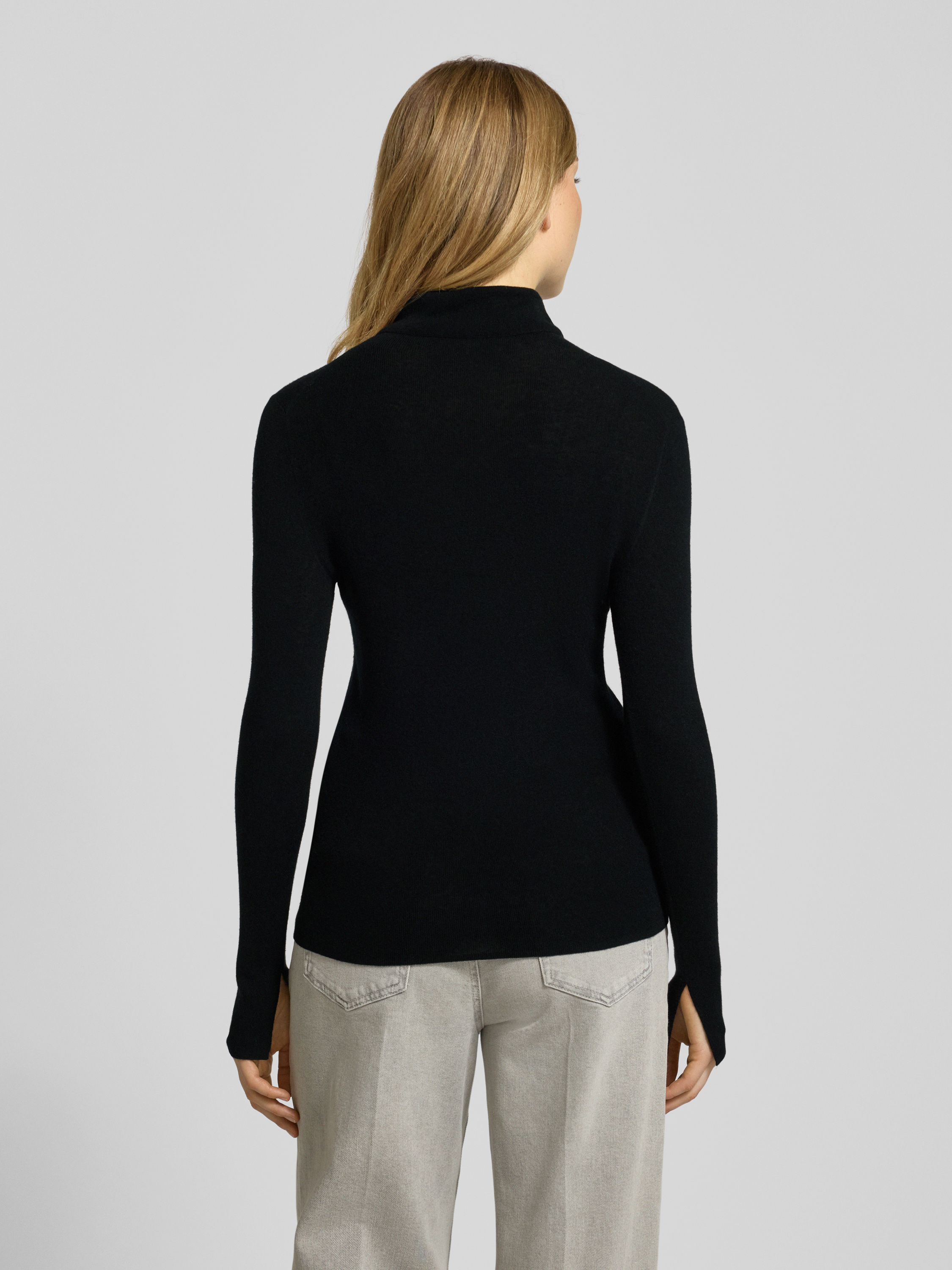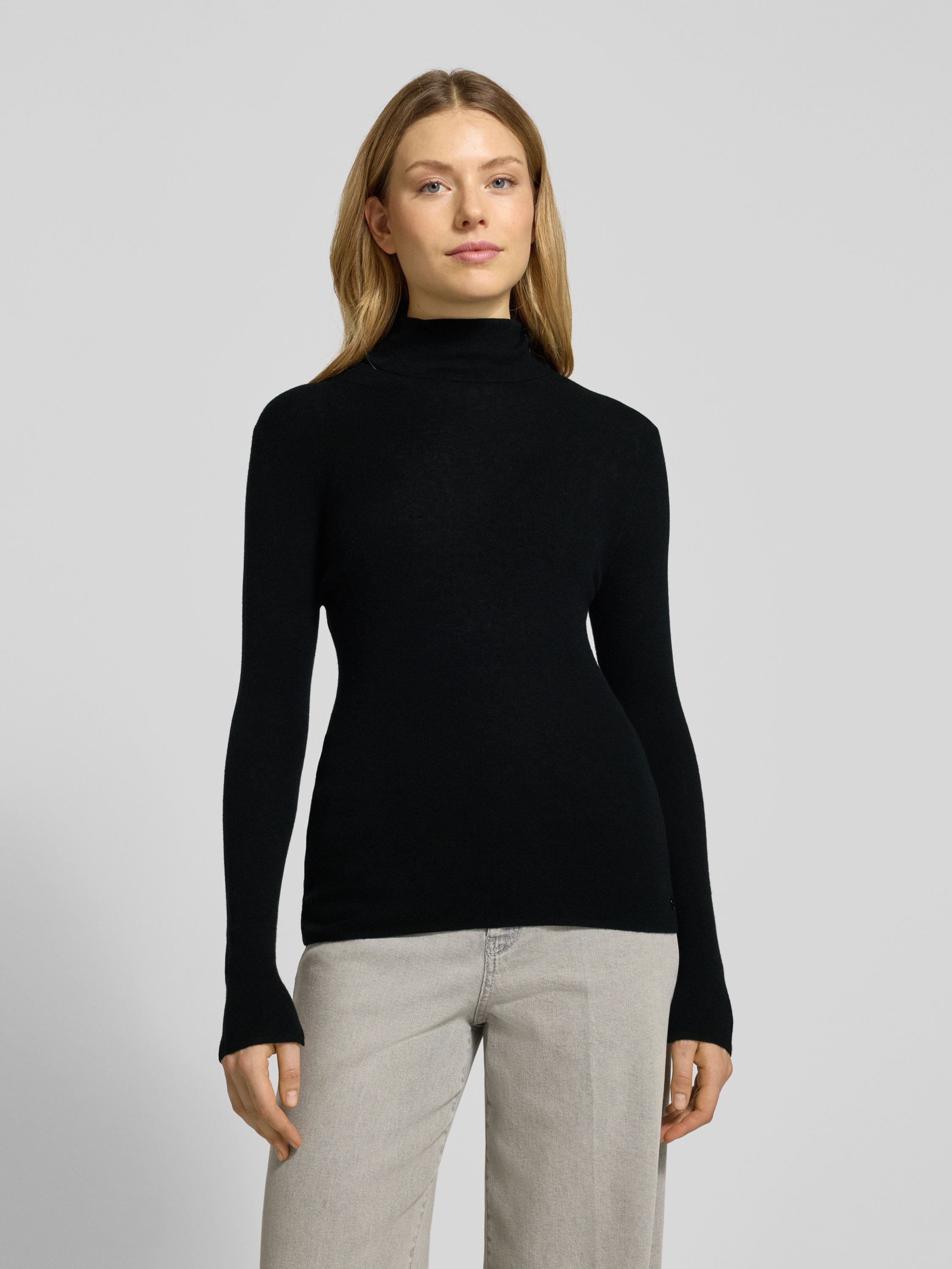 Der Damen Rollkragenpullover von Marc Cain kombiniert einen Schurwoll-Mix mit feinem Kaschmir-Anteil und liegt angenehm weich auf der Haut. Durch den schmalen Slim Fit schmiegt sich das Modell an, ohne einzuengen, und sorgt so für Bewegungsfreiheit im Alltag. Die hochwertige Materialzusammensetzung hält angenehm warm und eignet sich besonders für kühlere Tage.