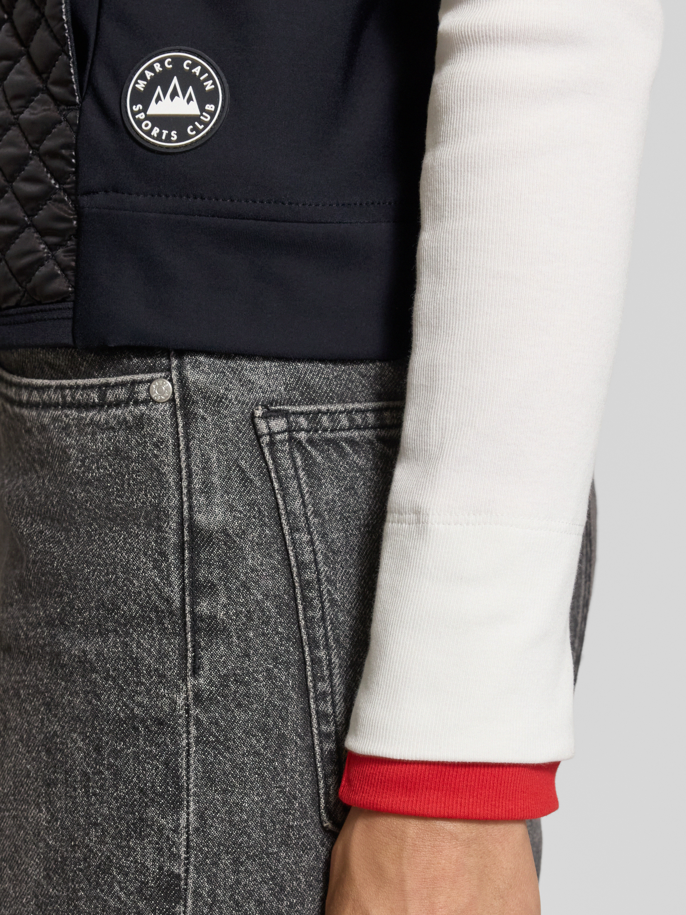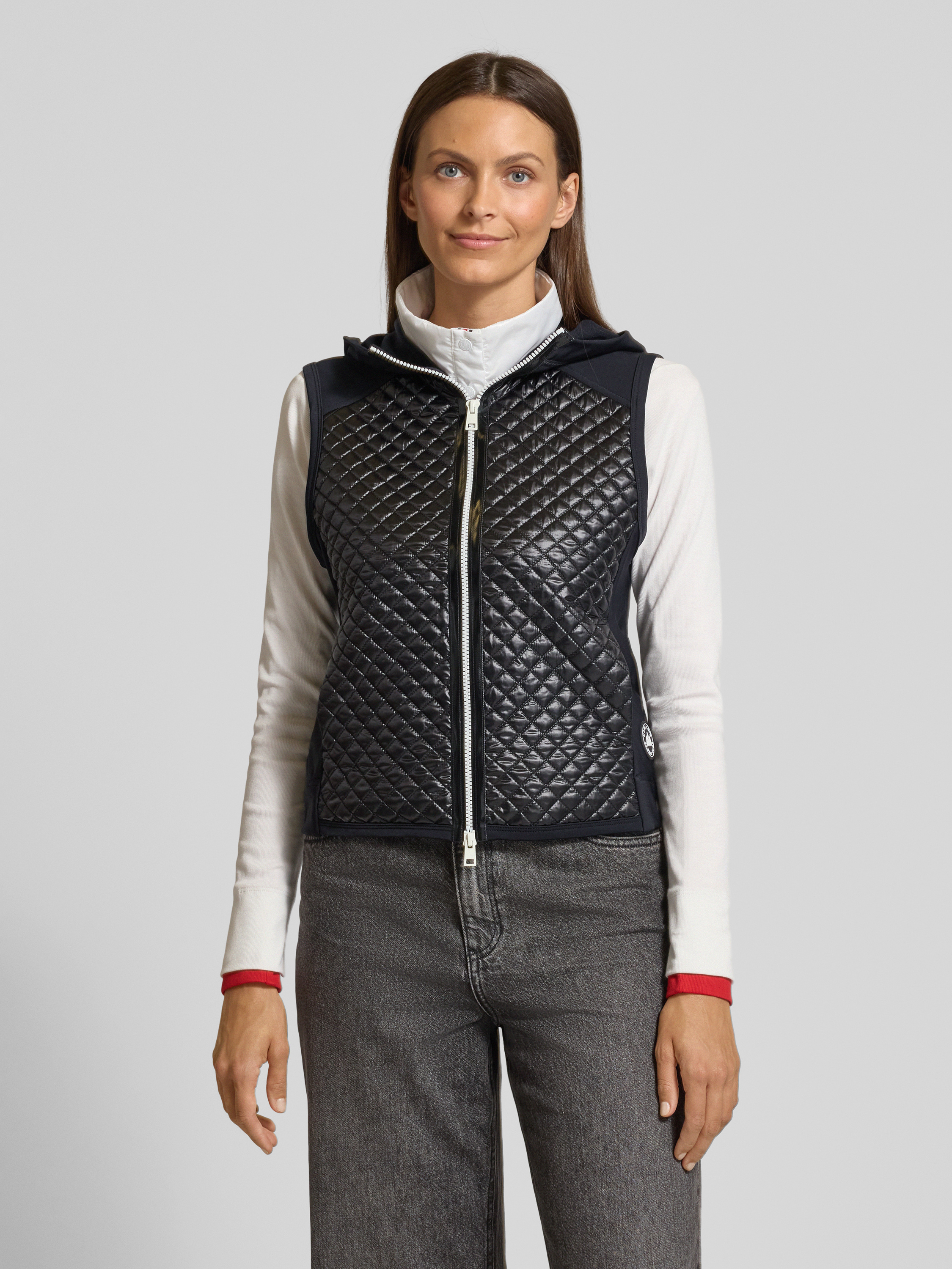 Die Damen Steppweste von Marc Cain kombiniert durchdachten Elastischer-Material-Mix mit einer angenehm geraden Passform. Durch die leichte Kapuze und die markanten Steppnähte bleibt man flexibel und fühlt sich bei wechselhaftem Wetter gut geschützt. So eignet sich die Steppweste für vielseitige Aktivitäten im Alltag.