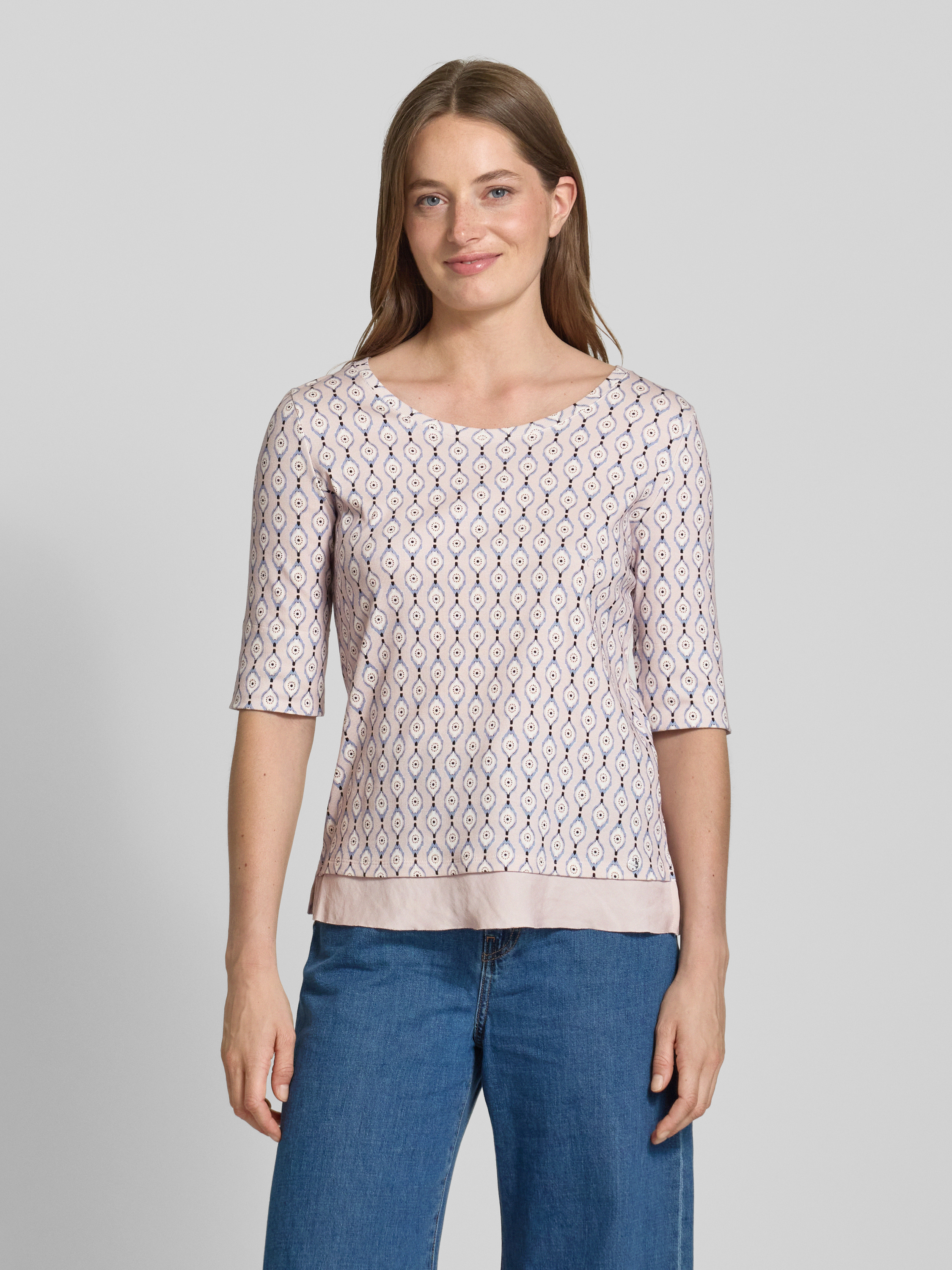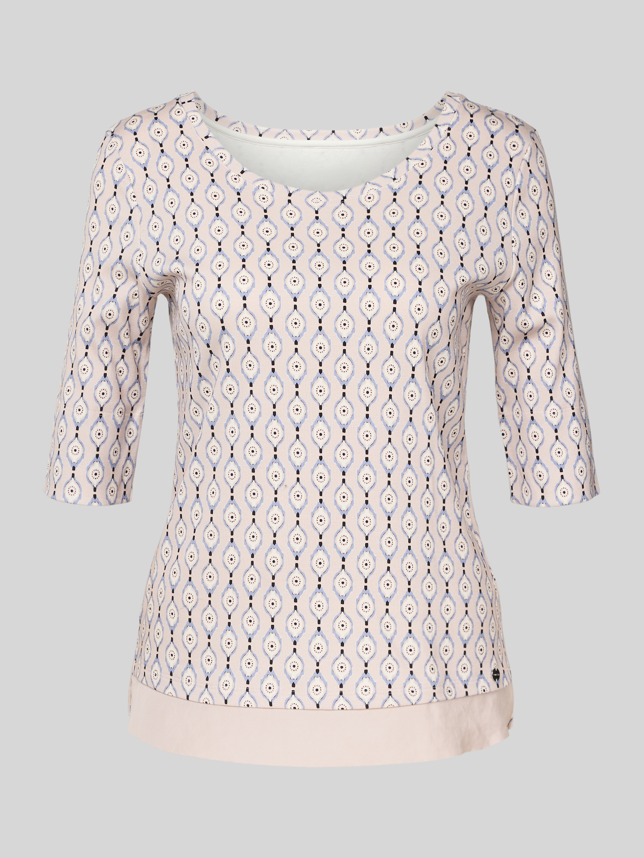 Das Marc Cain T-Shirt mit 1/2-Ärmel kombiniert einen Baumwoll-Elasthan-Mix mit einem gerippten Rundhalsausschnitt, was für einen angenehmen Tragekomfort sorgt. Der Regular Fit passt sich harmonisch an, während das dezente Label-Detail einen subtilen Akzent setzt. Ideal für vielseitige Alltagslooks.