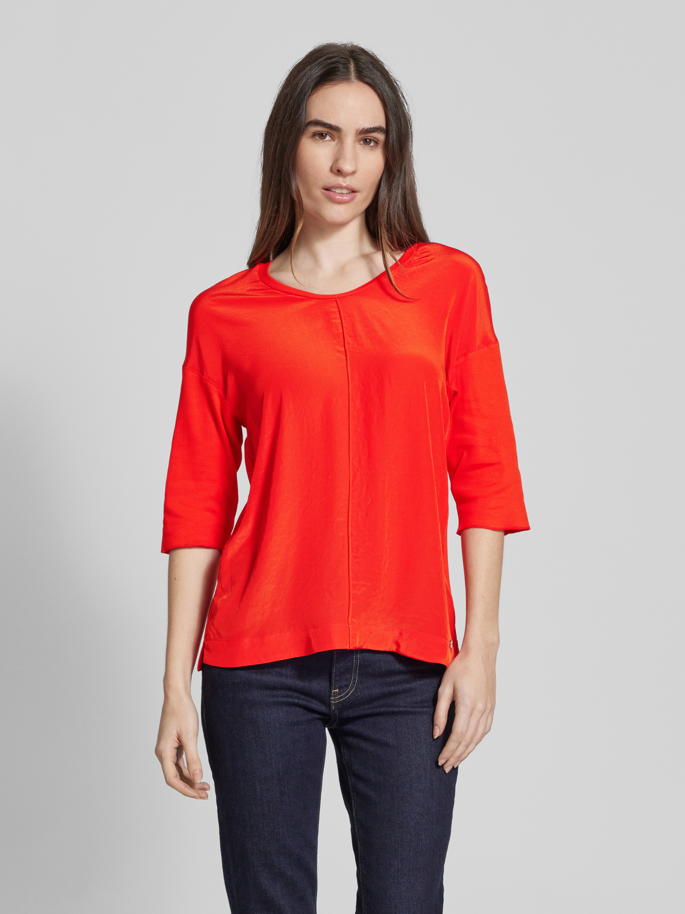Marc CainT-Shirt mit Label-Applikation in rot