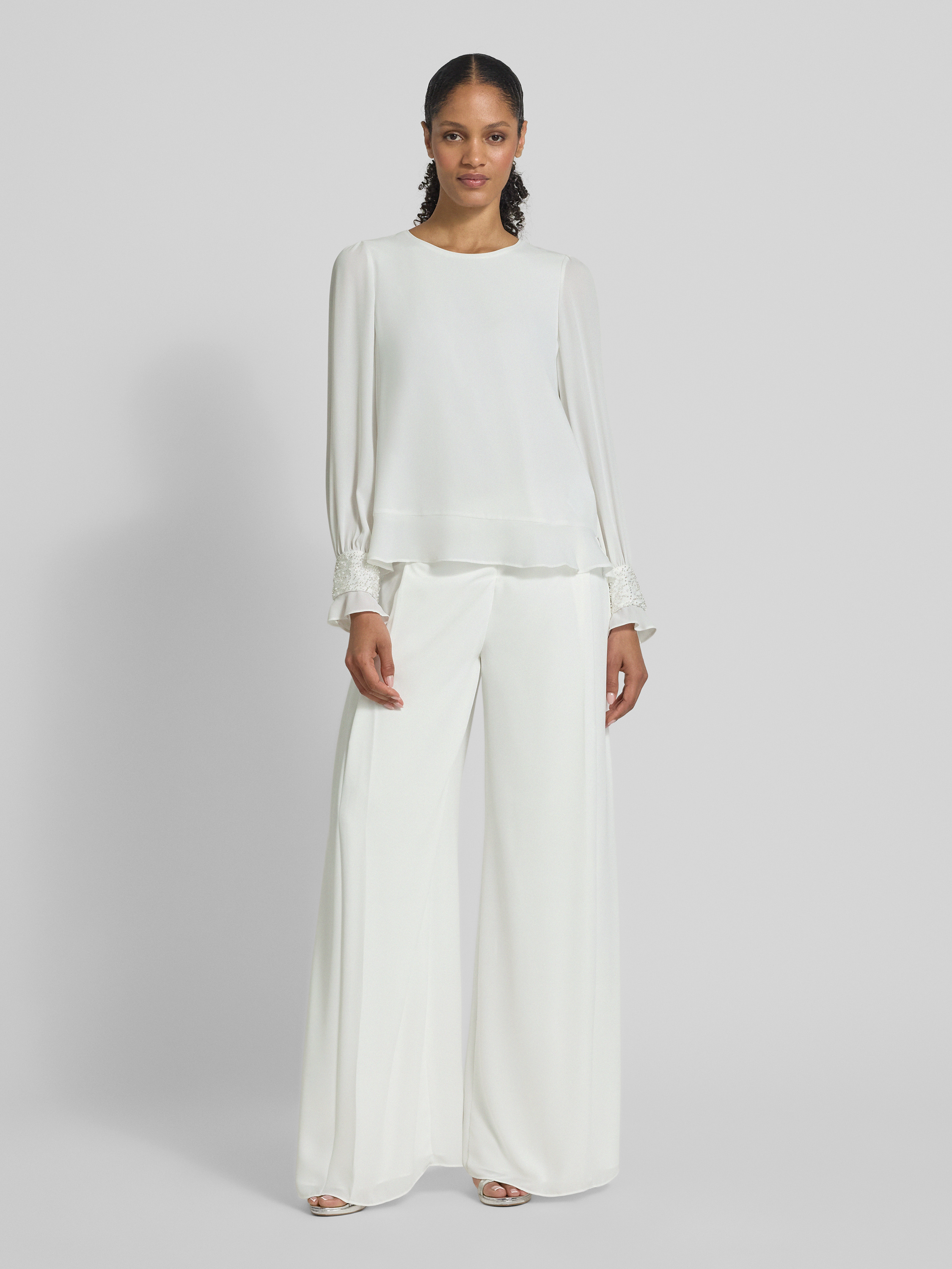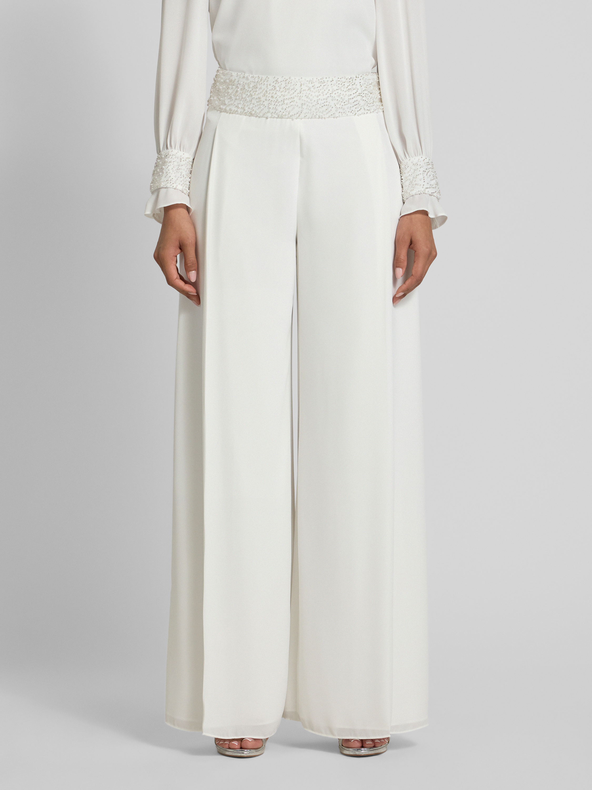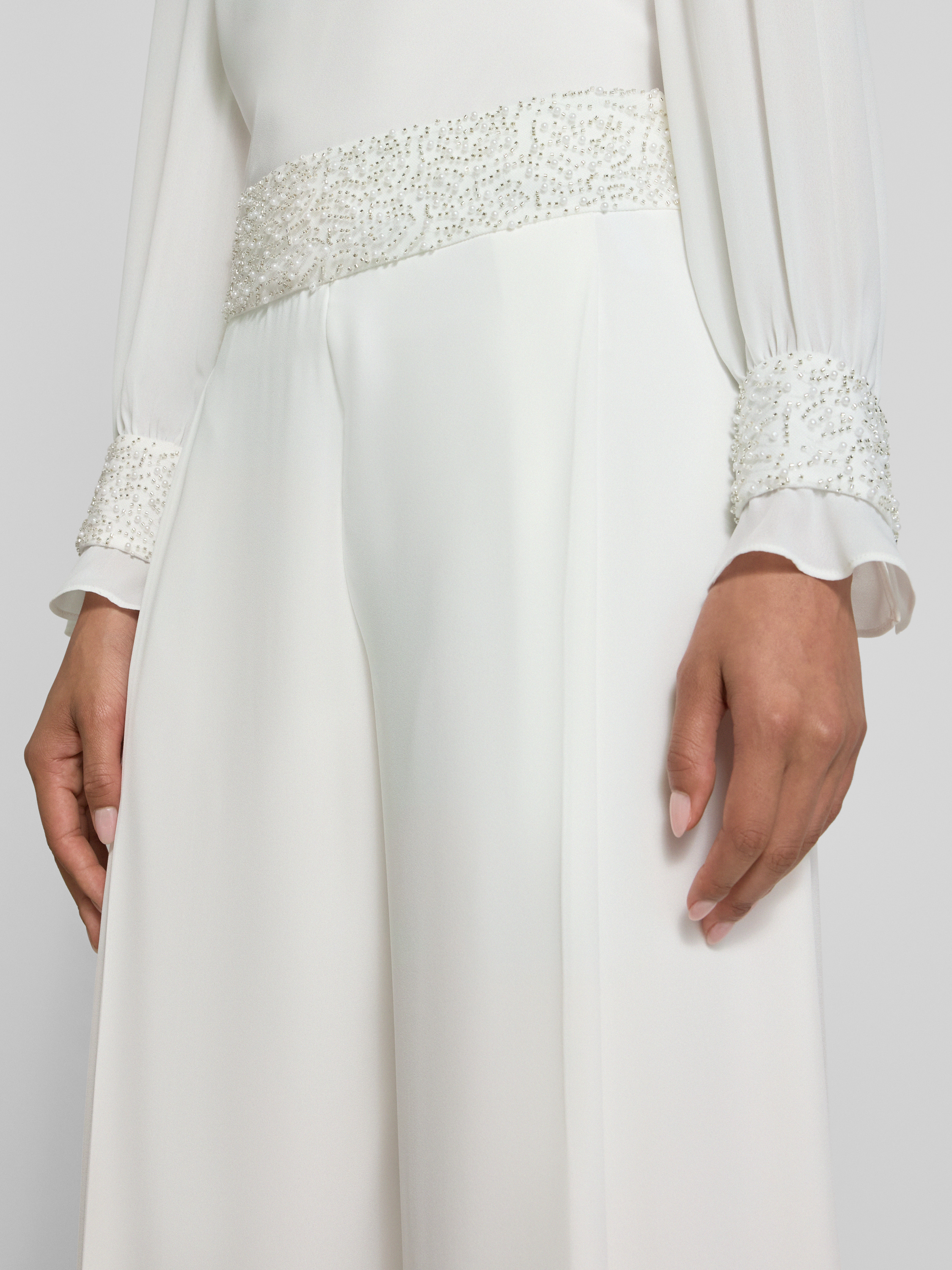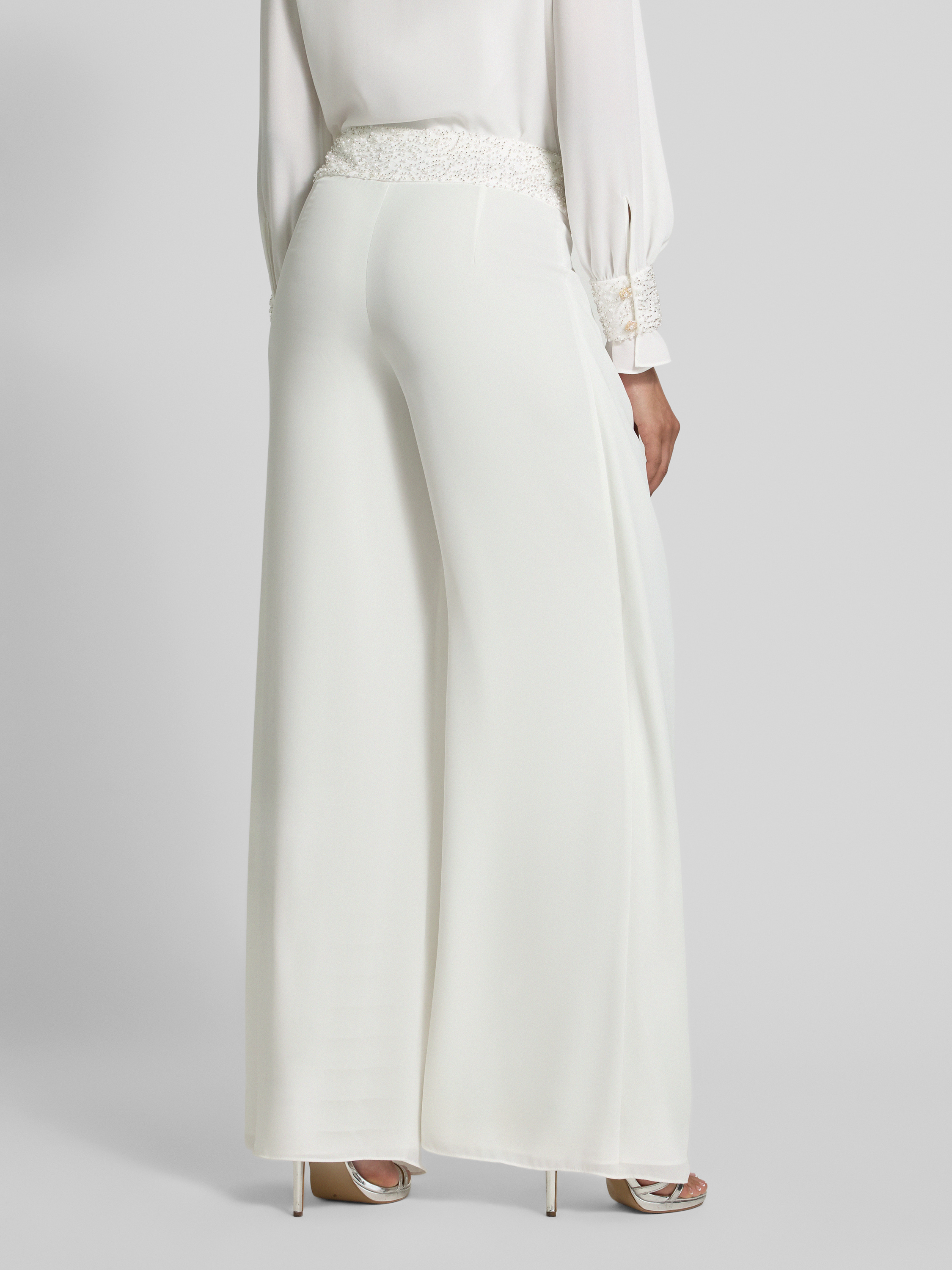 Marc CainWide Fit Hose mit Perlen und seitlichem Reißverschluss in weiss