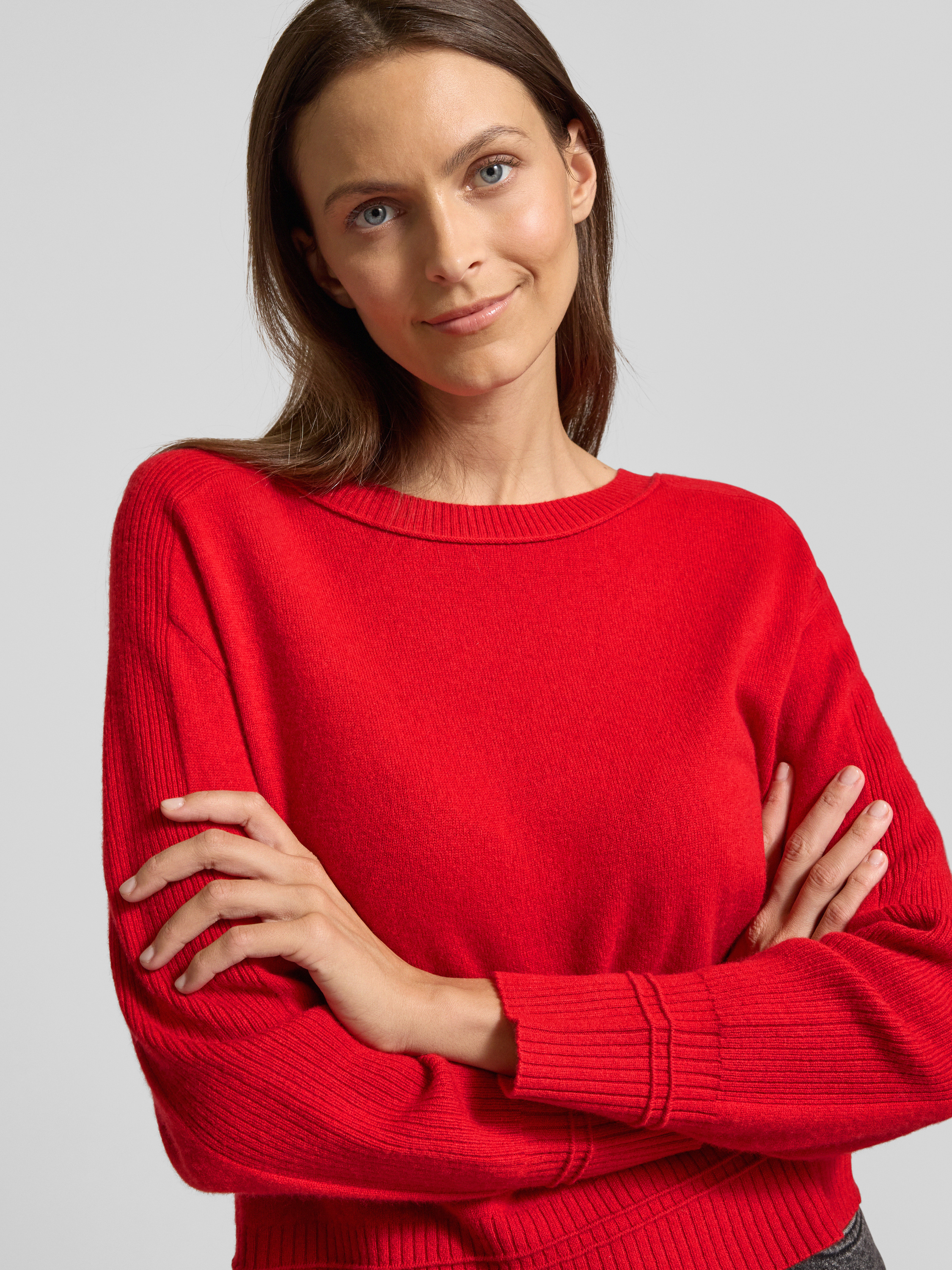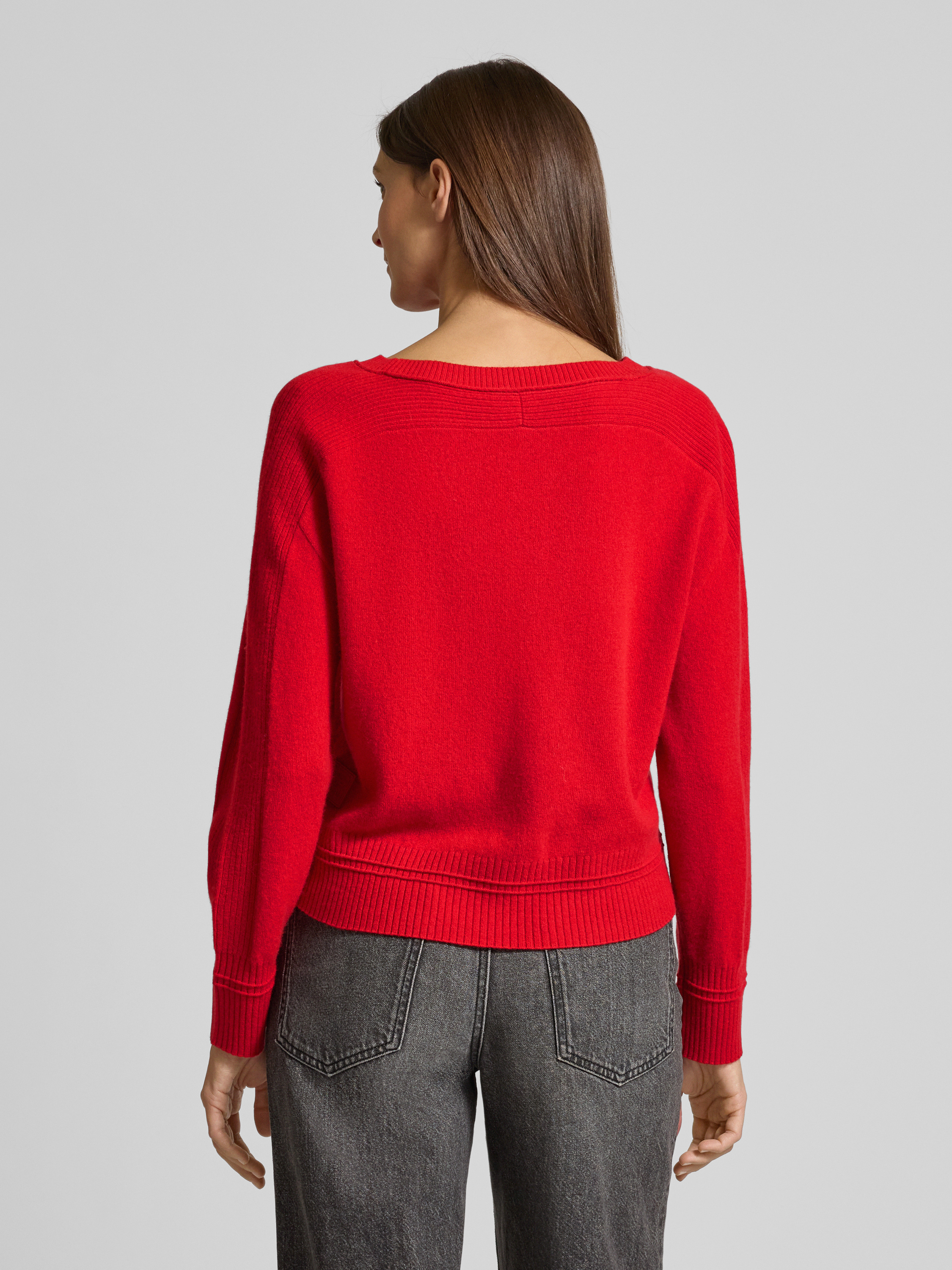 Marc CainWollpullover aus Schurwoll-Kaschmir-Mix mit U-Boot-Ausschnitt in rot
