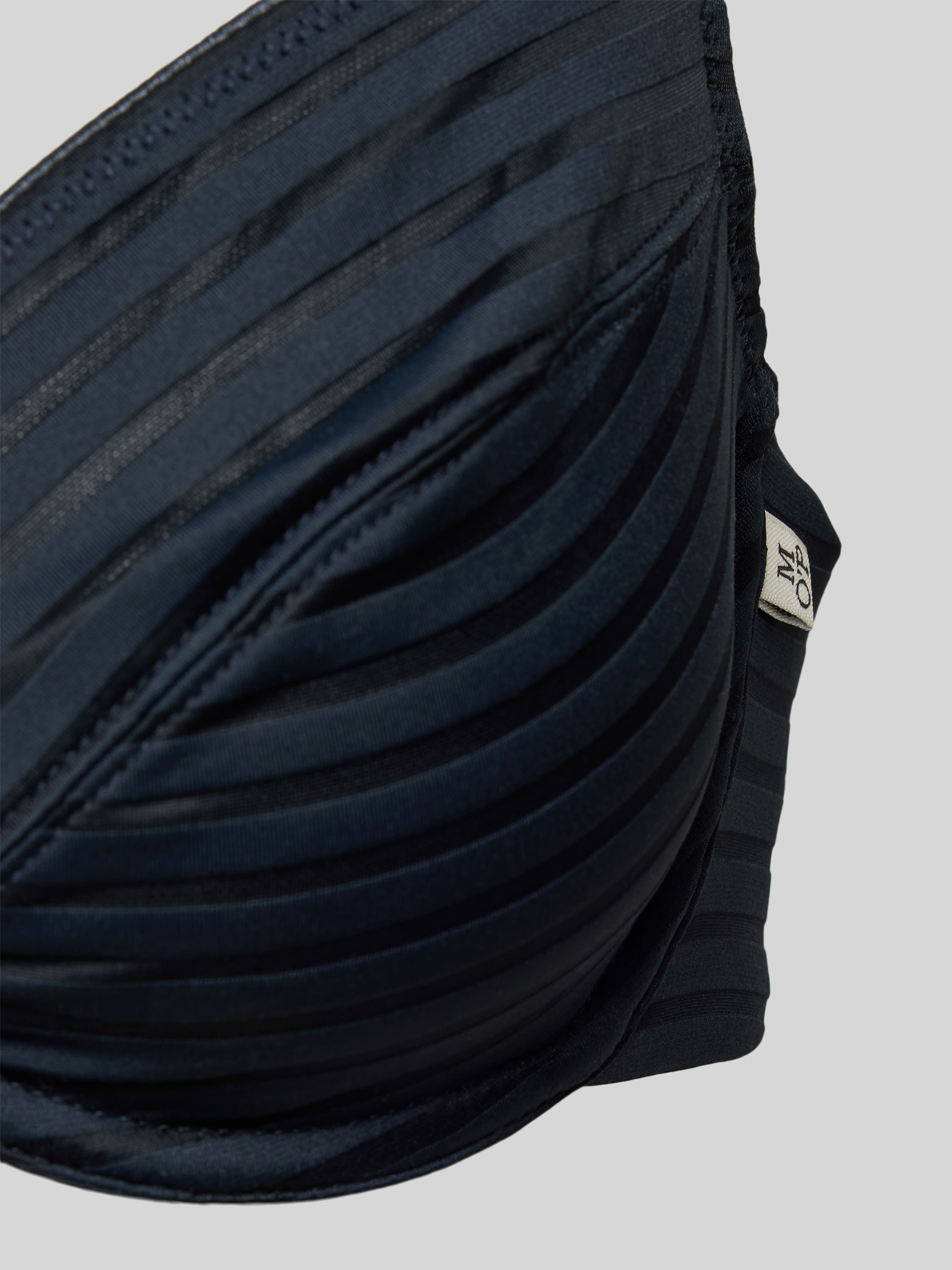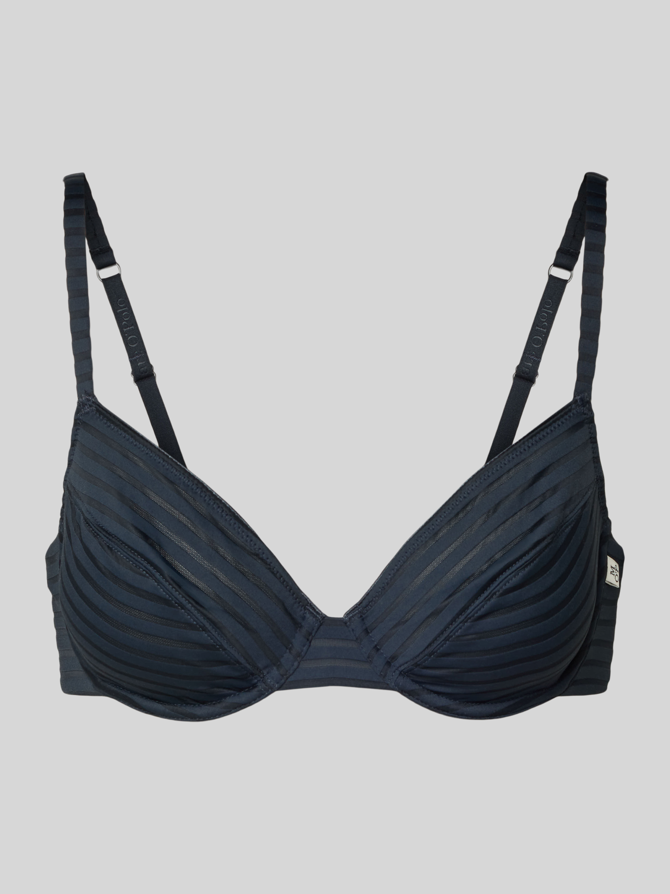 Der Damen-BH von Marc O'Polo kombiniert ein zurückhaltendes Streifenmuster mit semitransparentem Mesh und schafft dadurch eine dezente Leichtigkeit. Durch die unwattierten Cups und den integrierten Bügel entsteht eine natürliche Formgebung, die angenehm unterstützt. So eignet sich das Modell für jeden Tag und bietet zugleich eine moderne Optik.