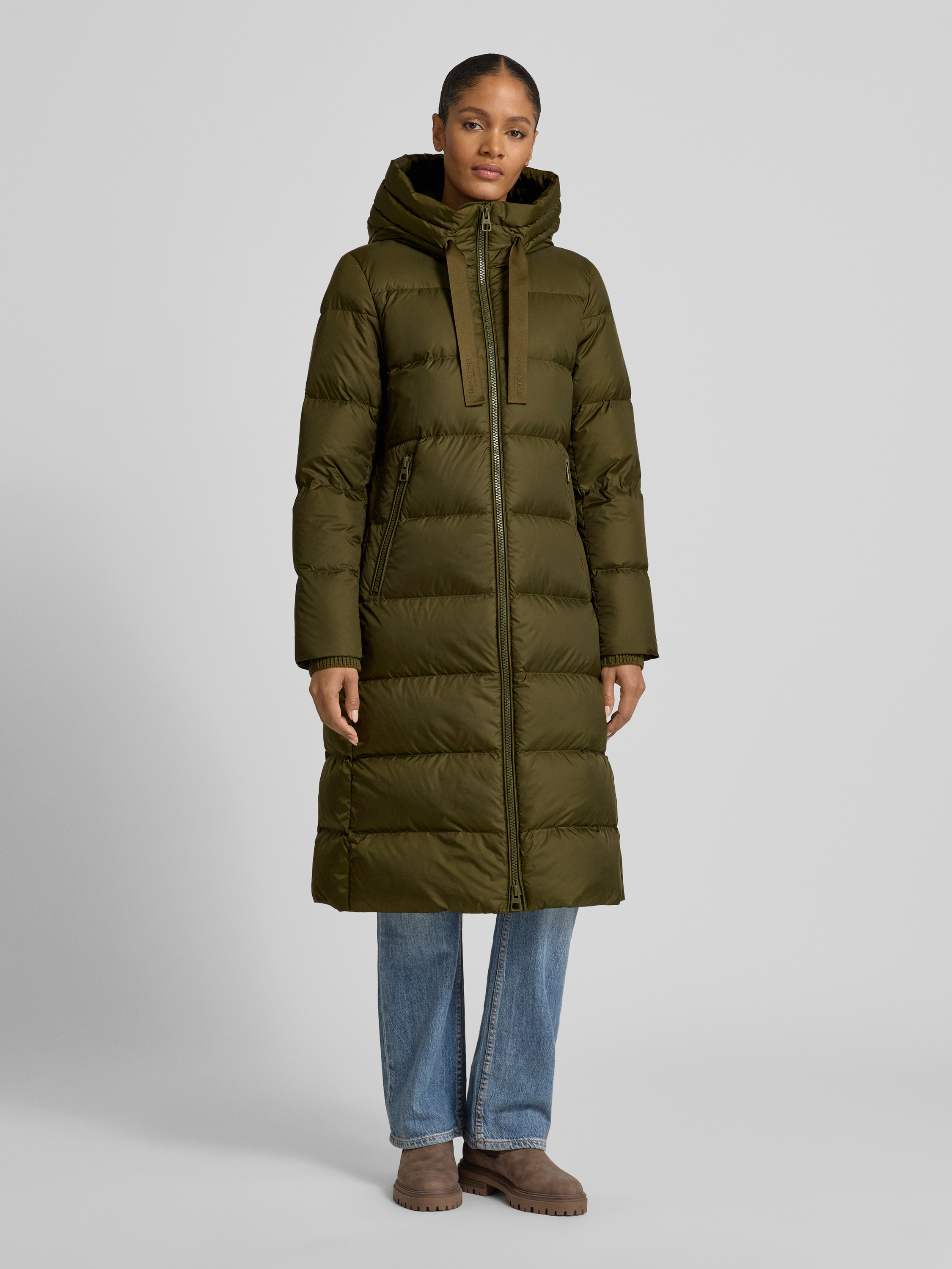 Der Damenmantel von Marc O'Polo kombiniert einen Regular Fit mit einer schützenden Kapuze, wodurch sich das Modell für wechselhaftes Wetter eignet. Gefüllt mit Daunen, sorgt er für angenehme Wärme, während das schlichte Design vielseitig bleibt. Praktische Taschen und Storm Cuffs runden das Gesamtbild funktional ab.