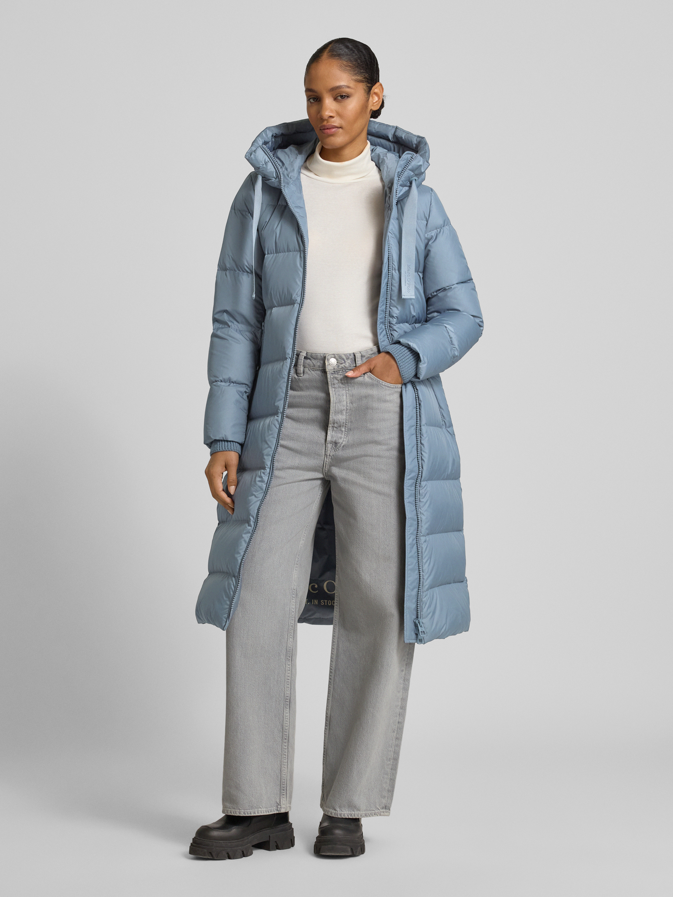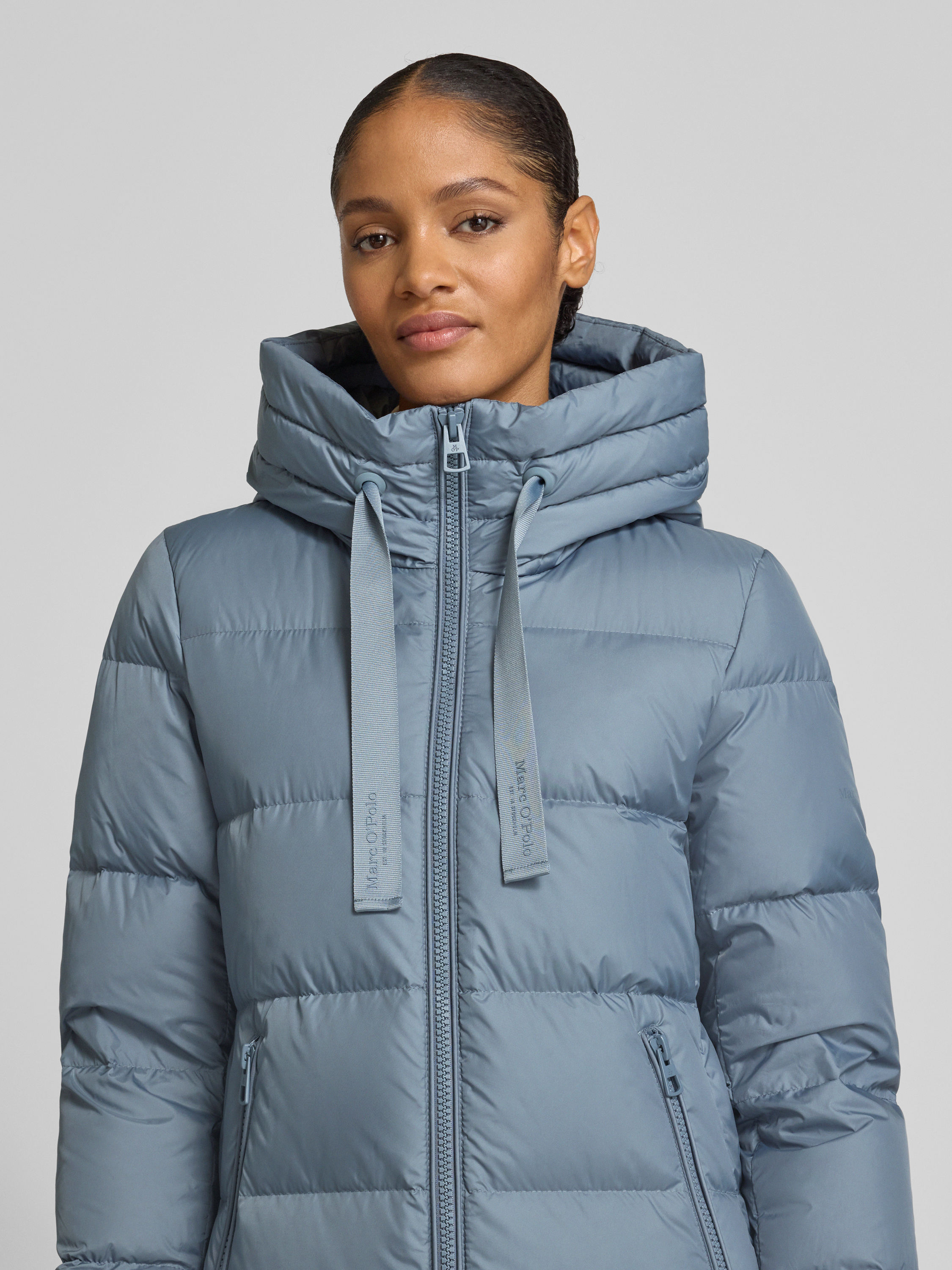 Der Damenmantel von Marc O'Polo kombiniert einen Regular Fit mit einer schützenden Kapuze, wodurch sich das Modell für wechselhaftes Wetter eignet. Gefüllt mit Daunen, sorgt er für angenehme Wärme, während das schlichte Design vielseitig bleibt. Praktische Taschen und Storm Cuffs runden das Gesamtbild funktional ab.