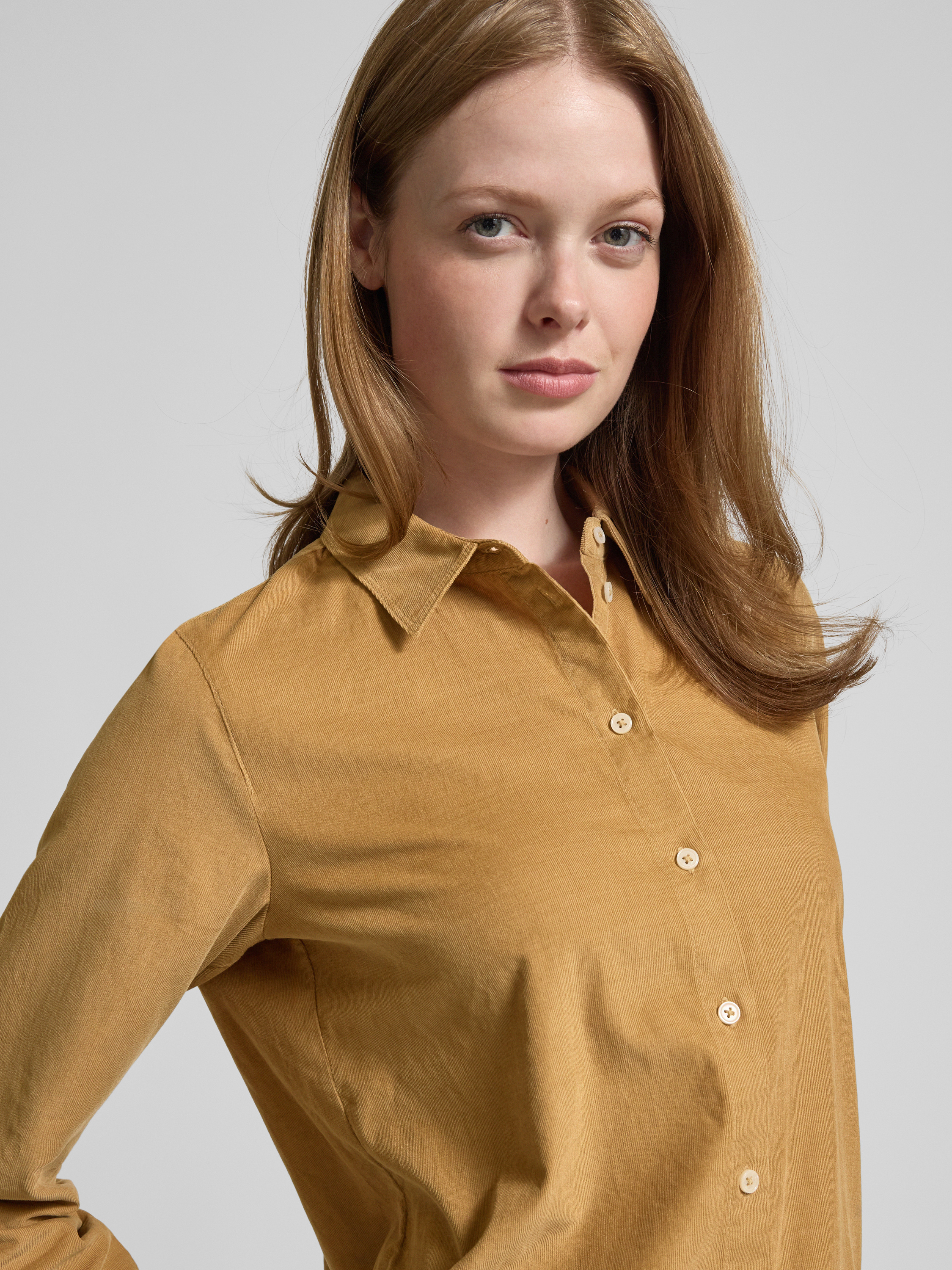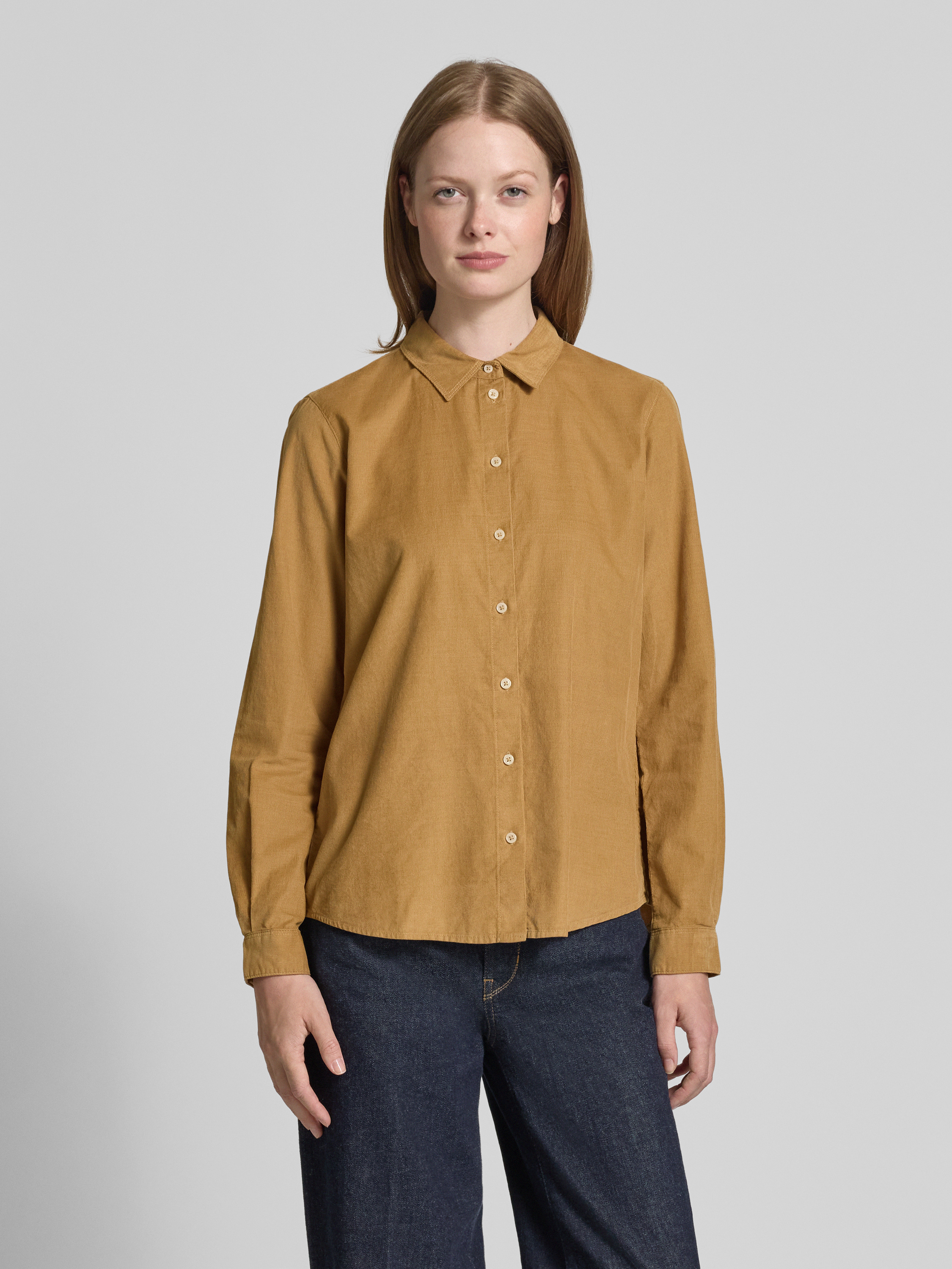 Die Damen Hemdbluse von Marc O’Polo verbindet mit ihrem Regular Fit eine angenehme Passform und sorgt durch den klassischen Hemdblusenkragen für eine zeitlose Silhouette. Durch den weichen Baumwoll-Lyocell-Mix erhält das Cord-Material eine dezente Struktur, die sich vielseitig kombinieren lässt. Dezente Details wie die Cacharel-Falte unterstreichen einen unaufgeregten, alltagstauglichen Stil.
