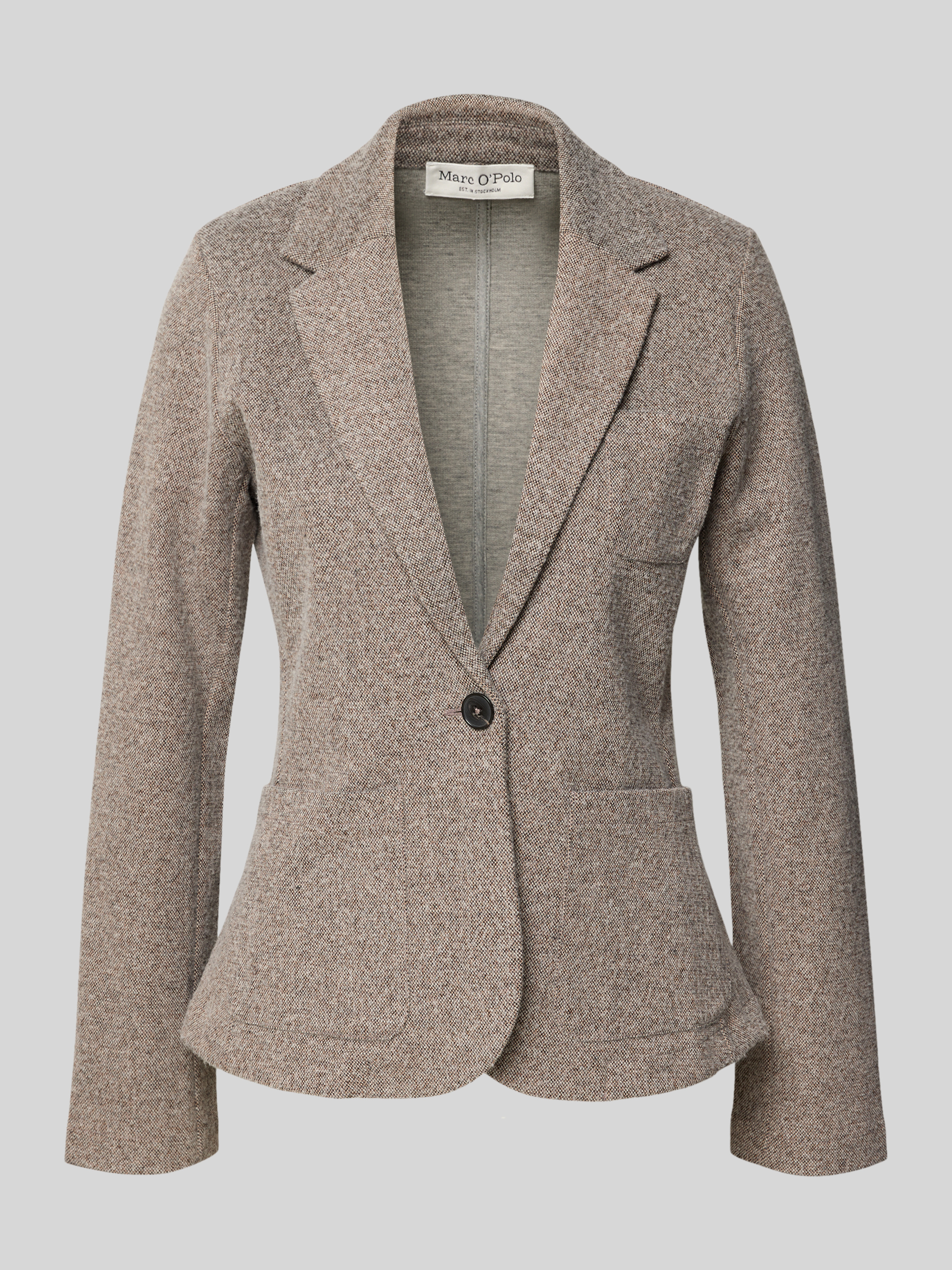 Der Damen Kurzblazer von Marc O'Polo zeigt sich in einem Regular-Fit und erhält durch die Melange-Optik eine moderne Note. Dank des leichten Baumwoll-Mix in Piqué-Qualität trägt man ihn angenehm auch an langen Tagen. Schulterpolster und Reverskragen sorgen dabei für eine klare Silhouette, während praktische Taschen zusätzlichen Komfort schaffen.
