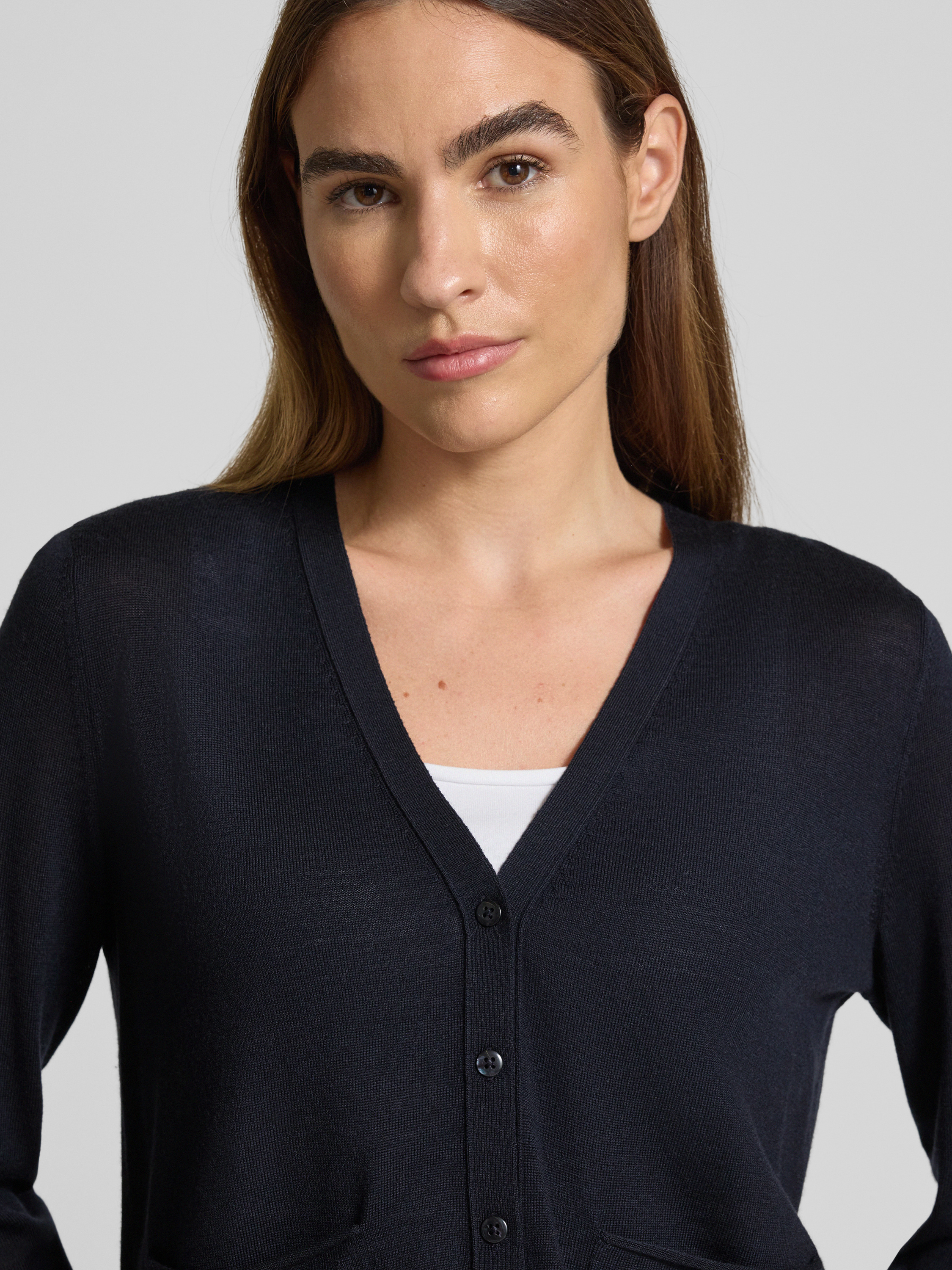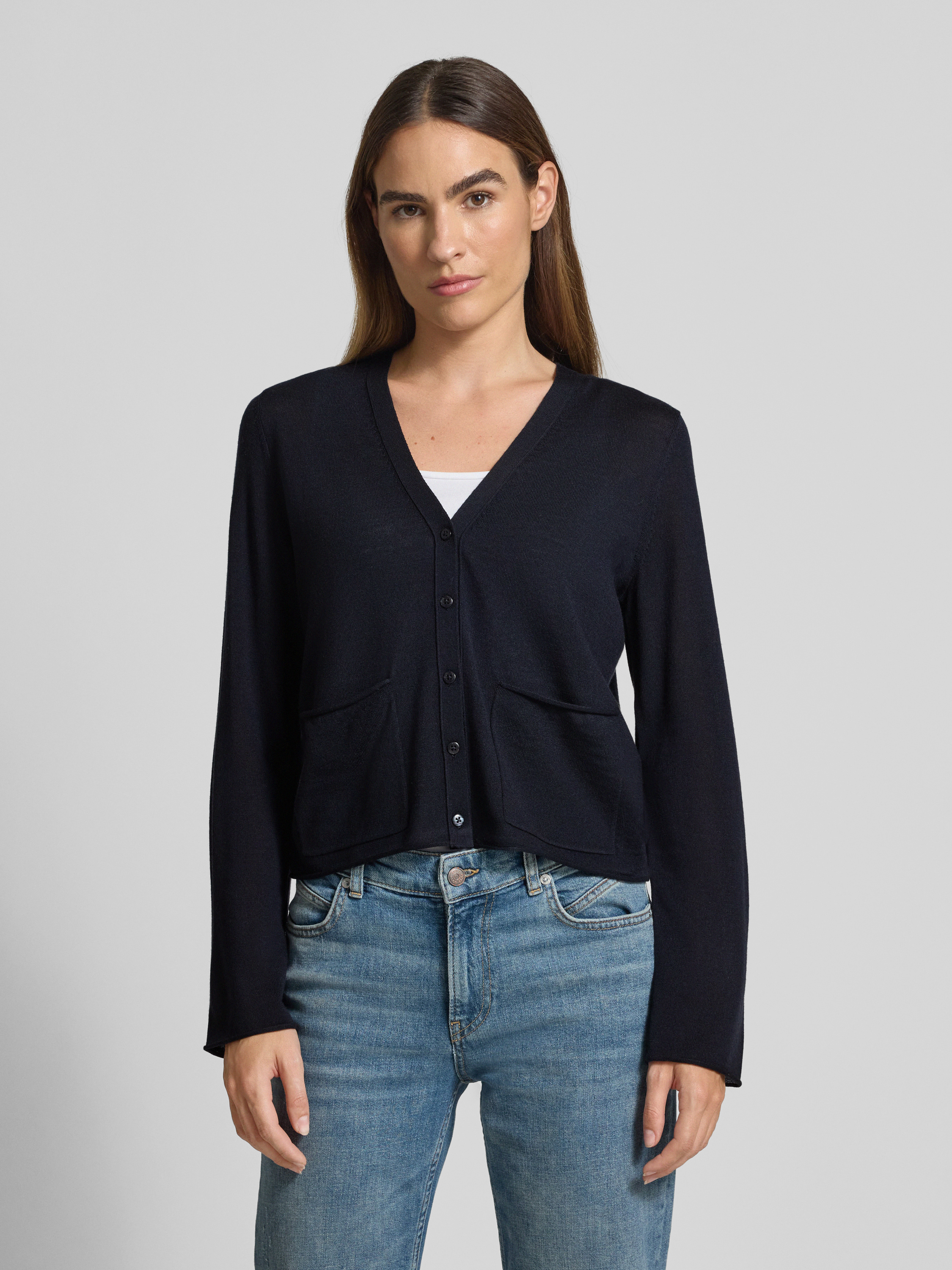 Die Damen Strickjacke von Marc O'Polo im Regular Fit legt sich mit weichem Schurwoll-Mix angenehm auf die Haut und schafft durch den feinen Strick eine dezente Optik. Dank des V-Ausschnitts wirkt der Look entspannt, während Rollsäume das Gesamtbild abrunden. So eignet sich dieses Modell für vielfältige Anlässe.