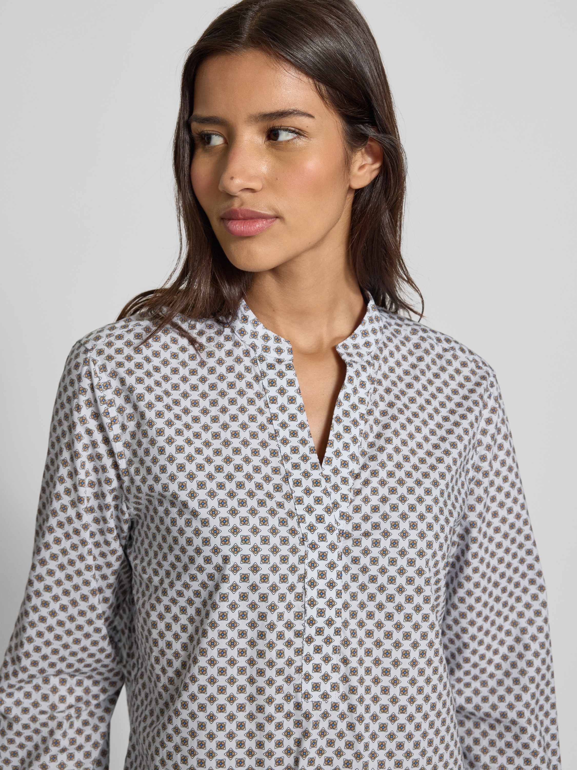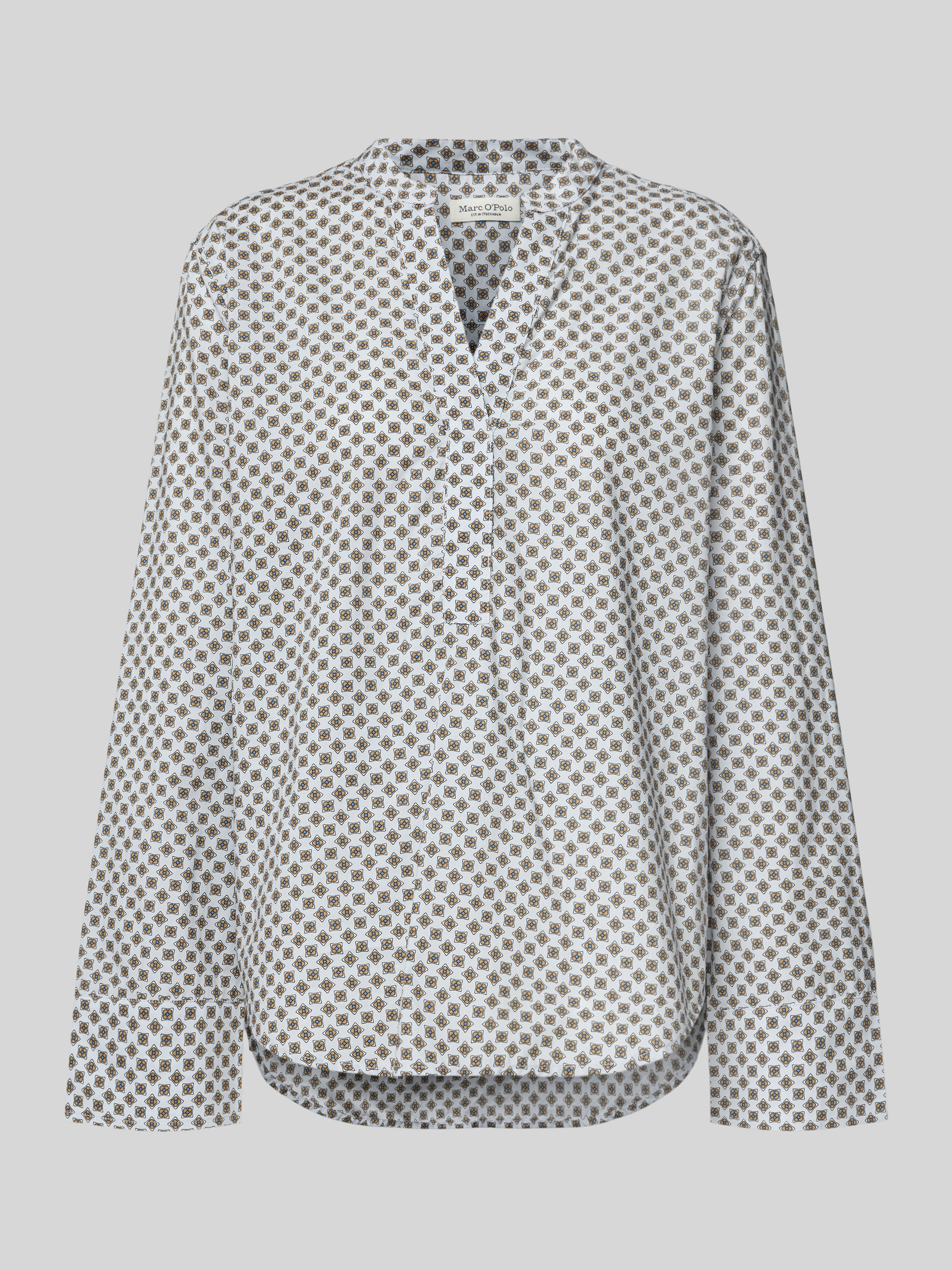 Die Tunika-Bluse von Marc O'Polo präsentiert sich im Regular Fit mit floralem Allover-Muster und sorgt durch ihren V-Ausschnitt für eine lockere Silhouette. Reine Baumwolle in Papertouch-Popeline-Qualität verleiht dem Modell einen angenehm frischen Griff. Der abgerundete Saum rundet das Gesamtbild harmonisch ab.
