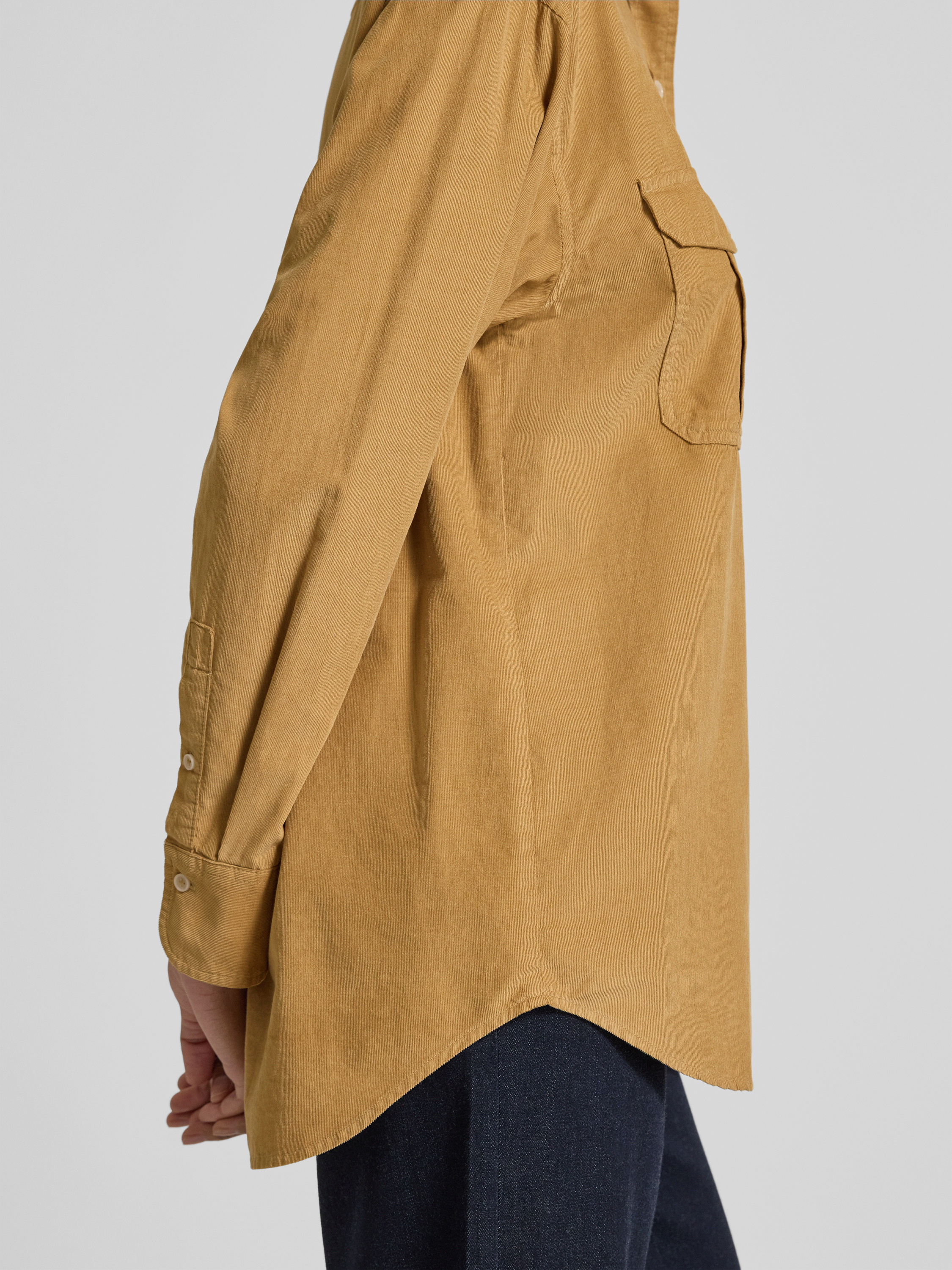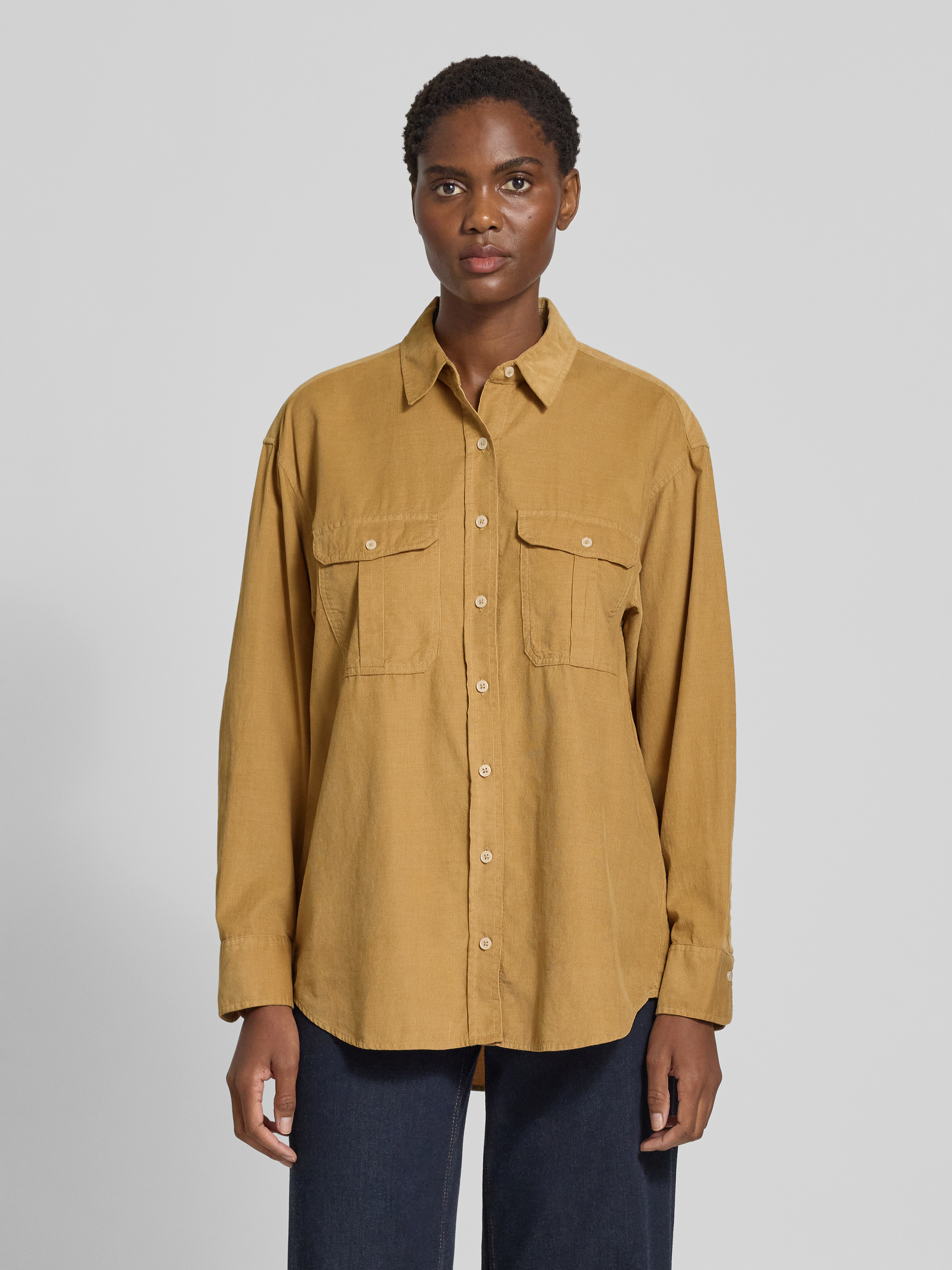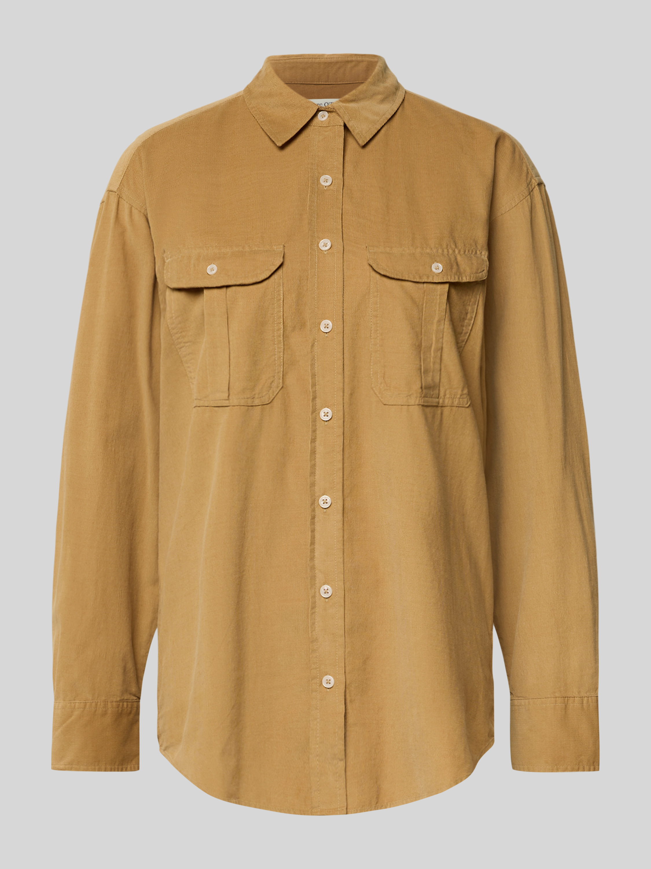 Die Damen Hemdbluse von Marc O’Polo zeigt sich in entspannter Relaxed Fit-Silhouette und fühlt sich durch den weichen Baumwoll-Lyocell-Mix angenehm auf der Haut an. Die dezente Cordstruktur verleiht dem unifarbenen Modell einen modernen Charakter. Durch die Cacharel-Falte entsteht zusätzliche Bewegungsfreiheit.