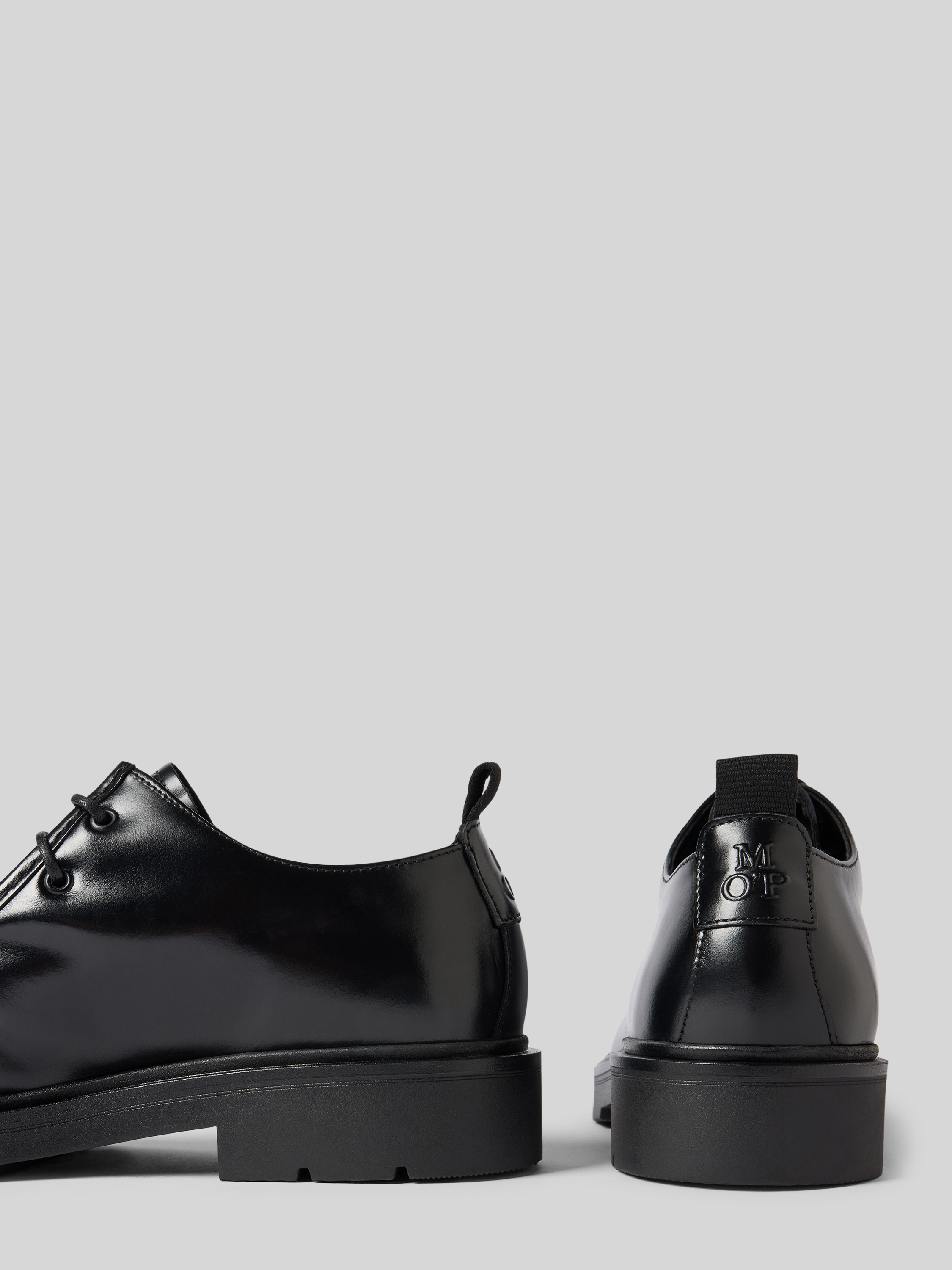 Die Herrenschnürschuhe von Marc O’Polo aus echtem Leder wirken durch ihre schlichte, unifarbene Optik besonders vielseitig und lassen sich unkompliziert kombinieren. Dank der abgerundeten Schuhspitze sowie des Blockabsatzes entsteht beim Gehen ein angenehmes Tragegefühl. Durch das hochwertige Glattleder erhält man ein robustes und zugleich elegantes Schuhwerk.
