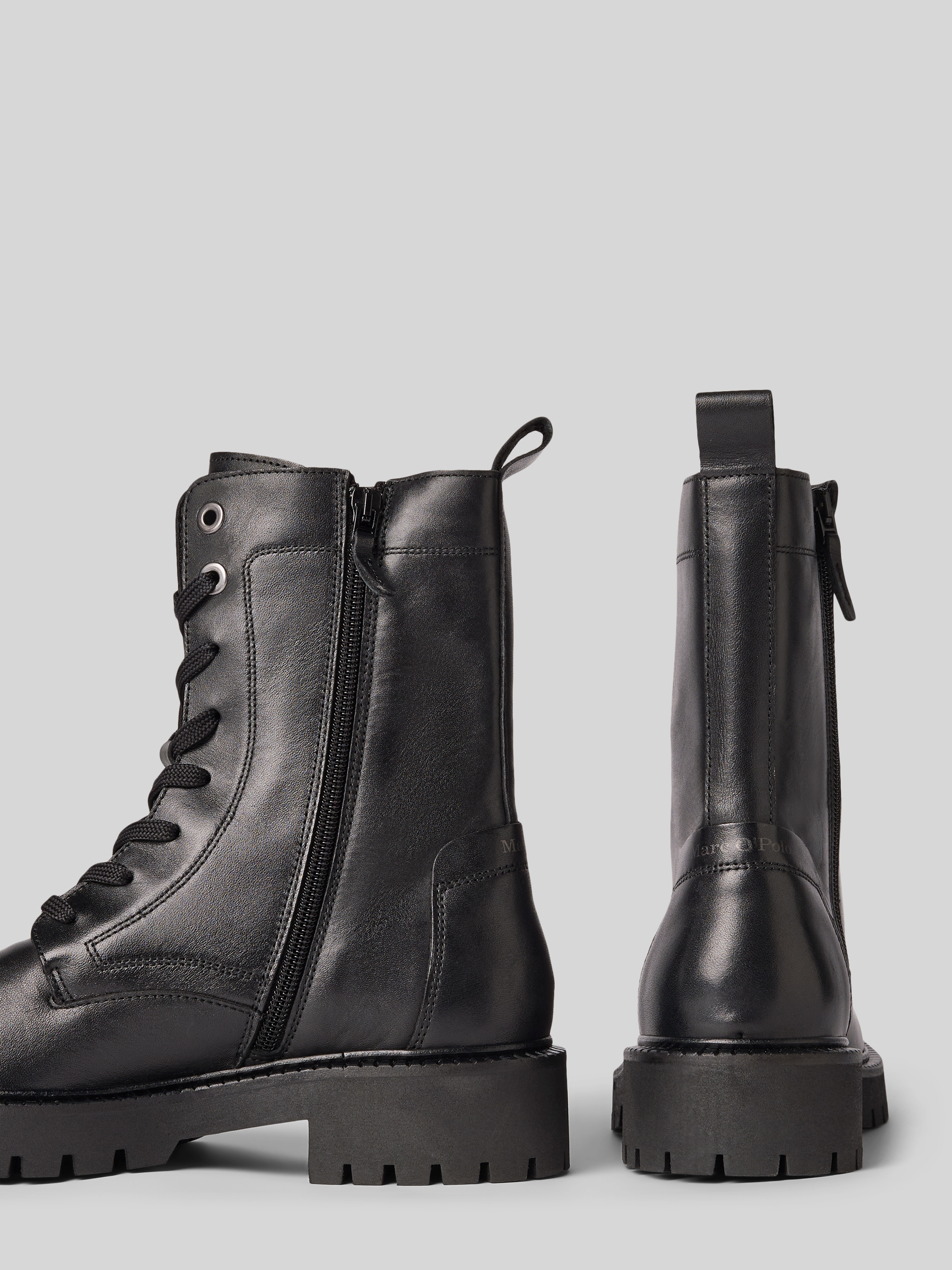 Der Damen Schnürstiefel von Marc O’Polo aus hochwertigem Leder schmiegt sich angenehm an den Fuß und sorgt durch die runde Spitze sowie den Blockabsatz für ein komfortables Tragegefühl. Dezente Details wie die Logo-Applikation aus Metall verleihen dem Look eine klare Linie. Durch das unifarbene Design lässt sich der Stiefel vielseitig kombinieren, sodass er sich im Alltag als unkomplizierter Begleiter eignet.