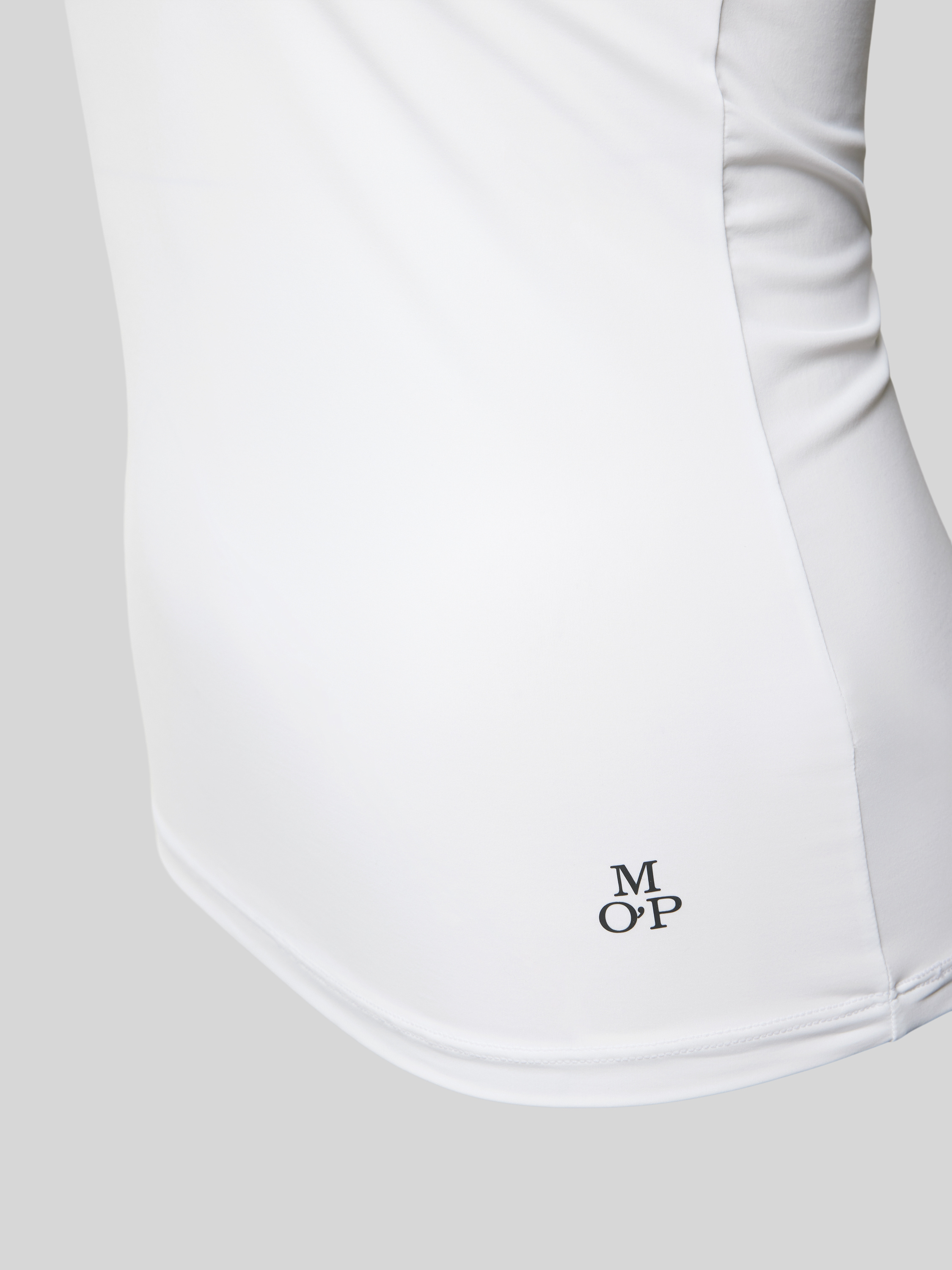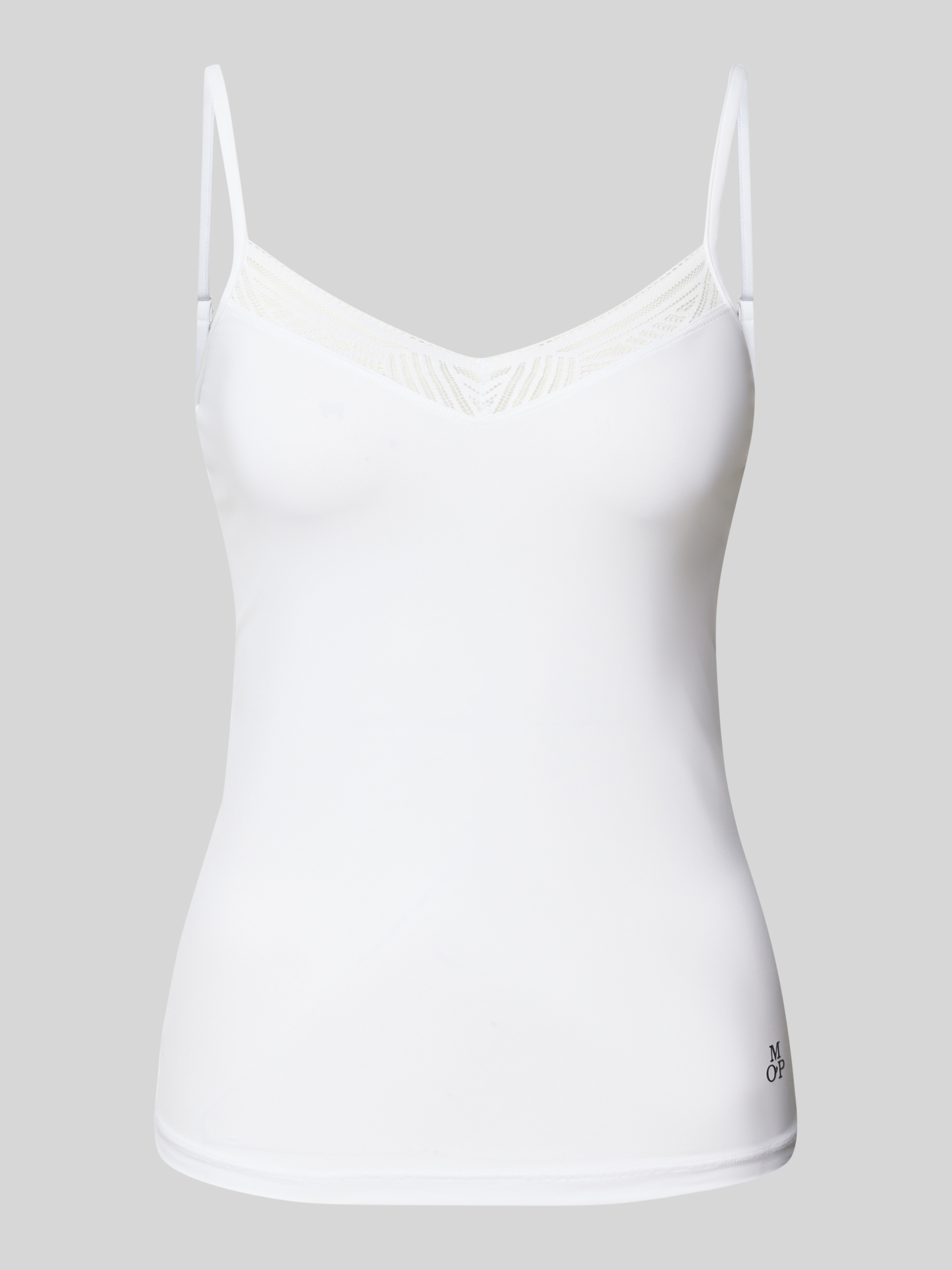 Das Shaped Fit Trägertop von Marc O'Polo kombiniert einen eleganten V-Ausschnitt mit verstellbaren Spaghettiträgern, wodurch es sich ideal an unterschiedliche Bedürfnisse anpasst. Der Polyamid-Elasthan-Mix sorgt für angenehme Bewegungsfreiheit und trägt sich angenehm auf der Haut. Das unifarbene Design wird durch einen dezenten Logo-Print abgerundet.