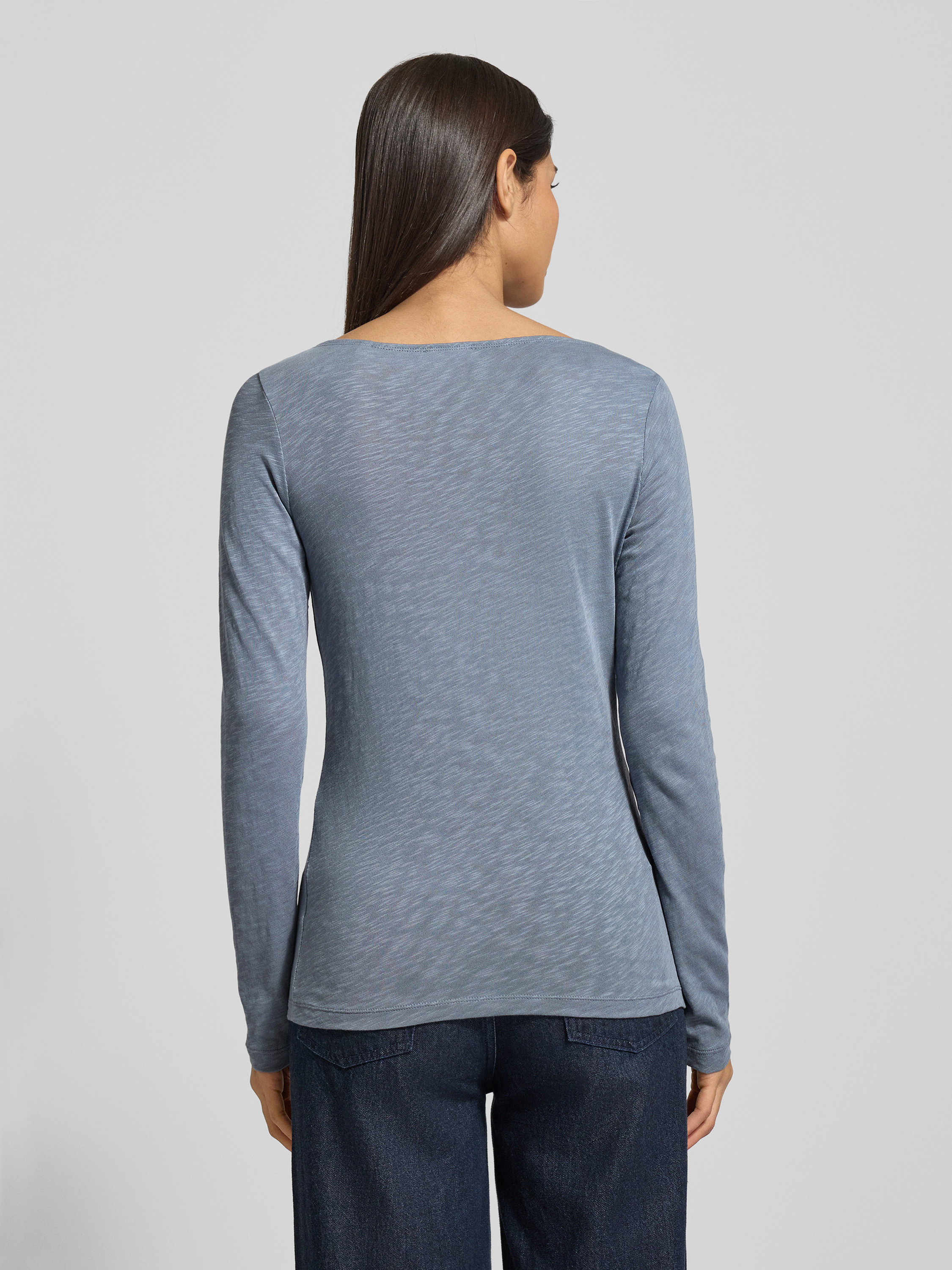 Das Damen Langarmshirt von Marc O’Polo zeigt sich in schmaler Slim-Fit-Passform und bringt mit seiner Melange-Optik eine dezente Note in den Alltag. Durch den U-Boot-Ausschnitt wirkt das Jersey-Shirt angenehm modern, während reine Baumwolle für ein natürliches Tragegefühl sorgt. Der kleine Logo-Print rundet das Design unaufdringlich ab.